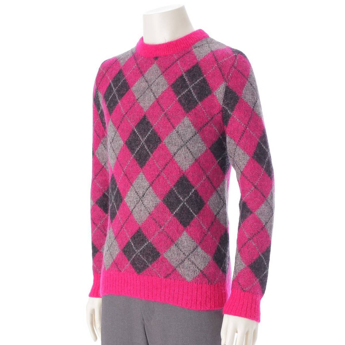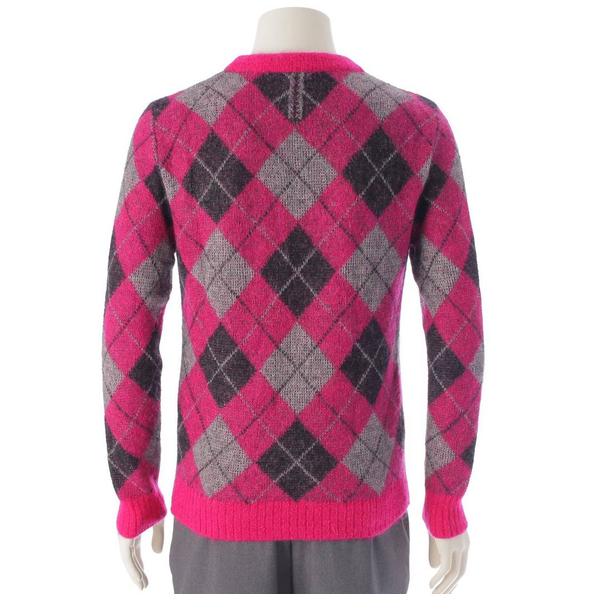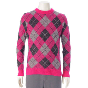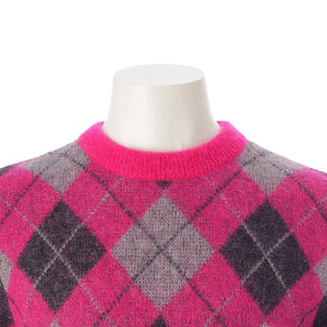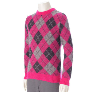 YVES SAINT LAURENT 14AW Check Pattern Argyle Pattern Long Sleeve Knit sweater 357060 pink XS