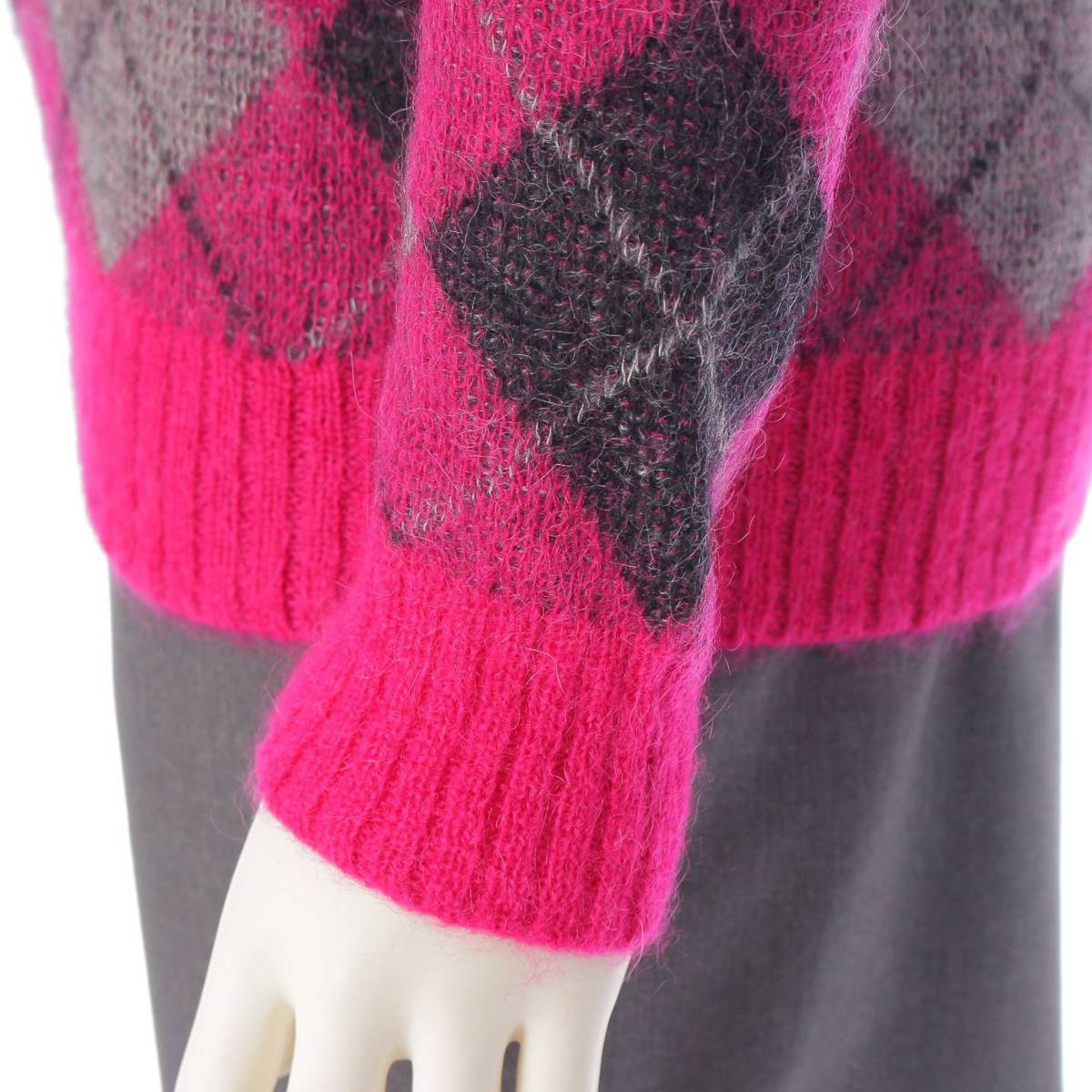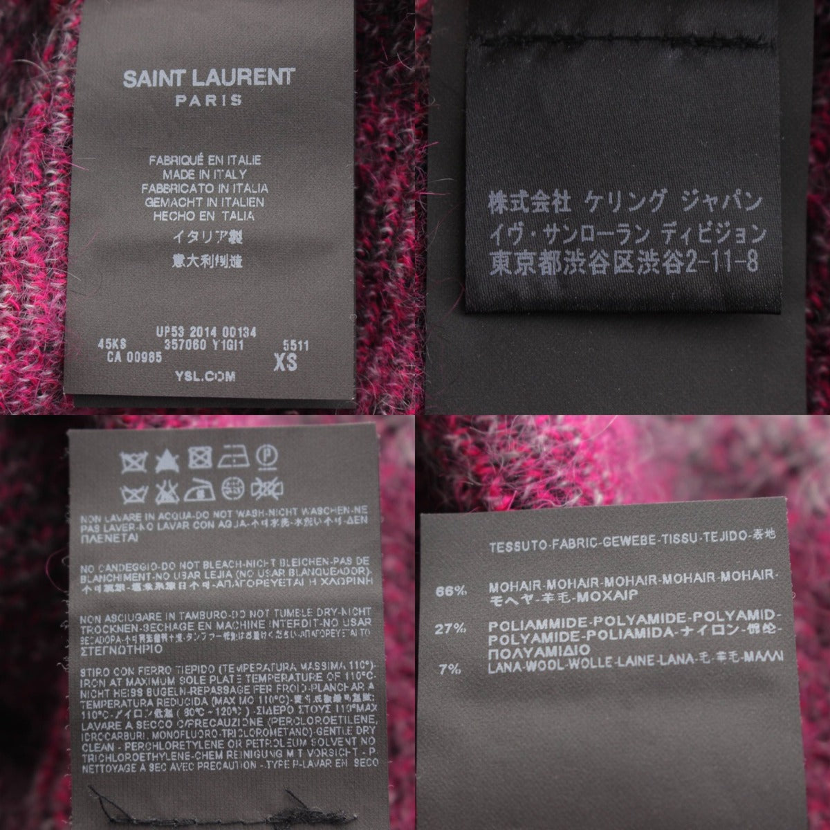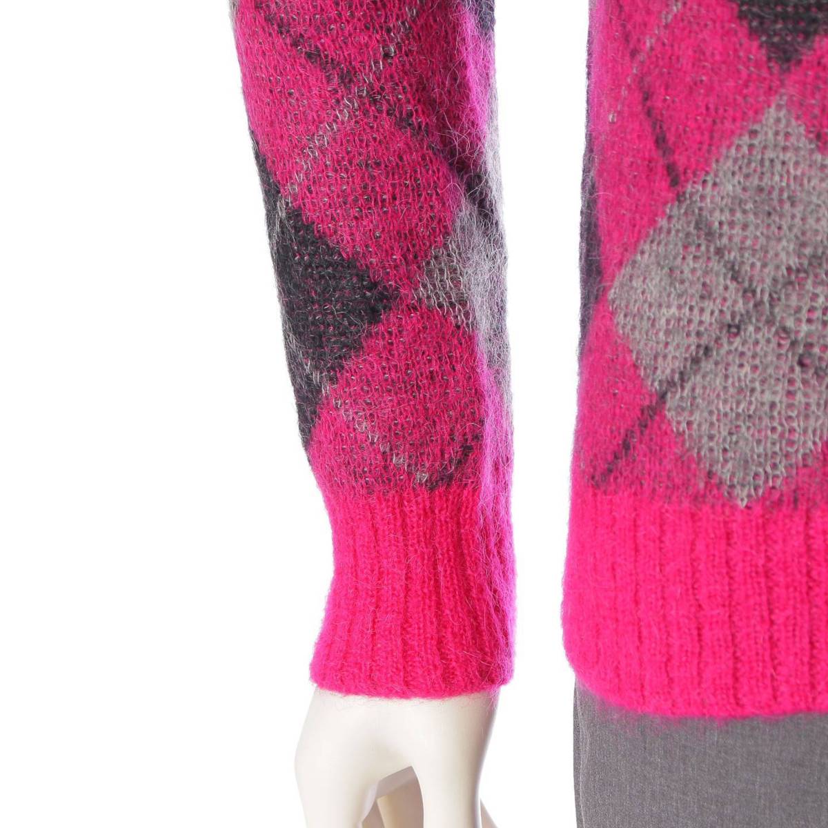YVES SAINT LAURENT 14AW Check Pattern Argyle Pattern Long Sleeve Knit sweater 357060 pink XS