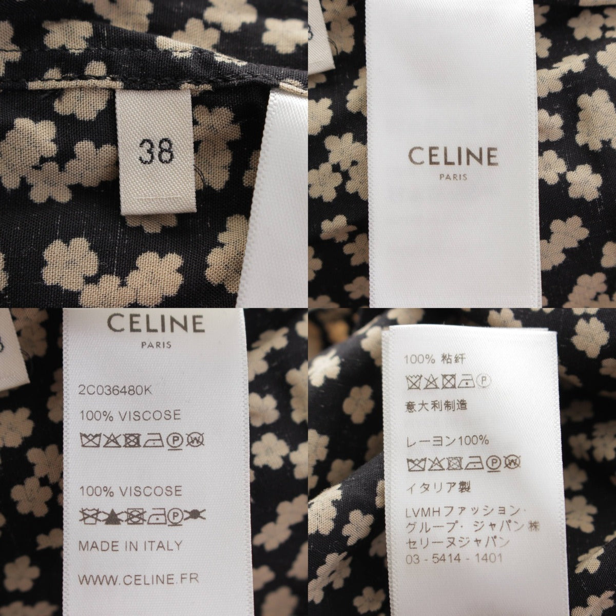 CELINE 19Stainless Steel Flower pattern all-over print aloha shirt tops 2C036480K black 38