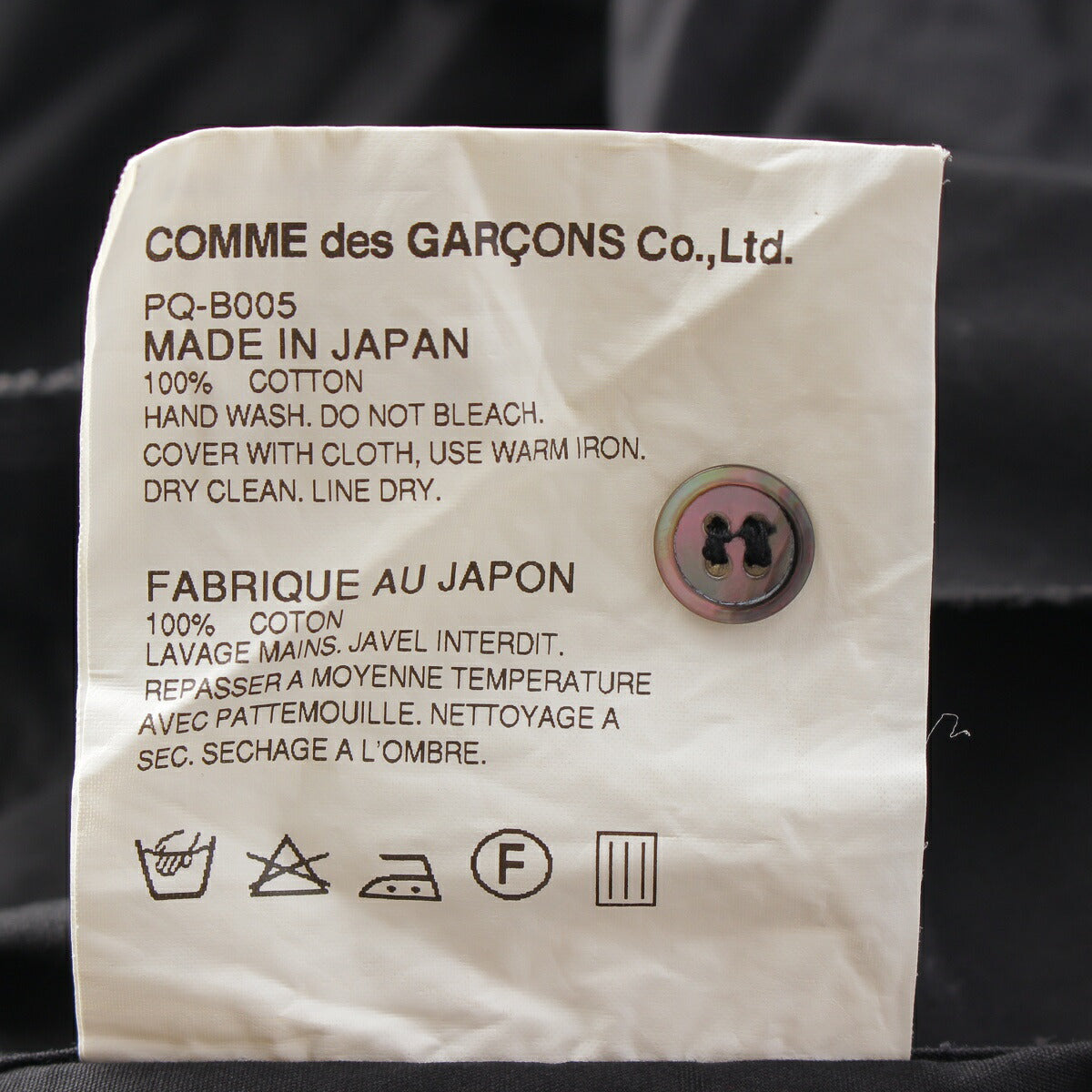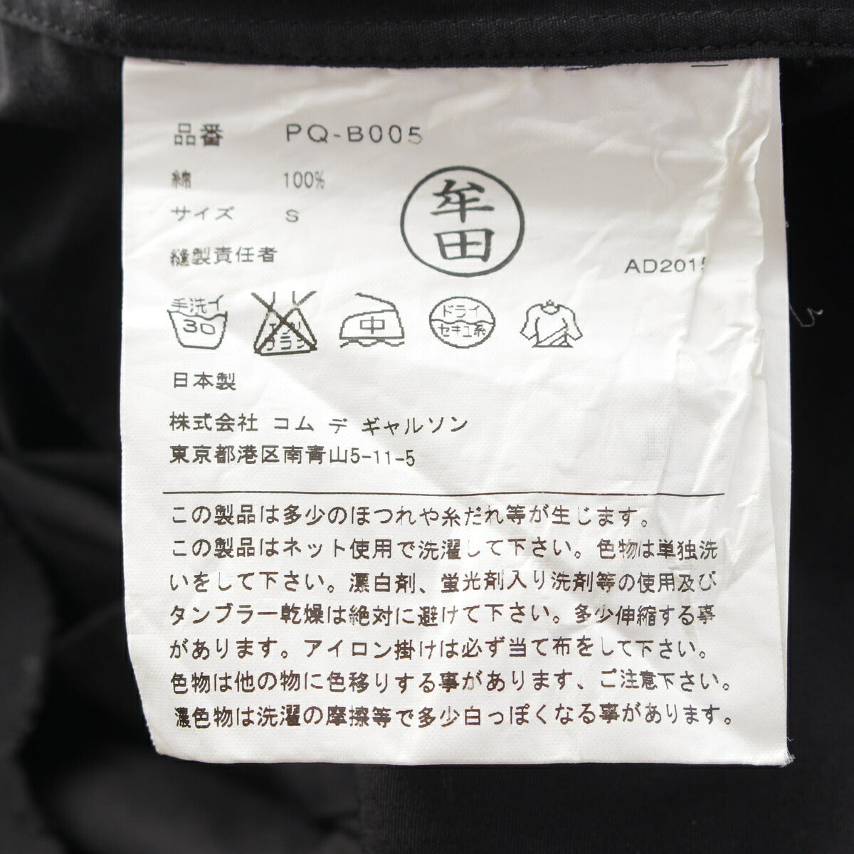 .detail {width:400px; font-size:12px;border-top:#000 2px solid; line-height:1.5em;border-bottom:#666 1px solid; margin-bottom:5px;}.detail .title{ padding:10px;border-bottom:#666 1px solid; background-color:#e3e3e3; margin:0;}.detail .text{ padding: 5px 10px;} Product details Color: Black Material: Cotton Please refer to the composition label Accessories: None Damage: White rubbing around the neck Stain Slight fluffing at the hem Odor due to use and storage *As this is a used item, there may be damage not listed on the main unit or accessories. Please note. Product condition AB: There is some wear and tear, and there is little damage such as scratches or stains. Size: S Total length: around 31.5" Shoulder width: around 16.9" Width: around 18.3" Sleeve length: around 24.4" *Measured flat at maximum part