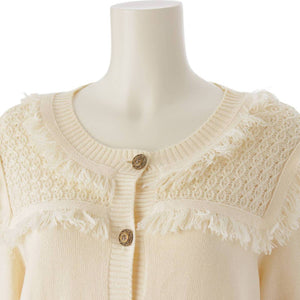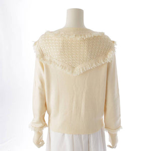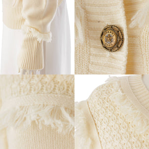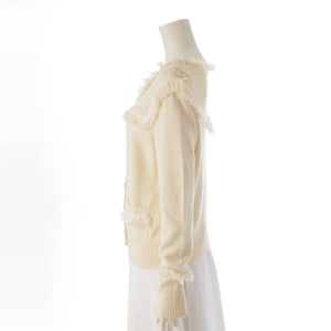 [Chanel] Chanel Logo Star Button Fringe Cashmere Knit Cardigan P49690 Beige 38 [Used] [Authenticated and Guaranteed Authentic] 214530
