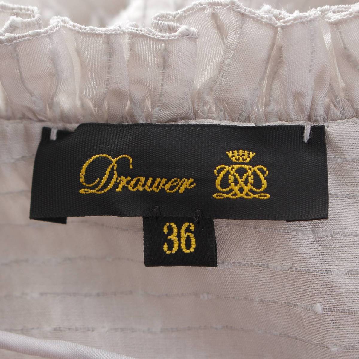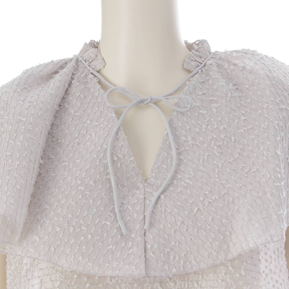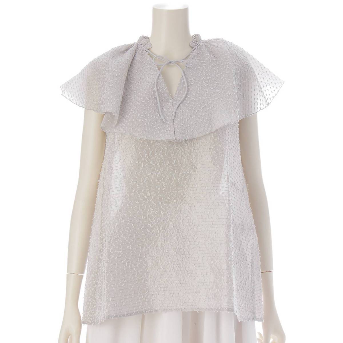 [Drawer] DRAWER Organ Border Ruffle Collar Silk x Nylon Blouse Gray 36 [Used] [Authenticated and Guaranteed Authentic] 214853
