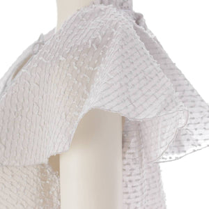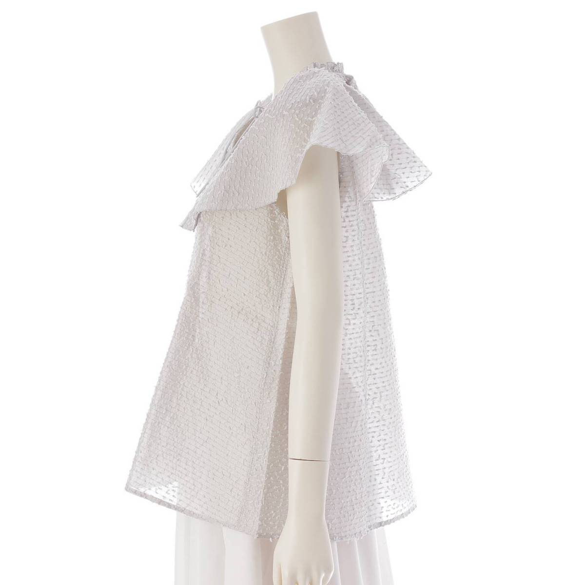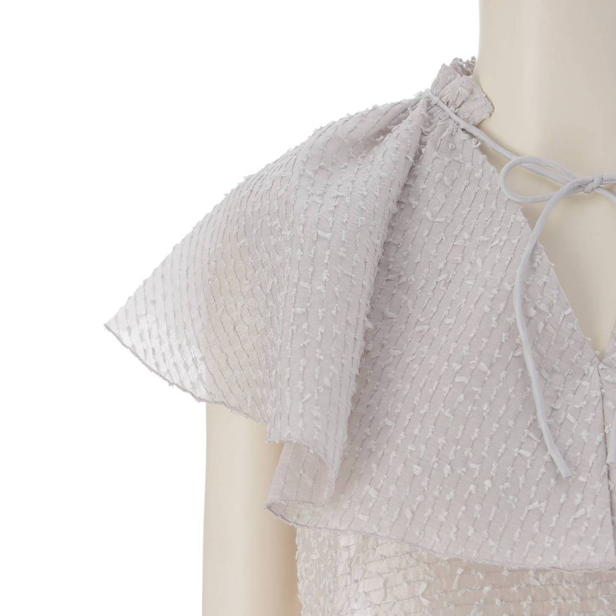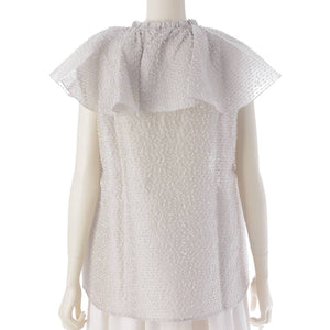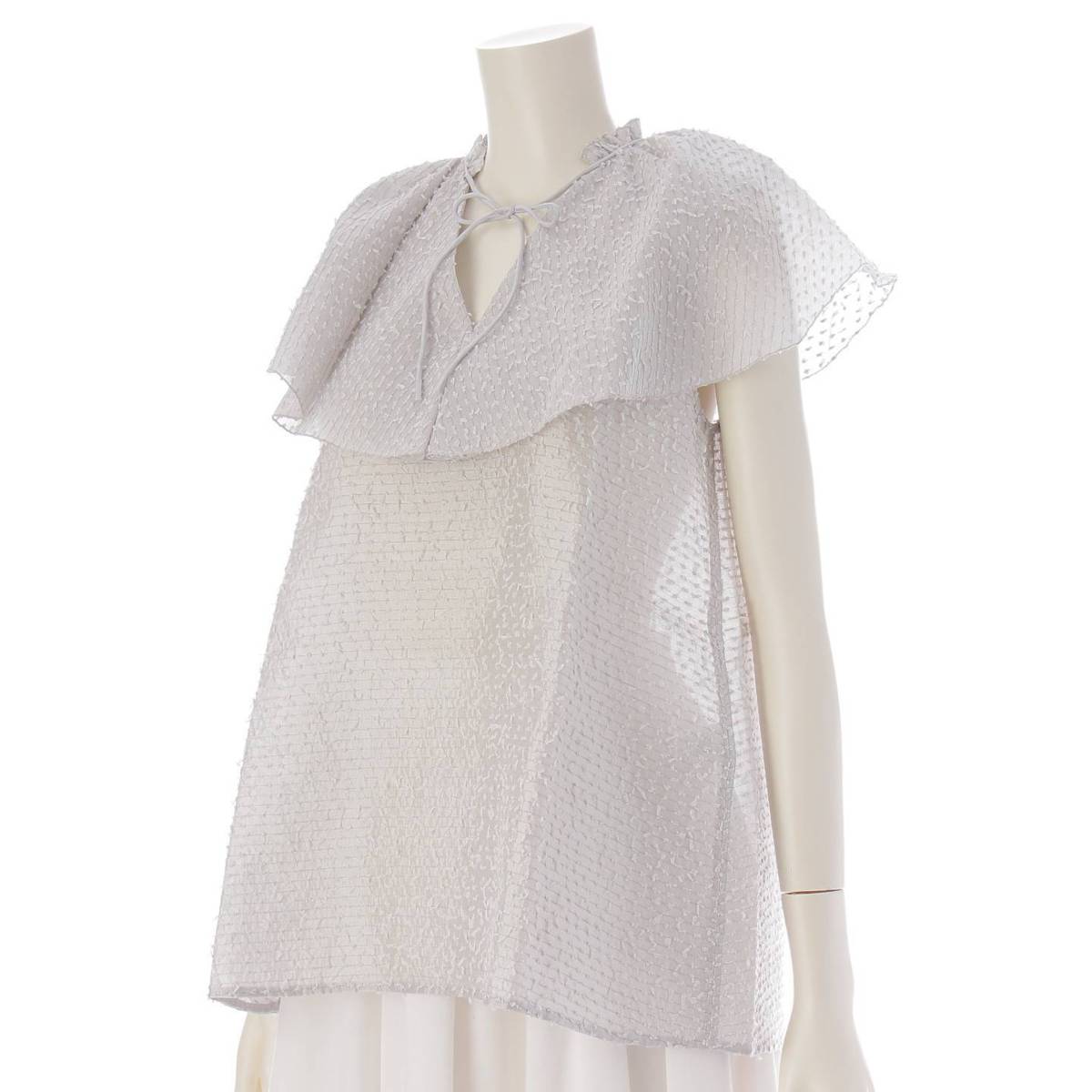 [Drawer] DRAWER Organ Border Ruffle Collar Silk x Nylon Blouse Gray 36 [Used] [Authenticated and Guaranteed Authentic] 214853