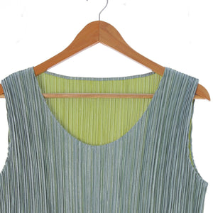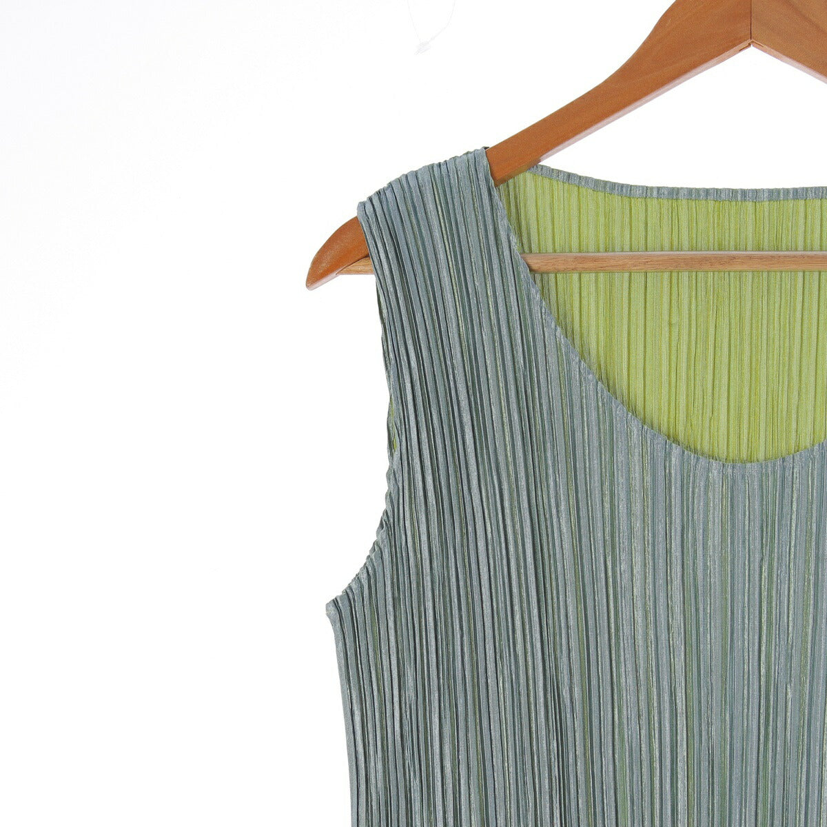 Pleated Please Issey Miyake Two-tone Design Sleeveless Dress PP12-JK112 Light Green 3 [Used] [Authentic Product Guaranteed]