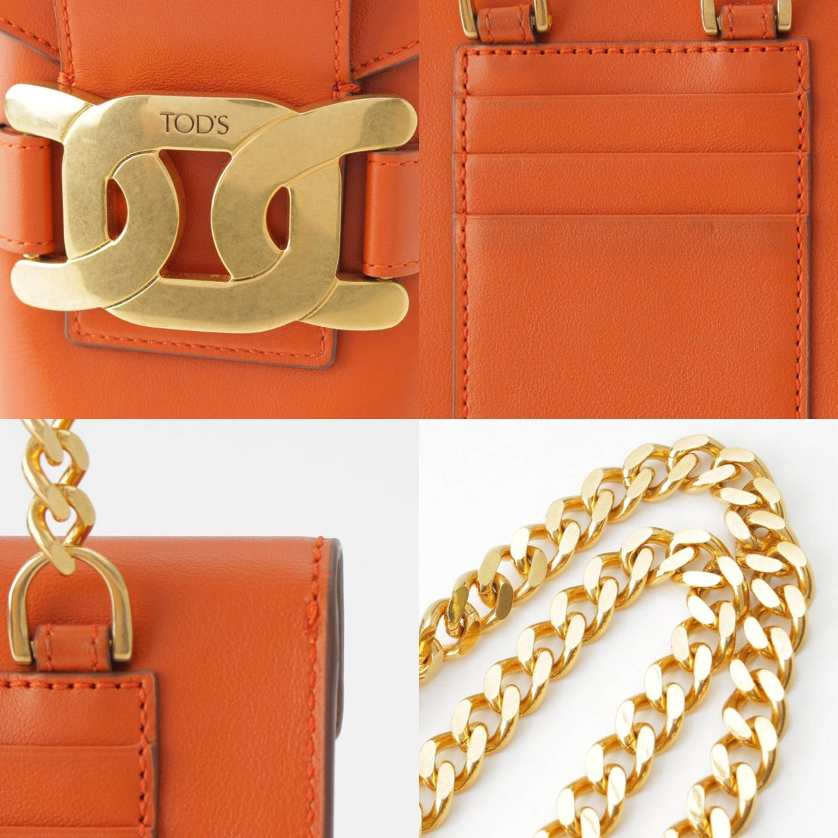[Tods] Tods Kate Chain Smartphone Holder Leather XAWAOYOY300ROR Gold Metal Orange [Used] [Authenticated/Genuine Product Guaranteed] 215280