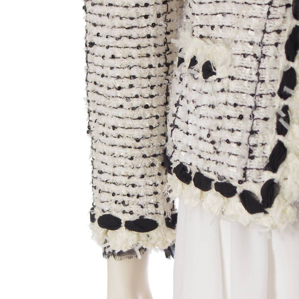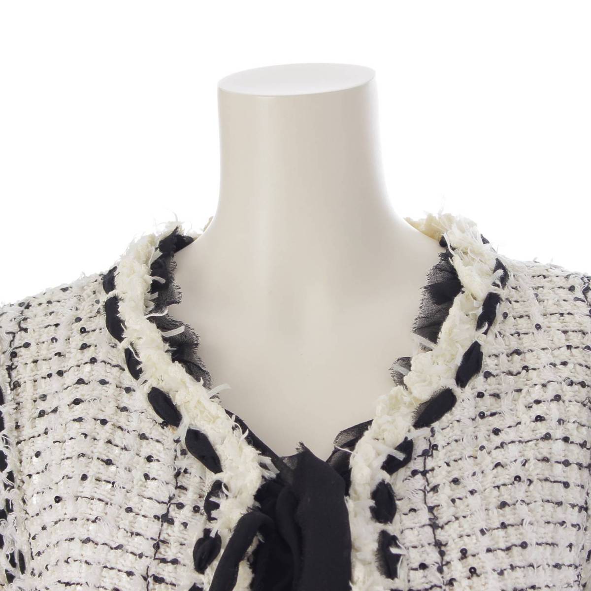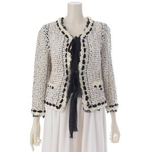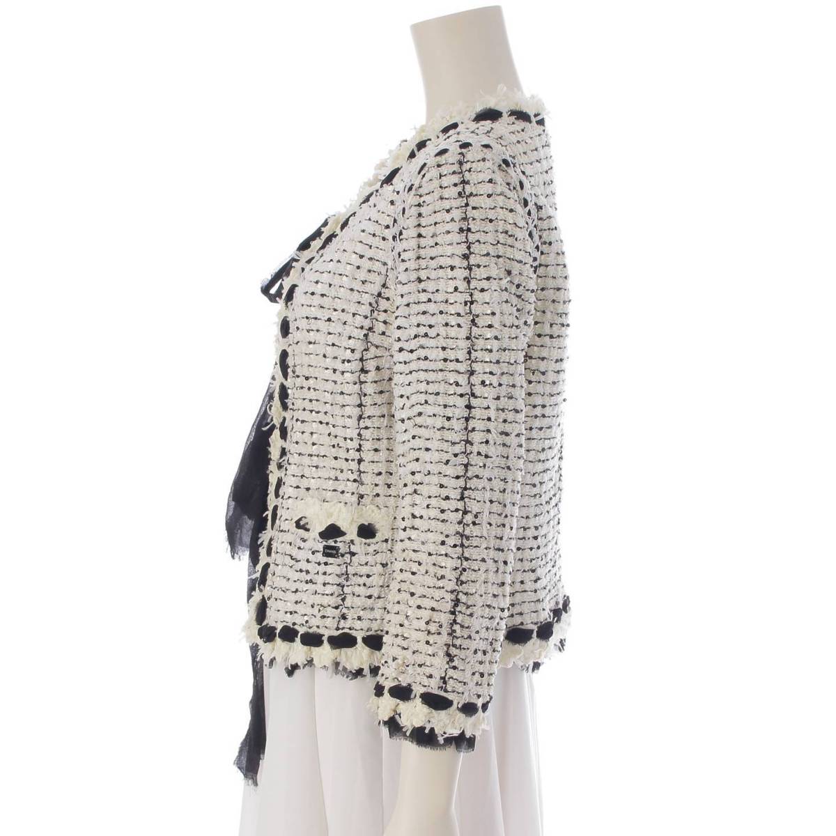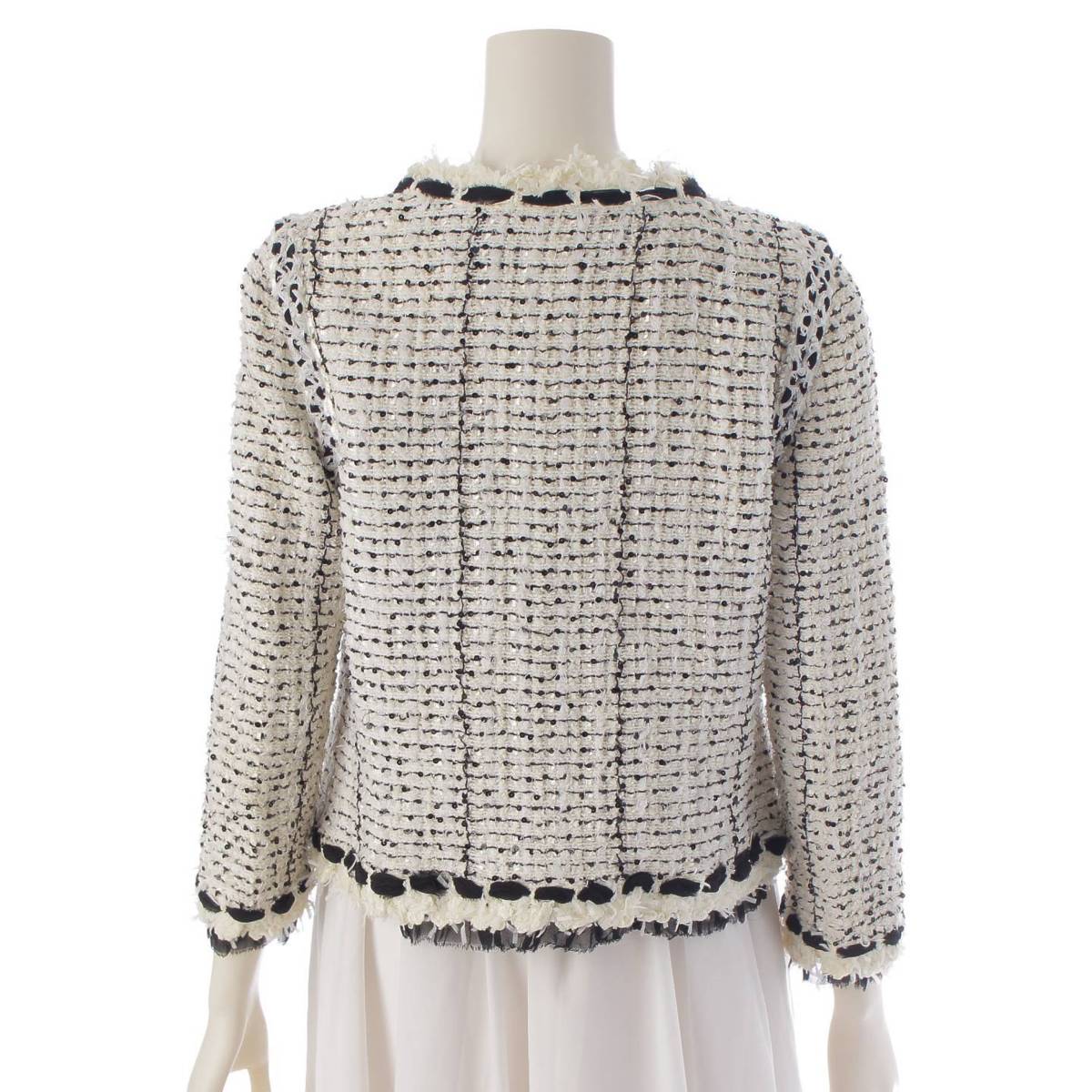 [Chanel] Chanel 05P Silk Blend Tweed Ribbon Collarless Jacket P25414W03520 White 40 [Used] [Authenticated and Guaranteed Authentic] 215370