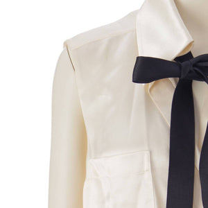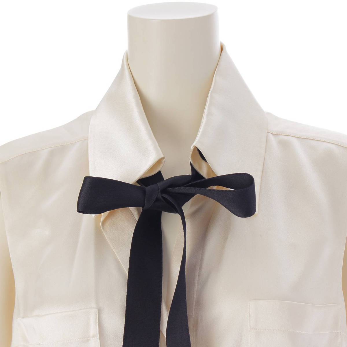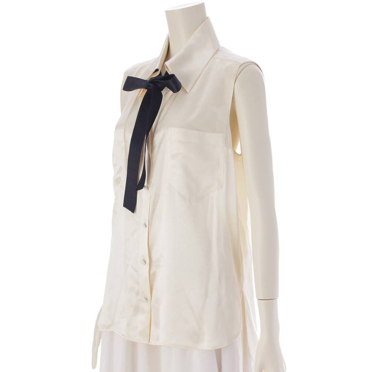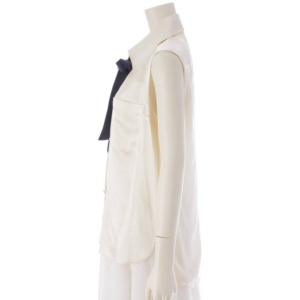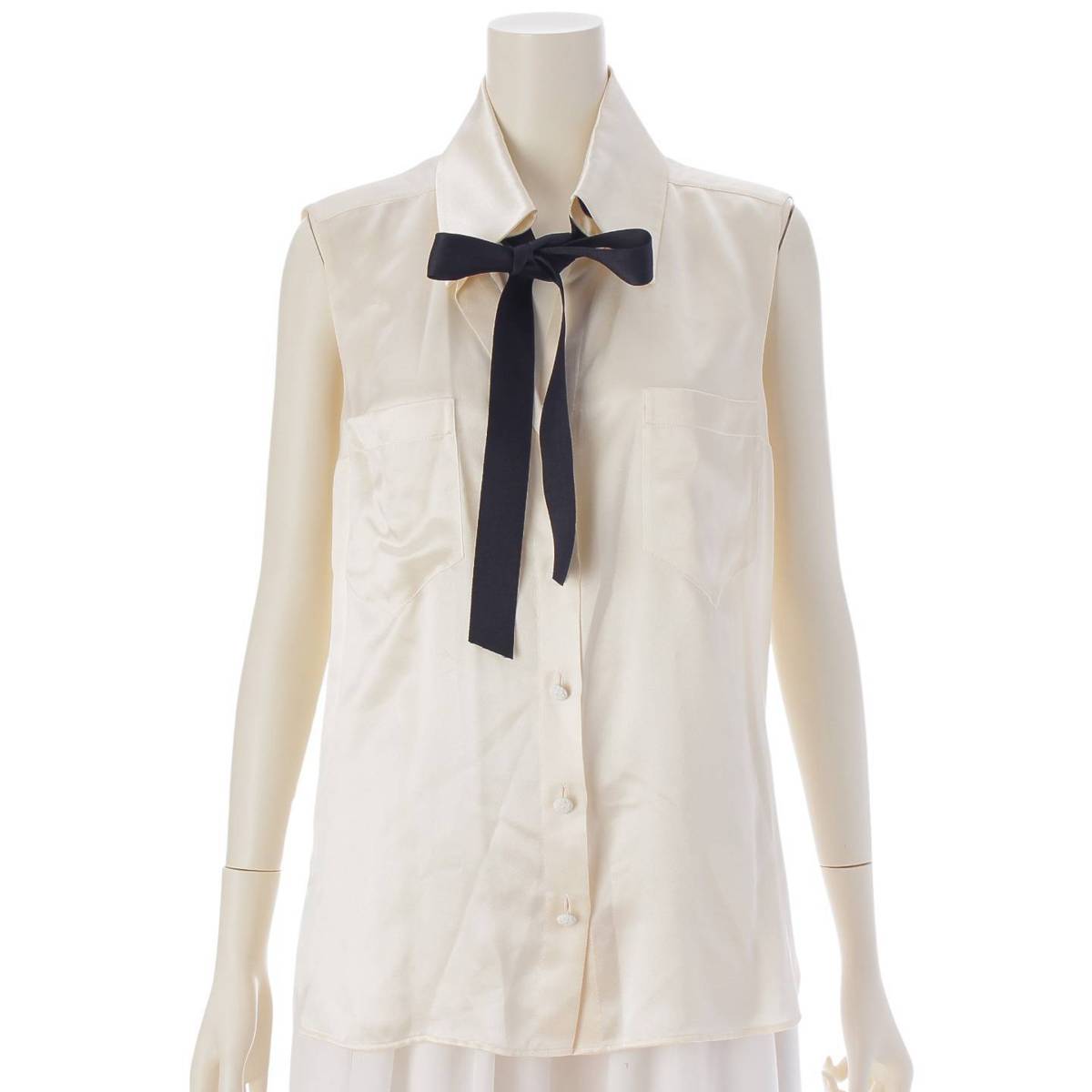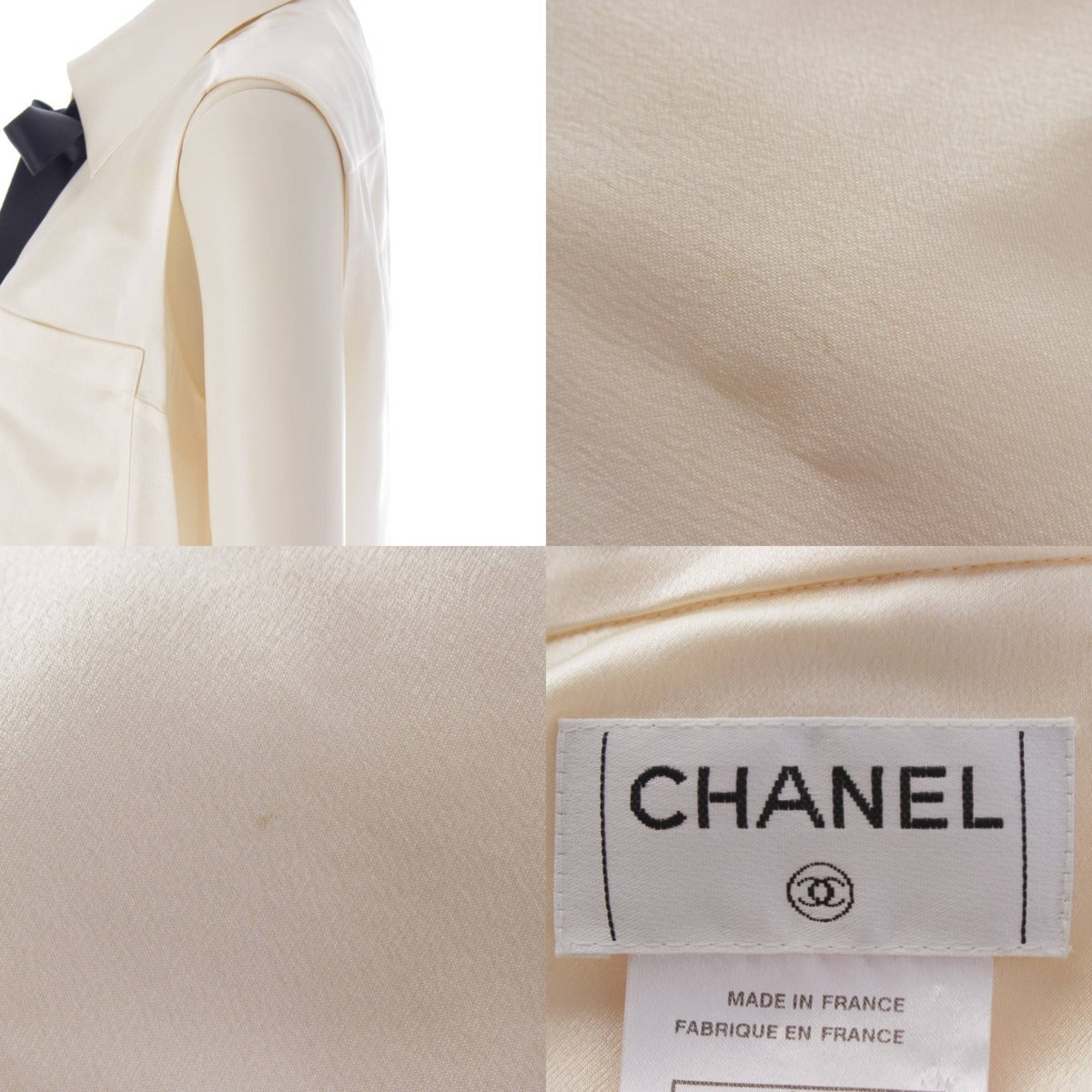 [Chanel] Chanel 06C Silk Blouse Sleeveless Camellia Ribbon P27793 IvoryxBlack 40 [Used] [Authenticated/Genuine Product Guaranteed] 215381