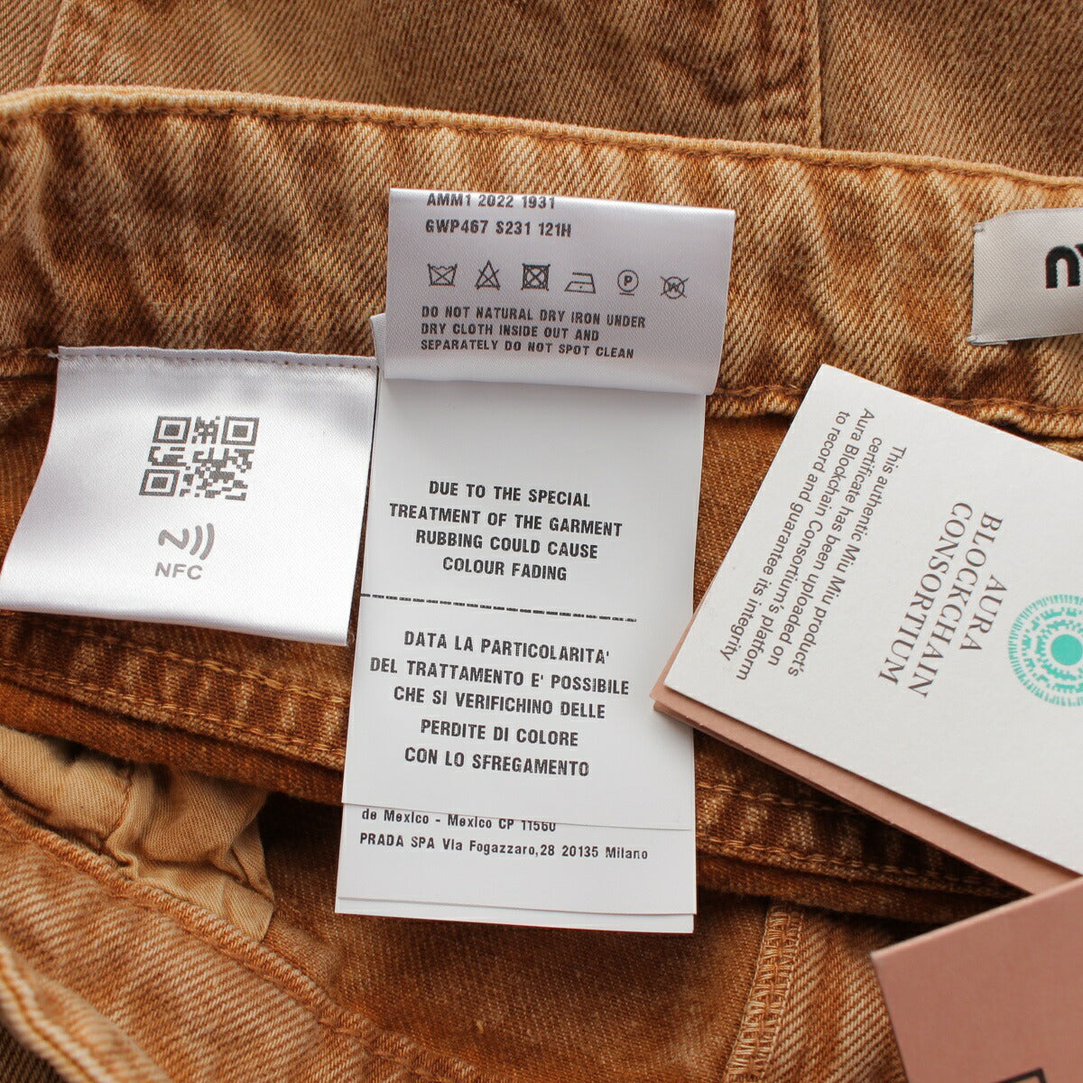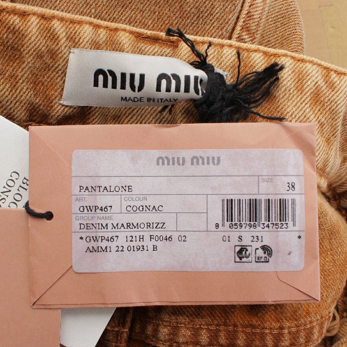 Miu Miu 23 Stainless Steel Marbleized Marbled Back Logo Denim Pants GWP467 Brown 38 [Used] [Authentic Guaranteed]