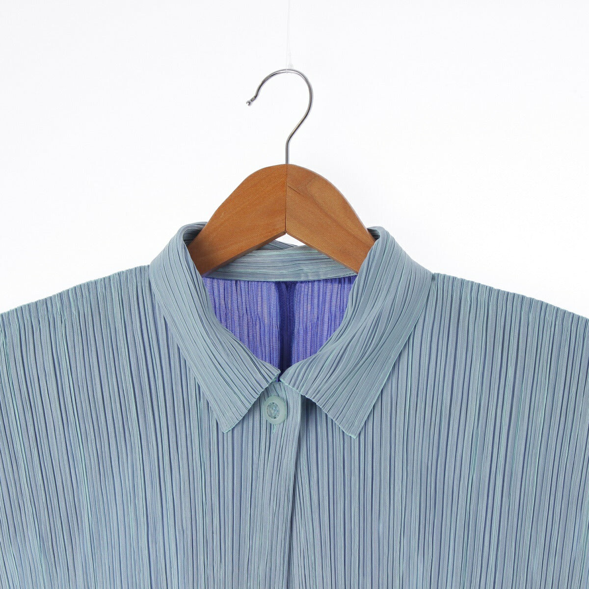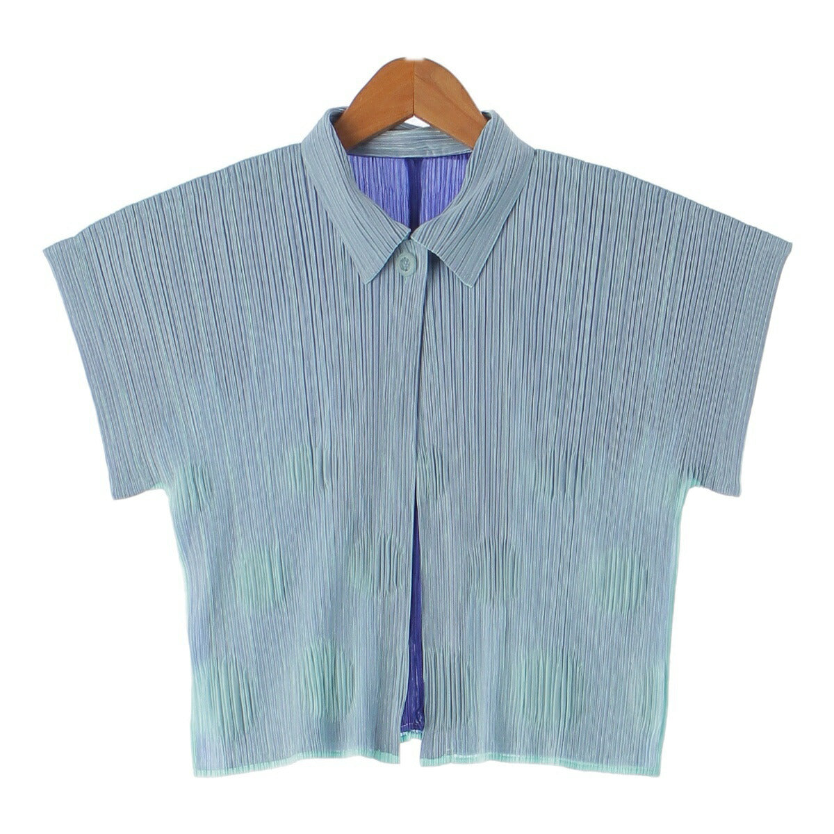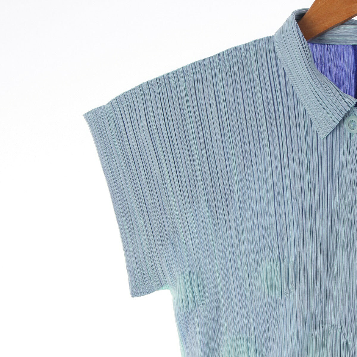 Pleated Please Issey Miyake Gradient Dot Flare Pleated Cardigan Tops Skirt PP81-JG796 PP81-JO794 Light Blue [Used] [Authentic Guaranteed]