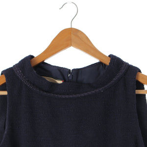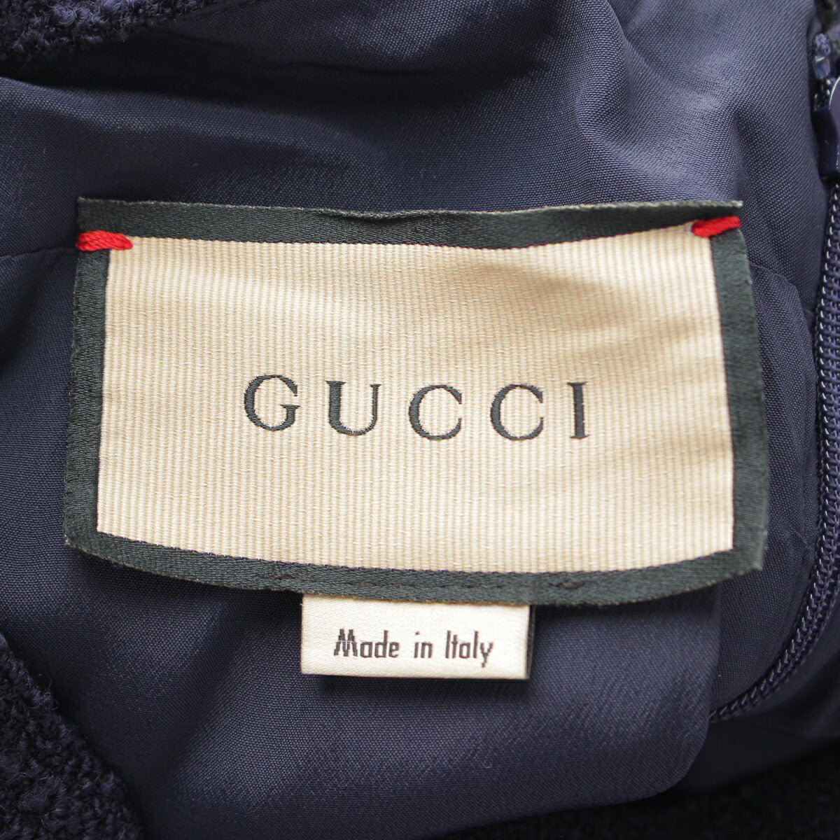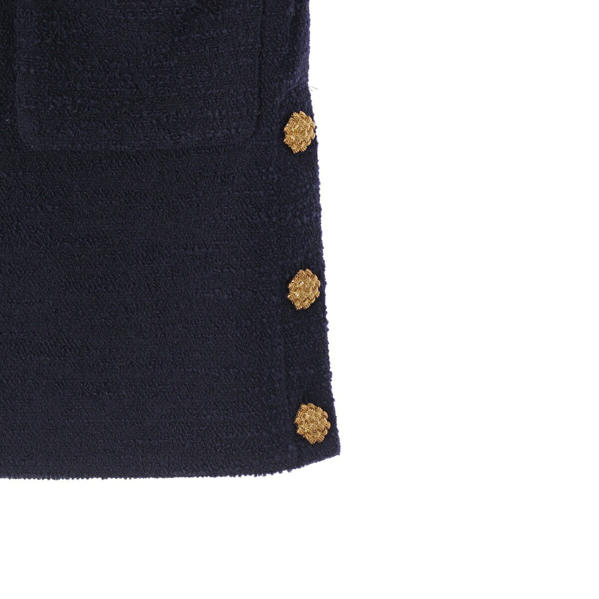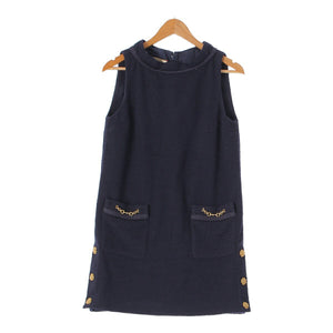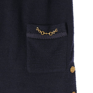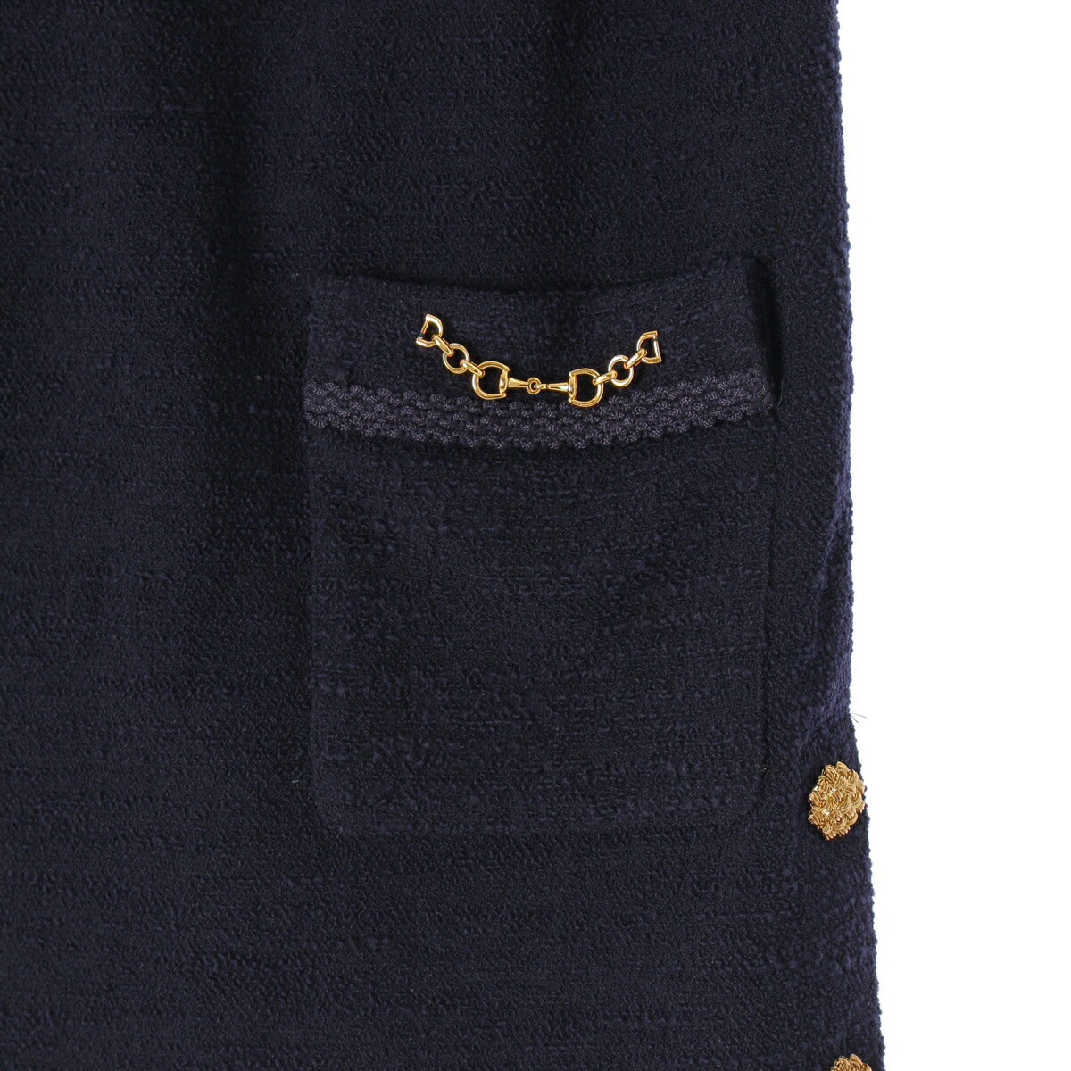 Gucci Horsebit Gold Button Wool x Nylon Tweed Dress 652725 Navy Size 40 [Used] [Authentic Guaranteed]
