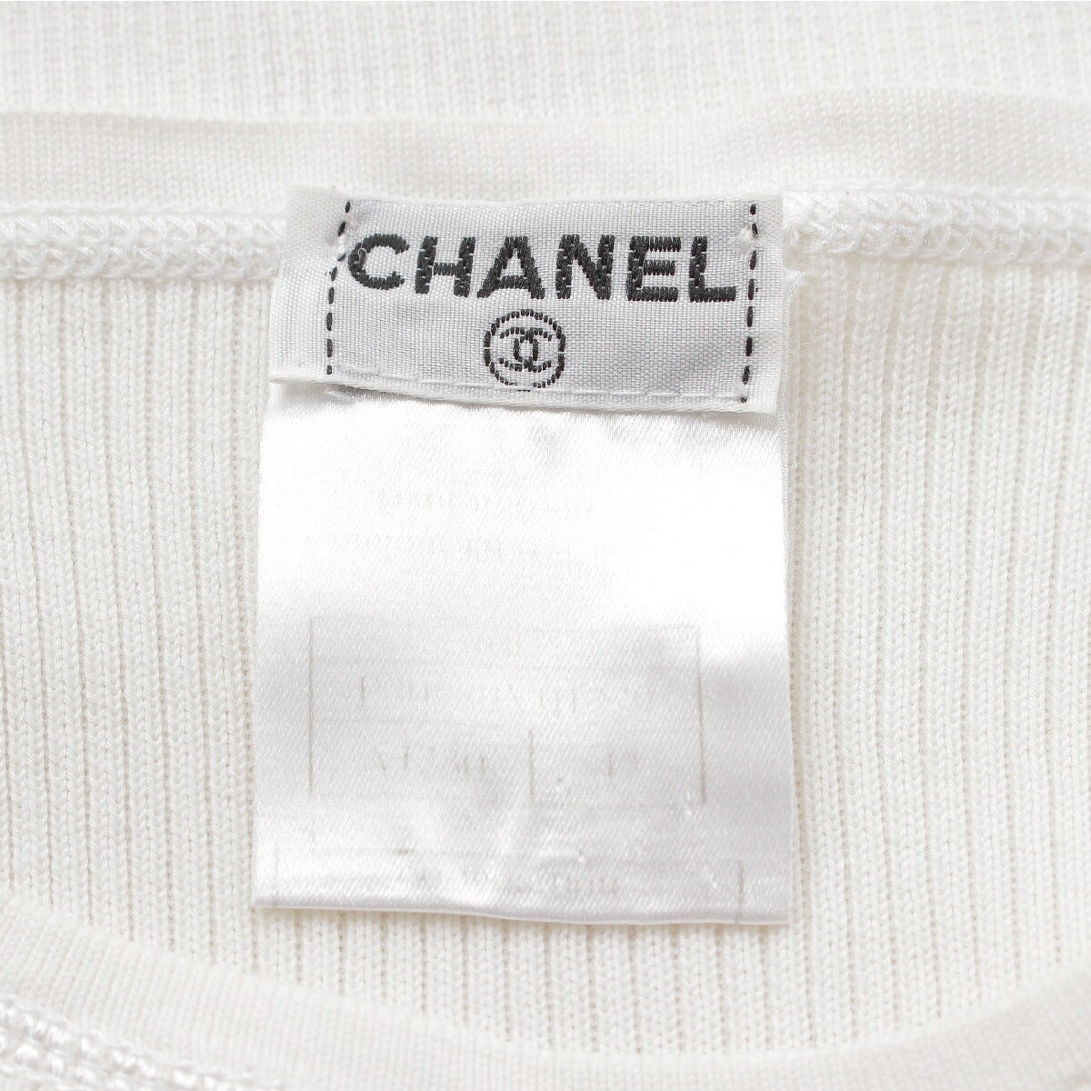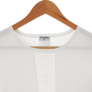 Chanel 03C COCO Mark Knit Cut and Sew Short Sleeve Knit Top P20589 White 42 [Used] [Authentic Guaranteed]