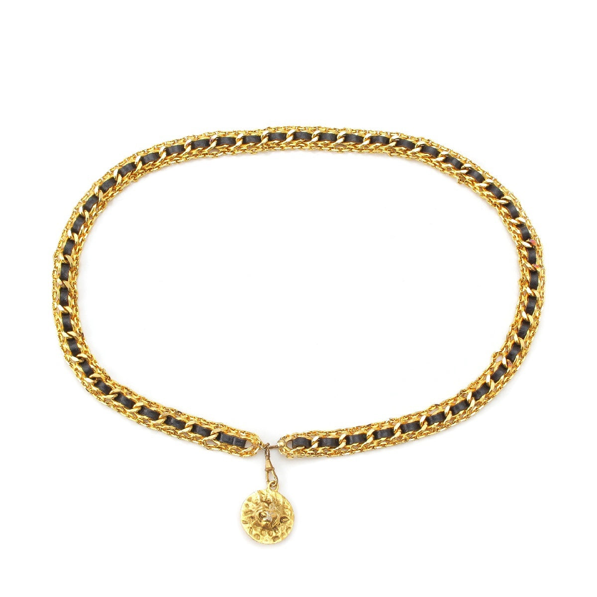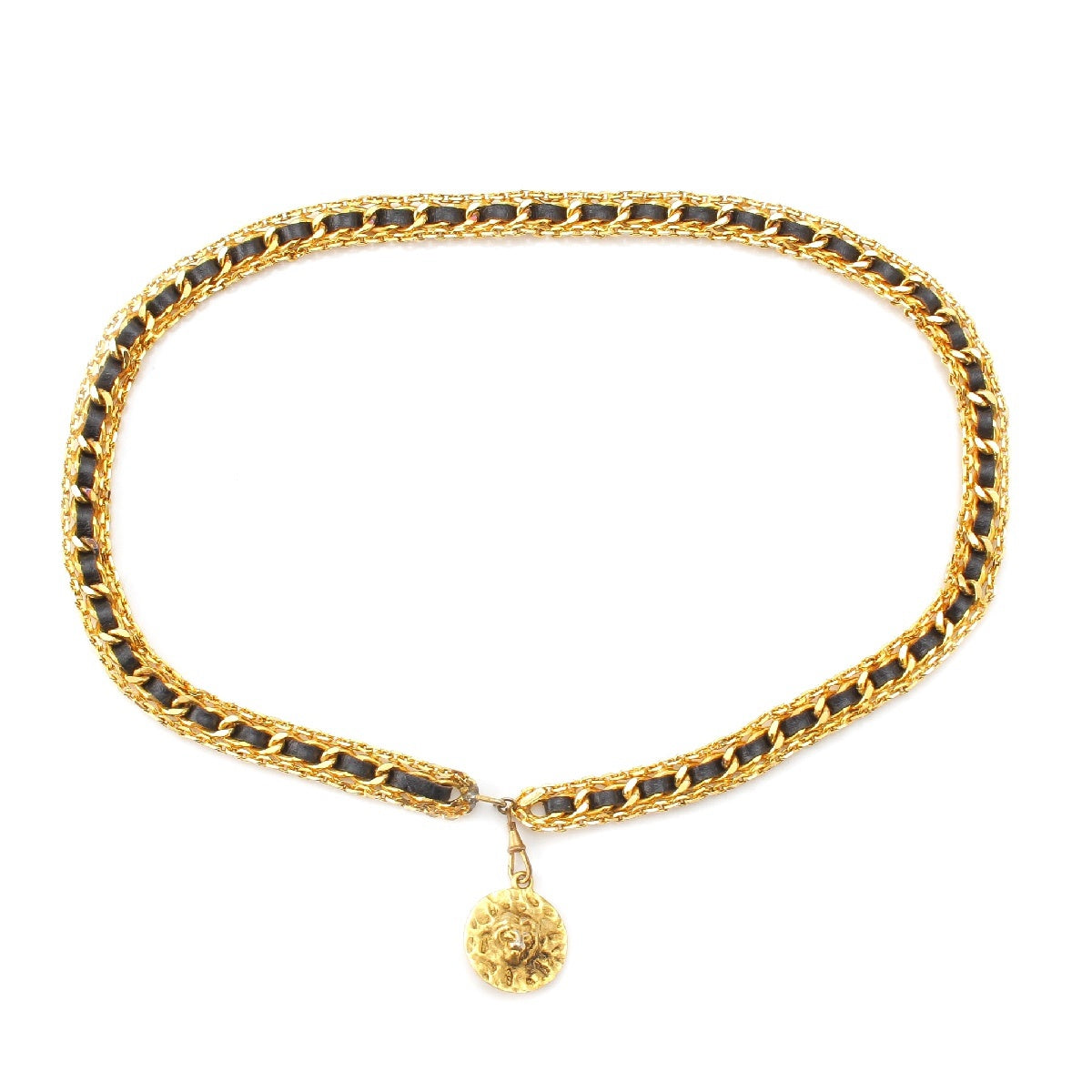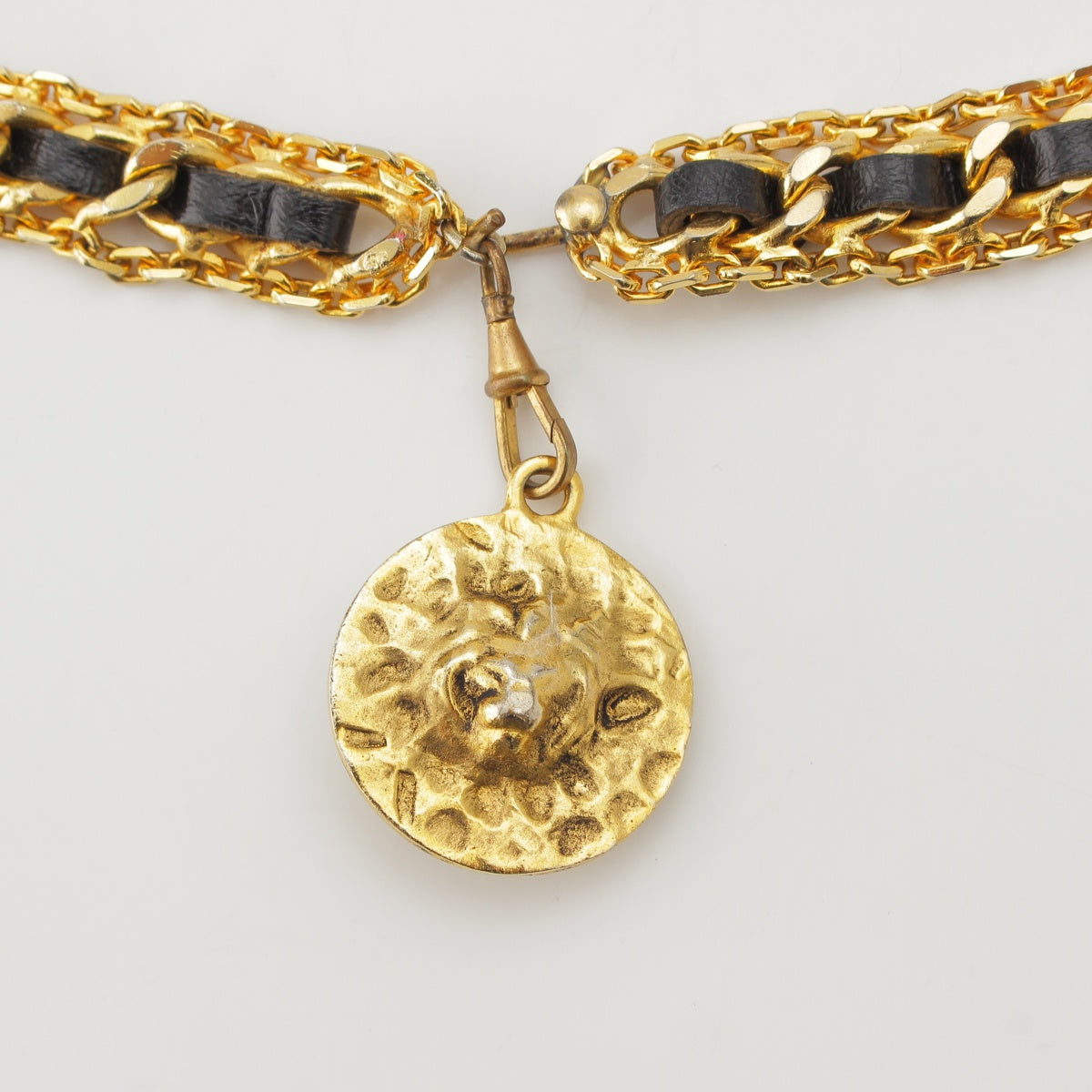 CHANEL leather Vintage Lion Motif Triple Chain belt gold