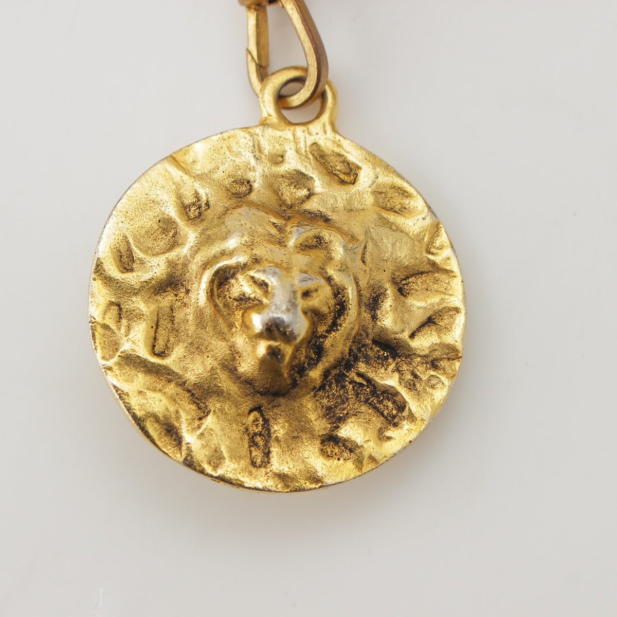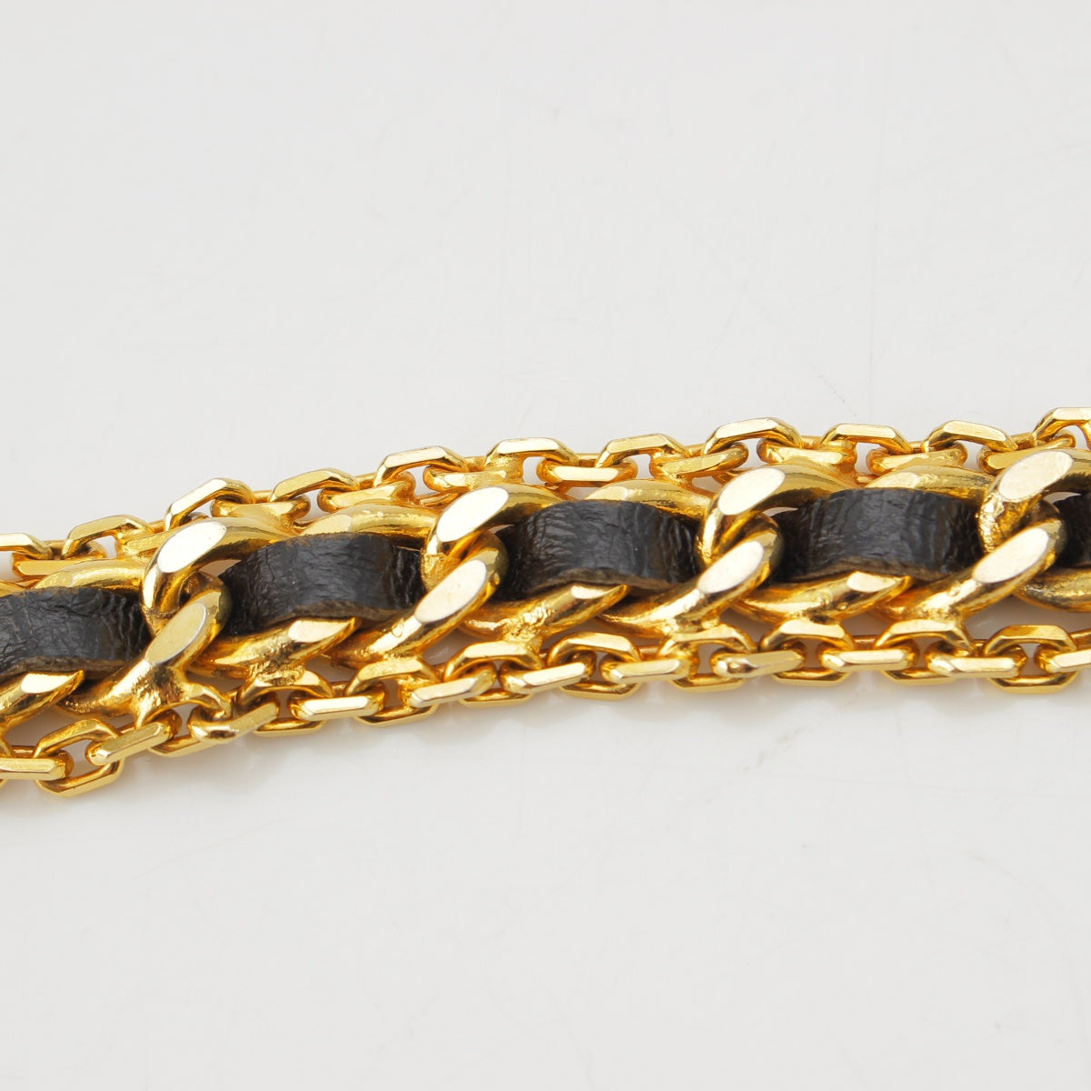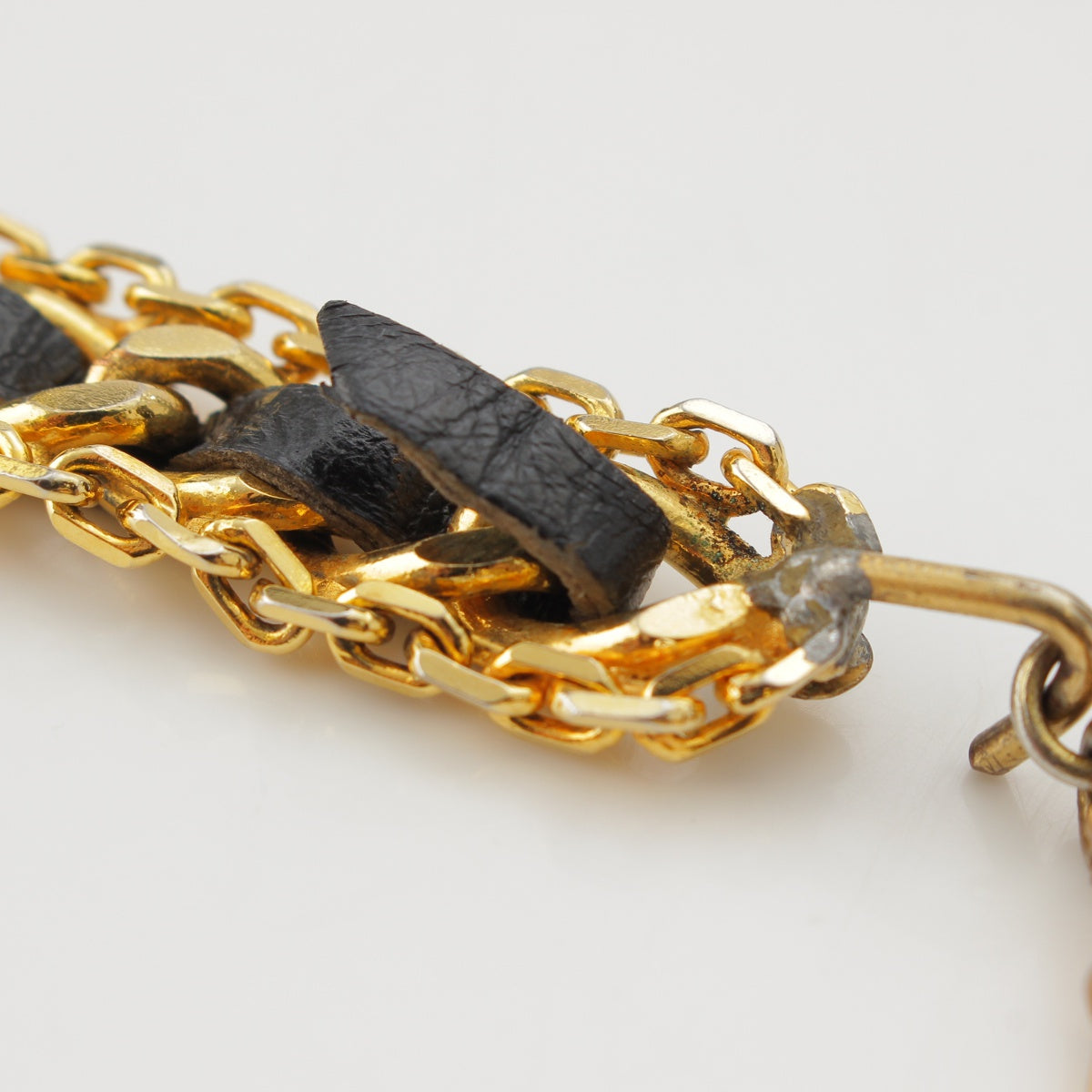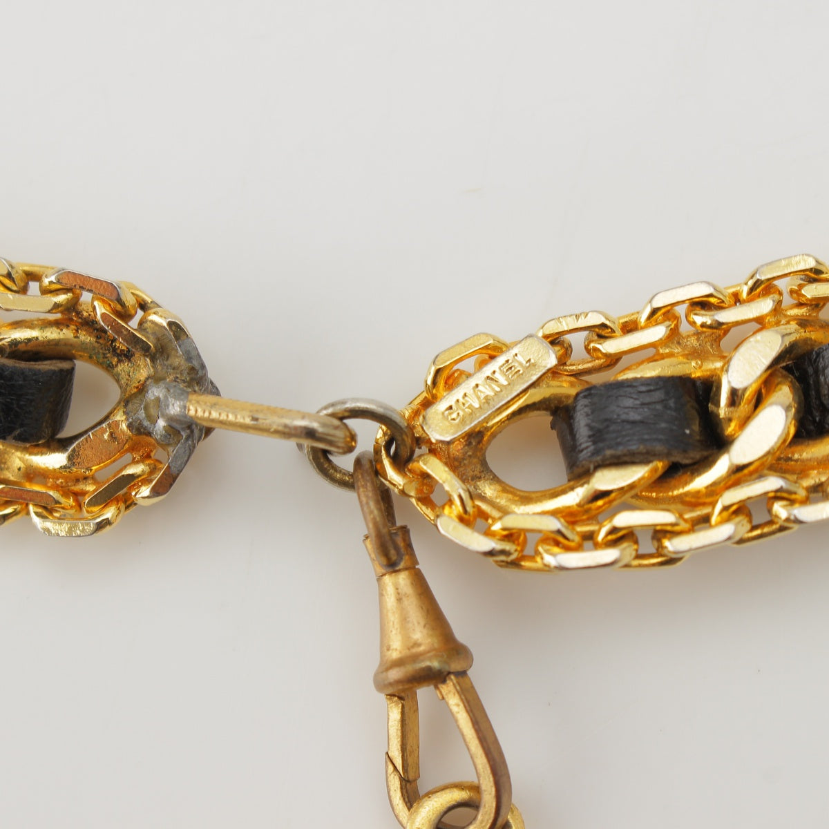 CHANEL leather Vintage Lion Motif Triple Chain belt gold