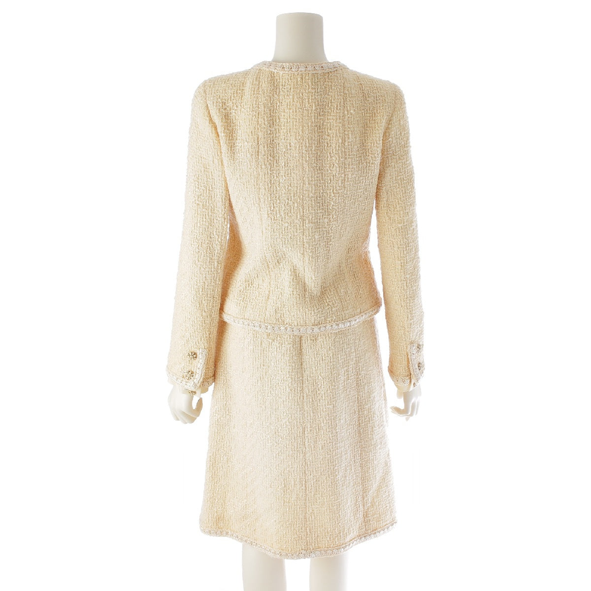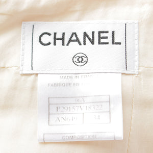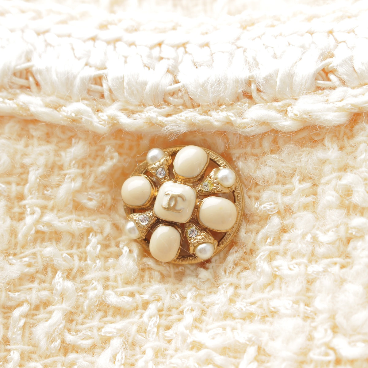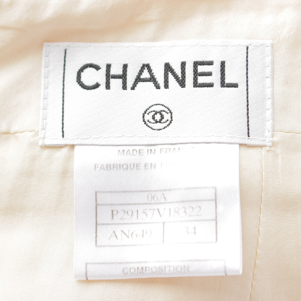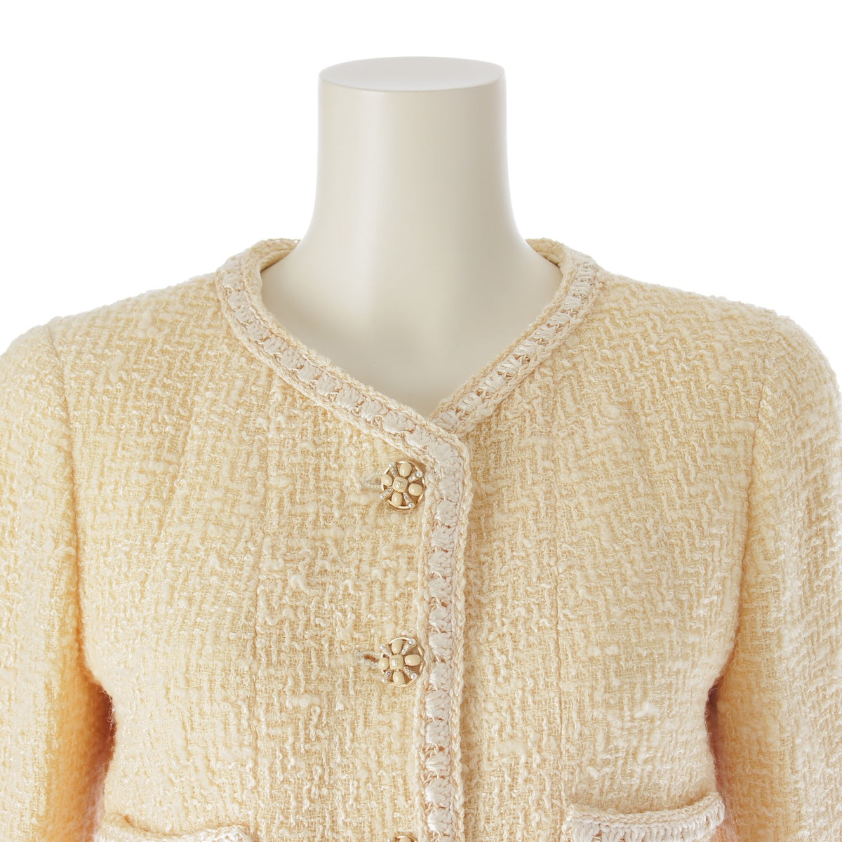 CHANEL 06A cotton COCO Mark Gripoa Tweed Trim Jacket Skirt setup No collar, 4 pockets P29157 beige 34