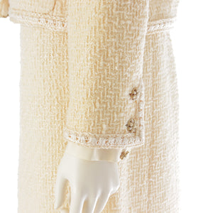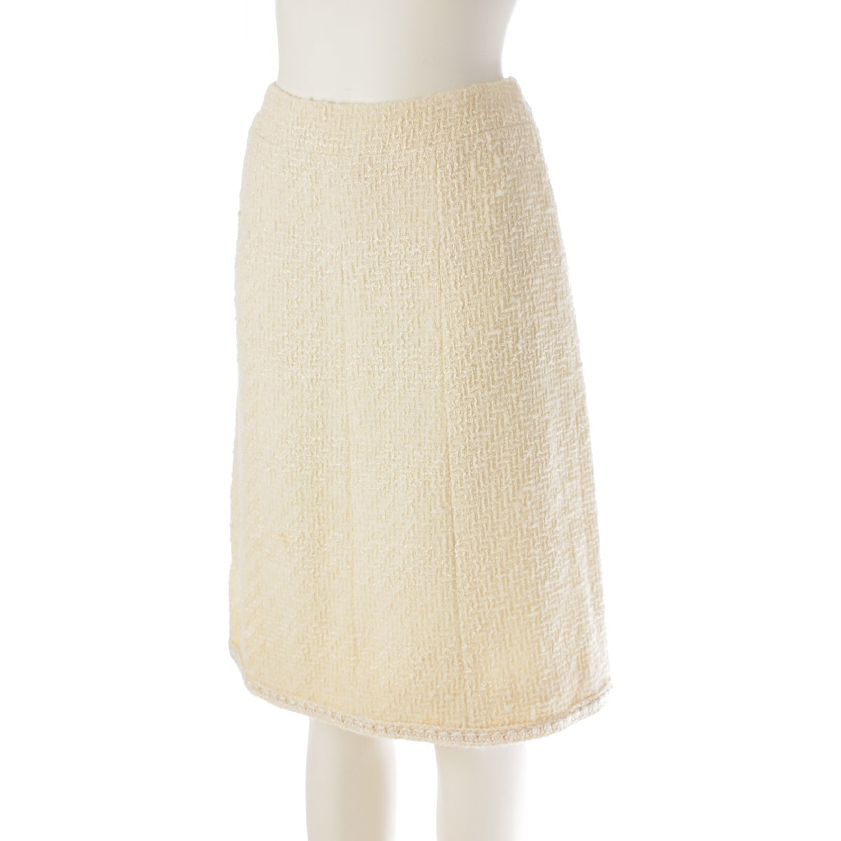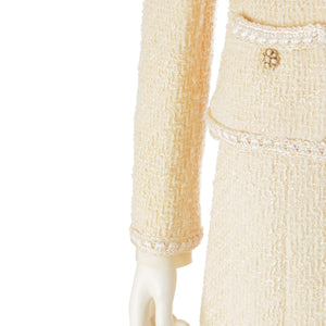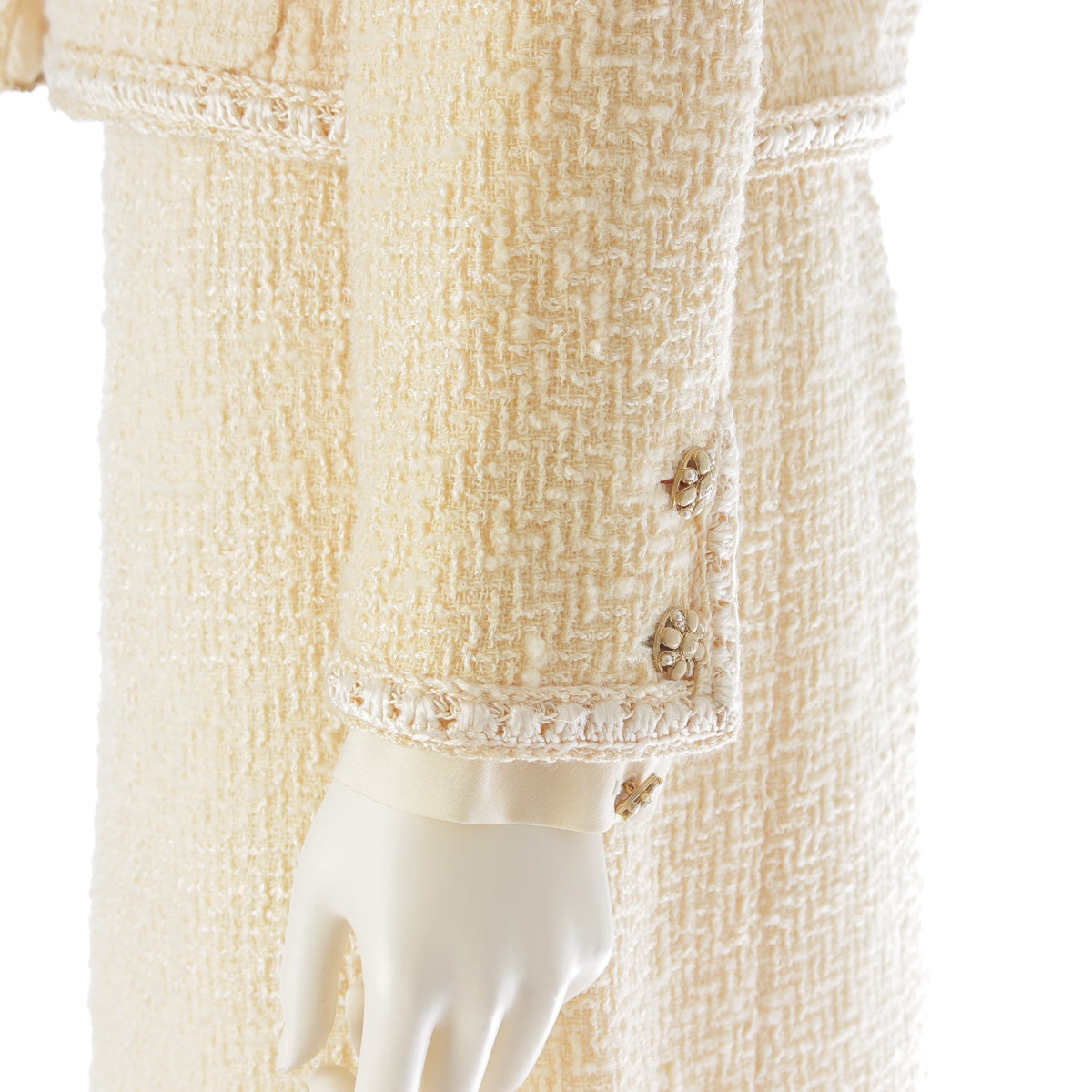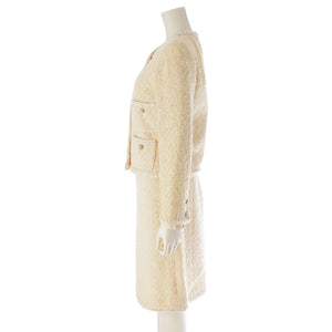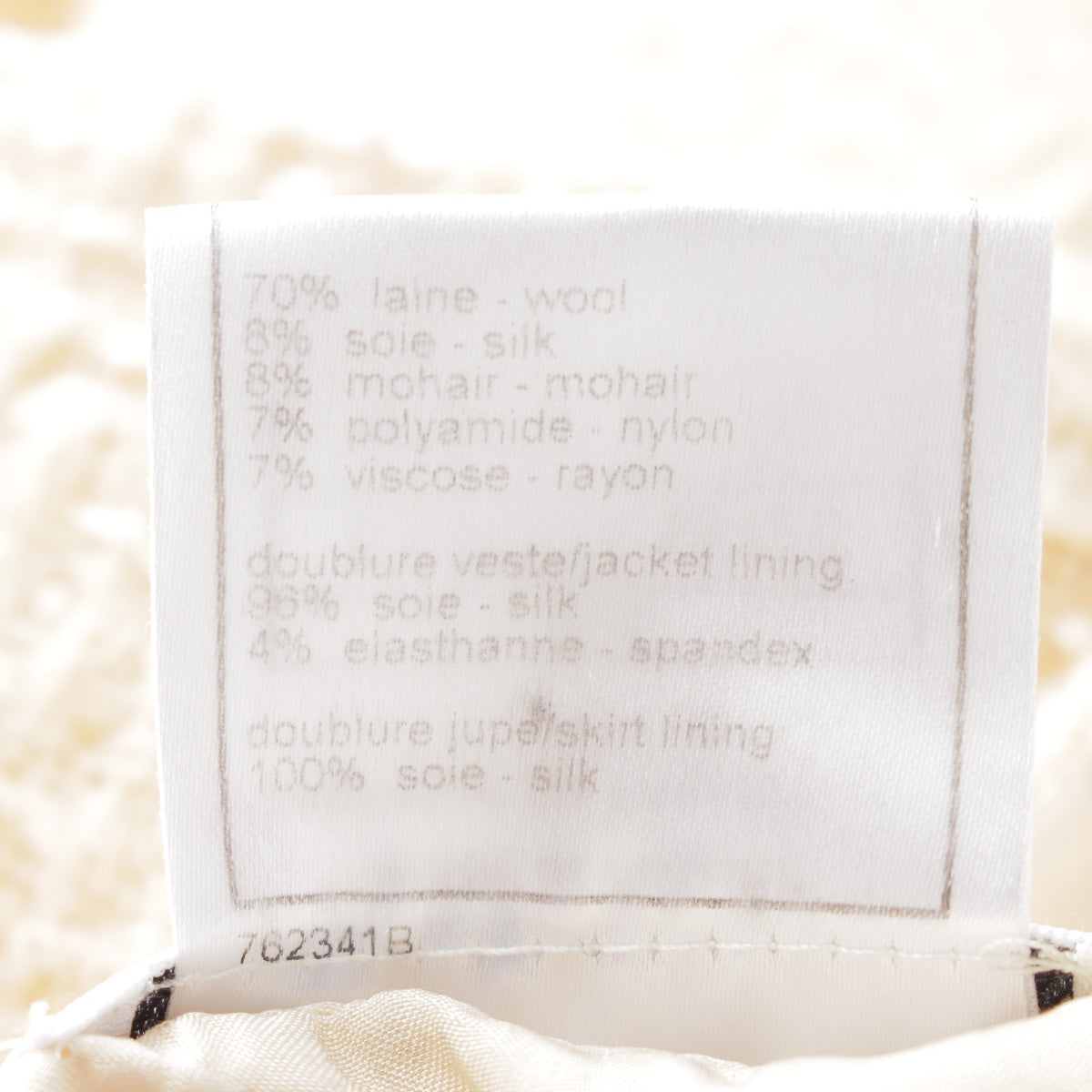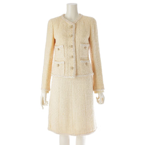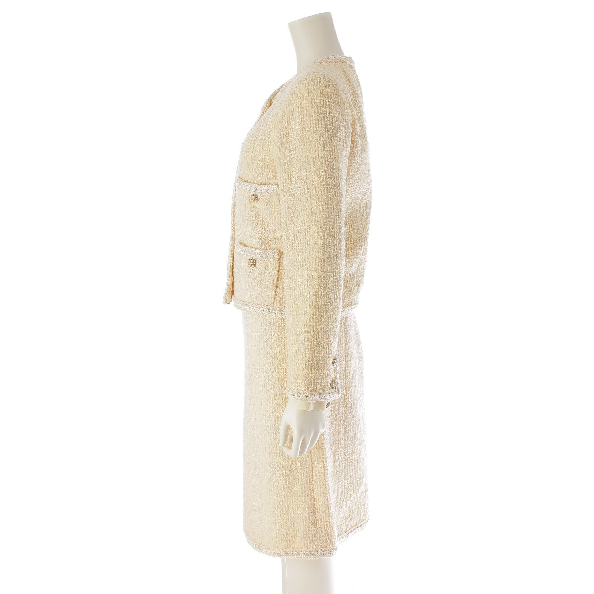 CHANEL 06A cotton COCO Mark Gripoa Tweed Trim Jacket Skirt setup No collar, 4 pockets P29157 beige 34