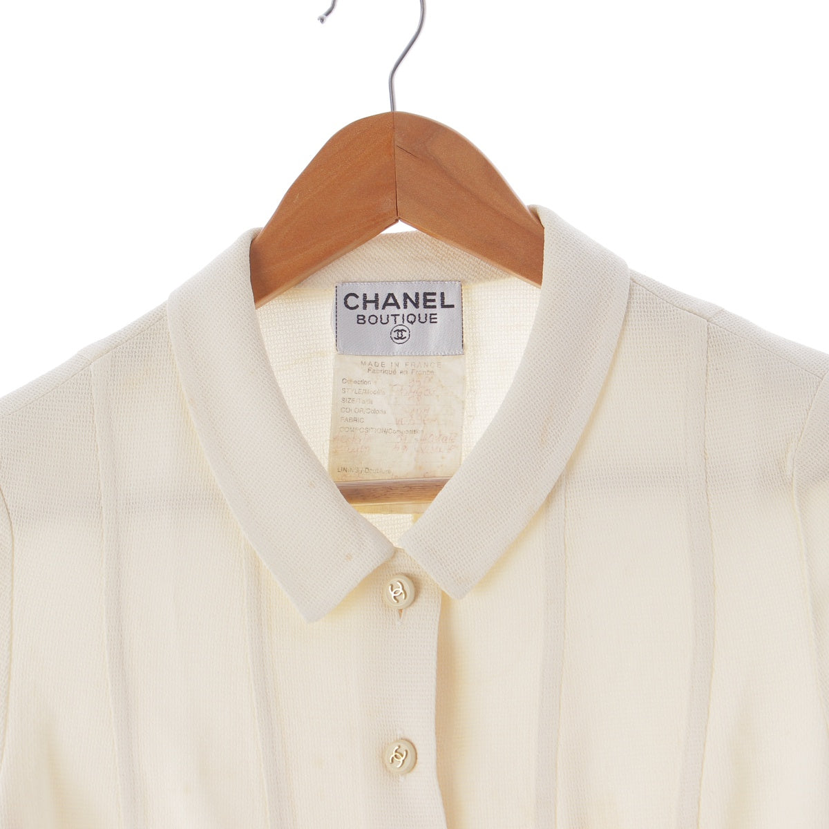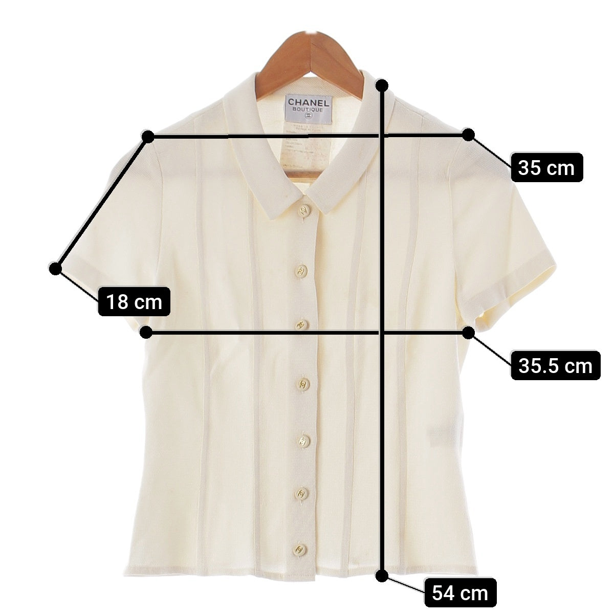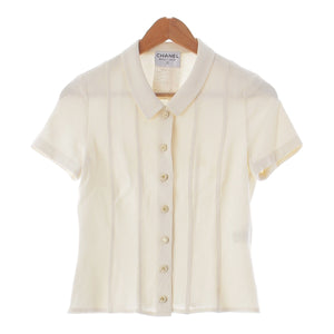 CHANEL 95P boutique Vintage COCO Mark Paper Tag Short Sleeve blouse Shirt tops white 38