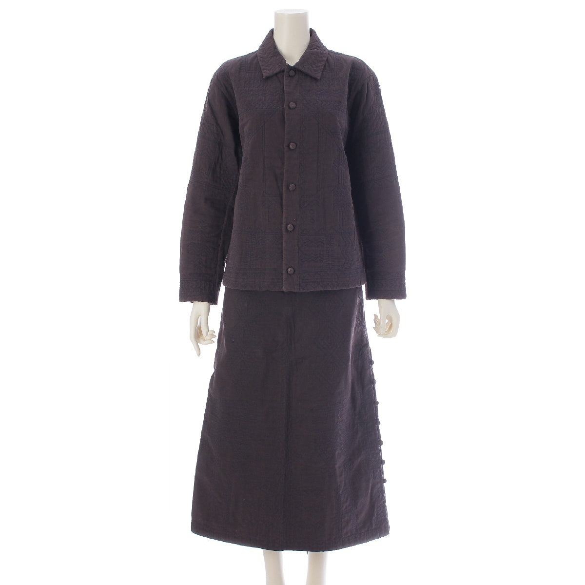 ISSEY MIYAKE Haat cotton Embroidery All-over pattern Skirt setup Jacket Long skirt HA14FD652 HA14FG654 Brown 2