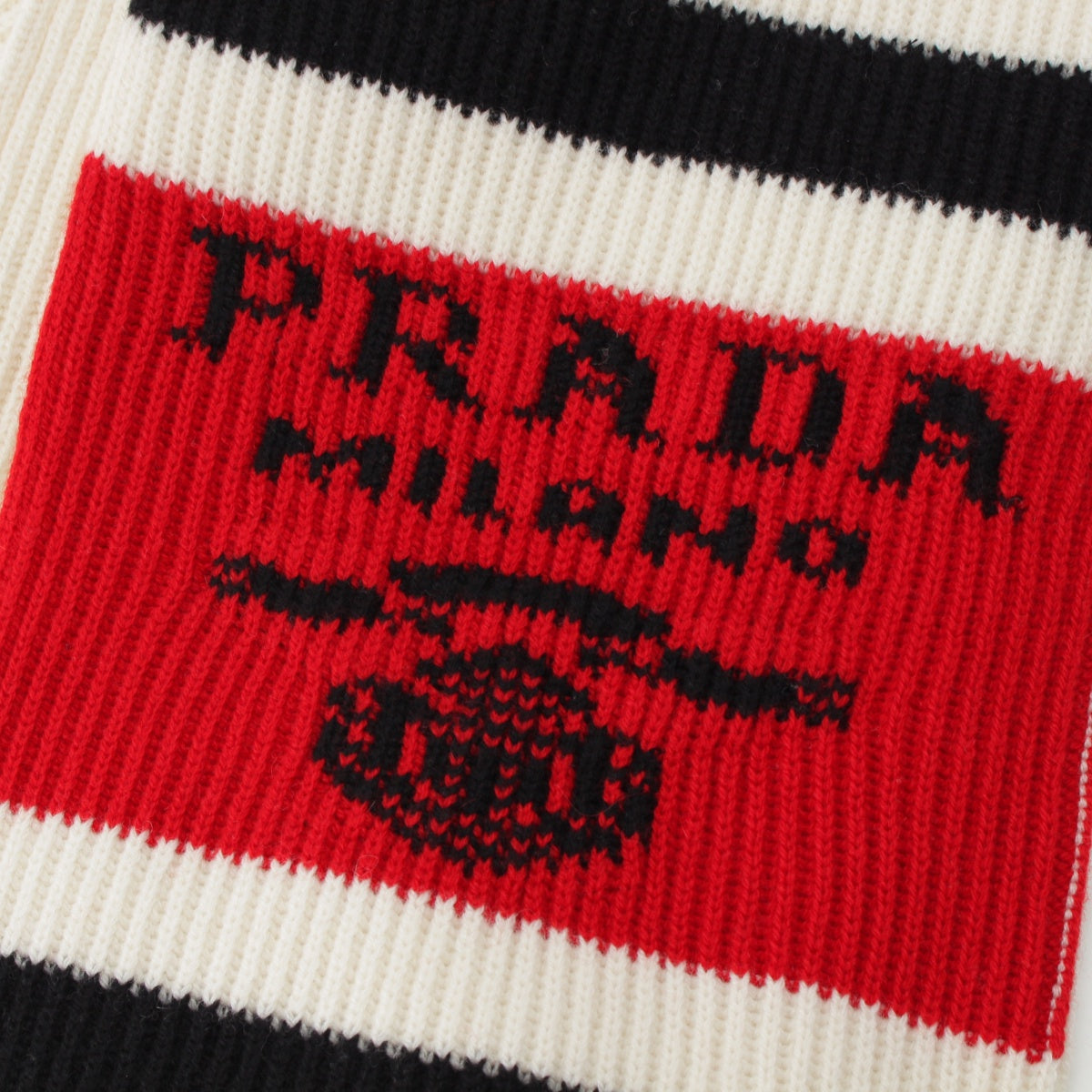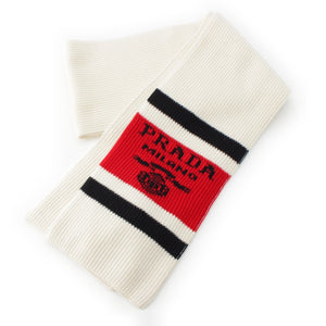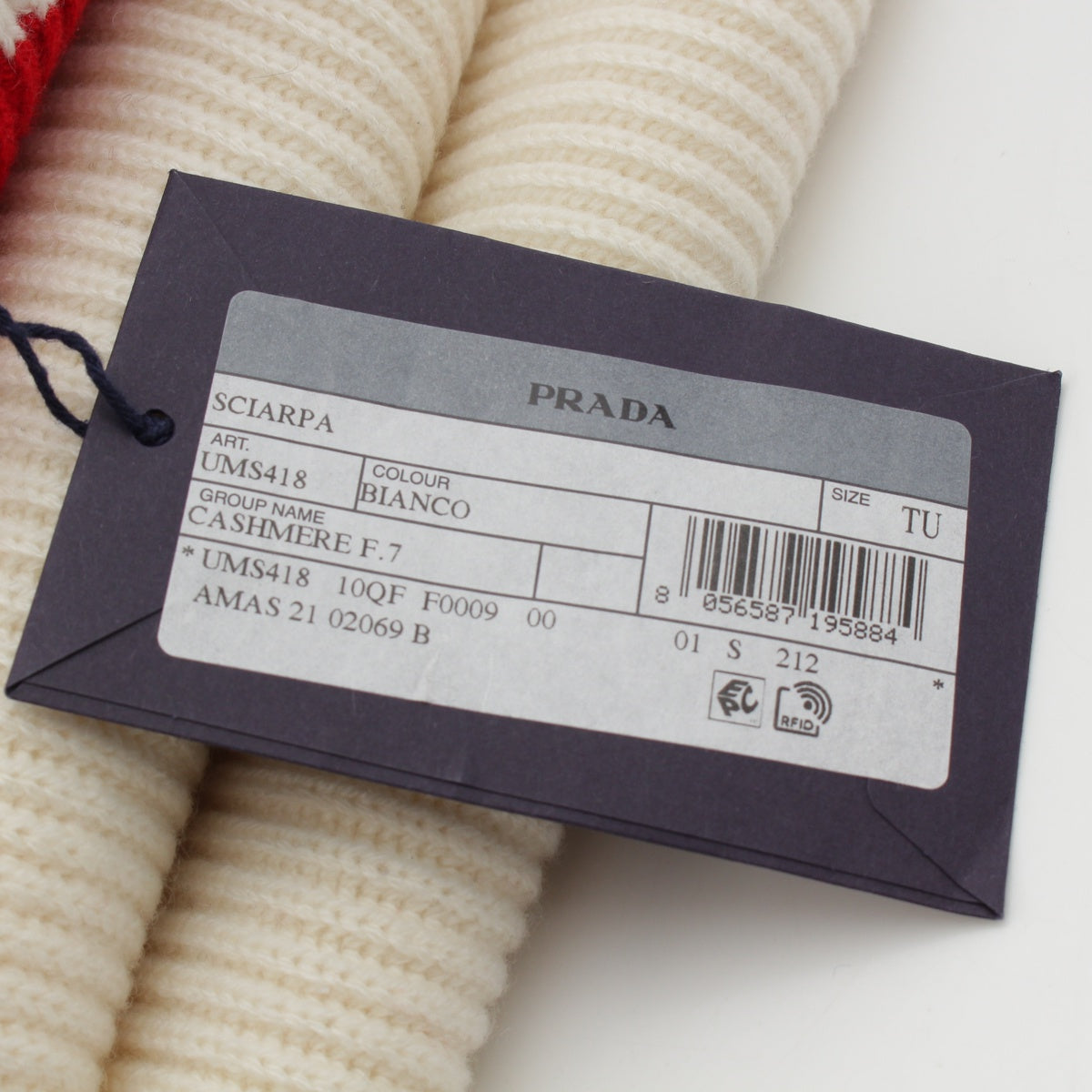 PRADA cashmere Logo line Scarf Stall UMS418 Bianco White Red Black