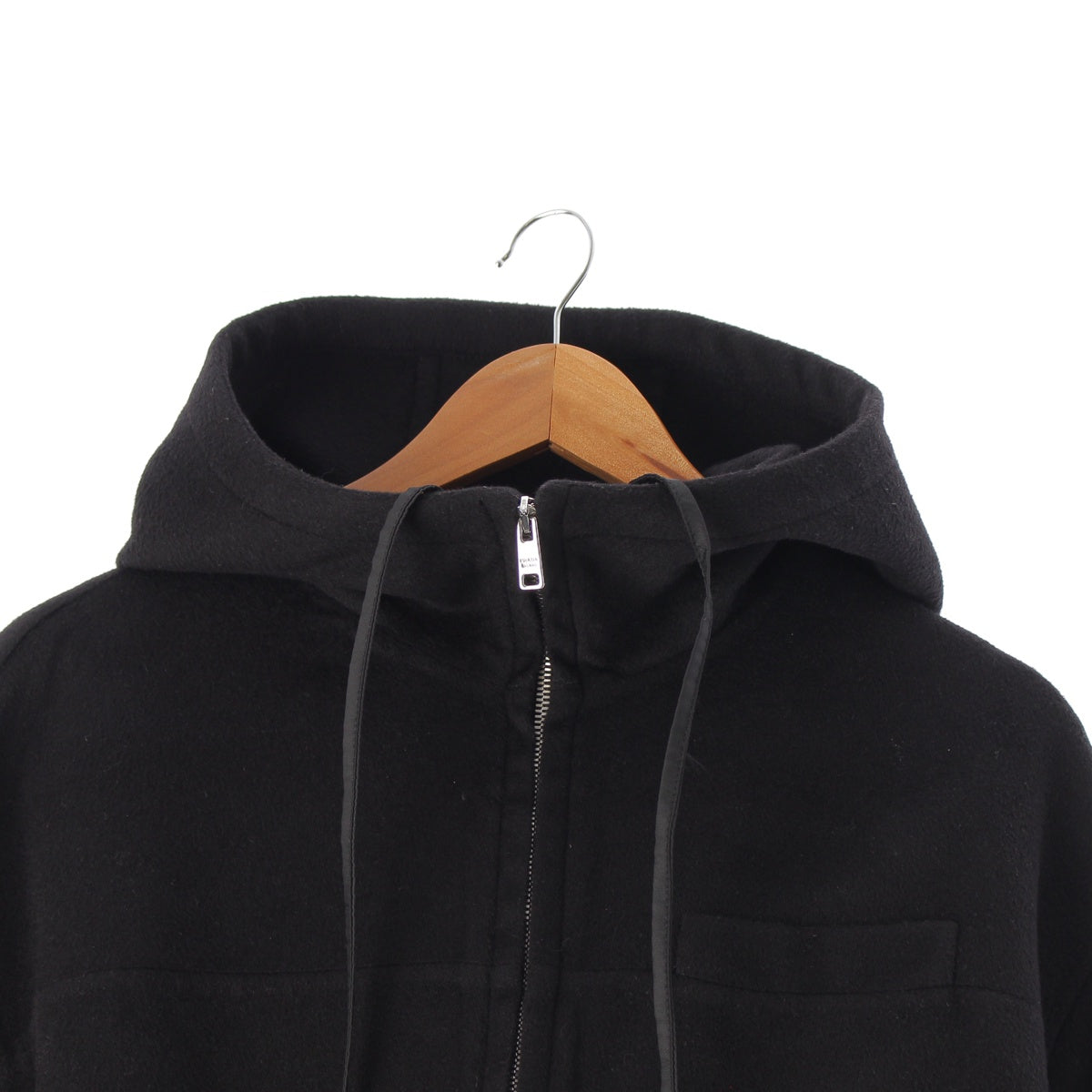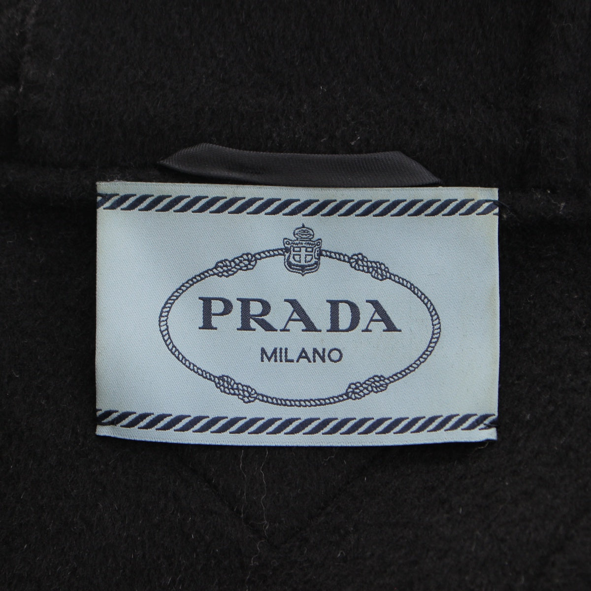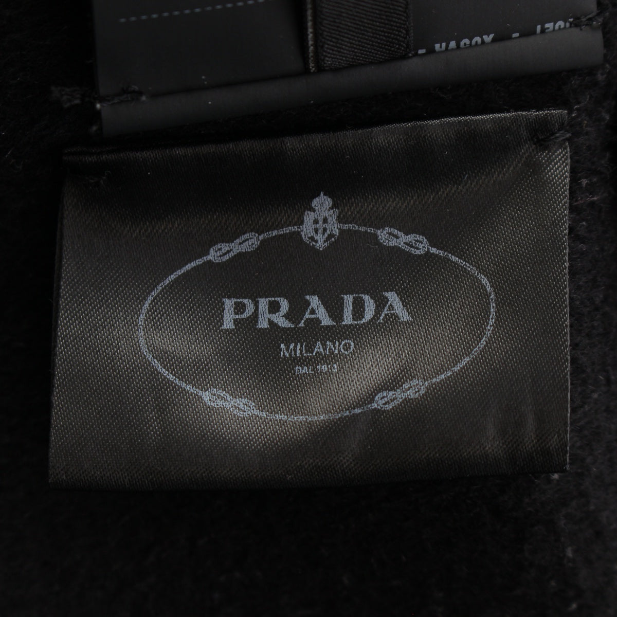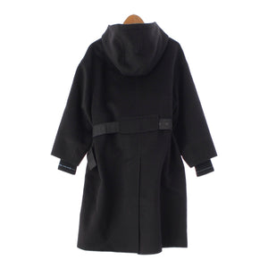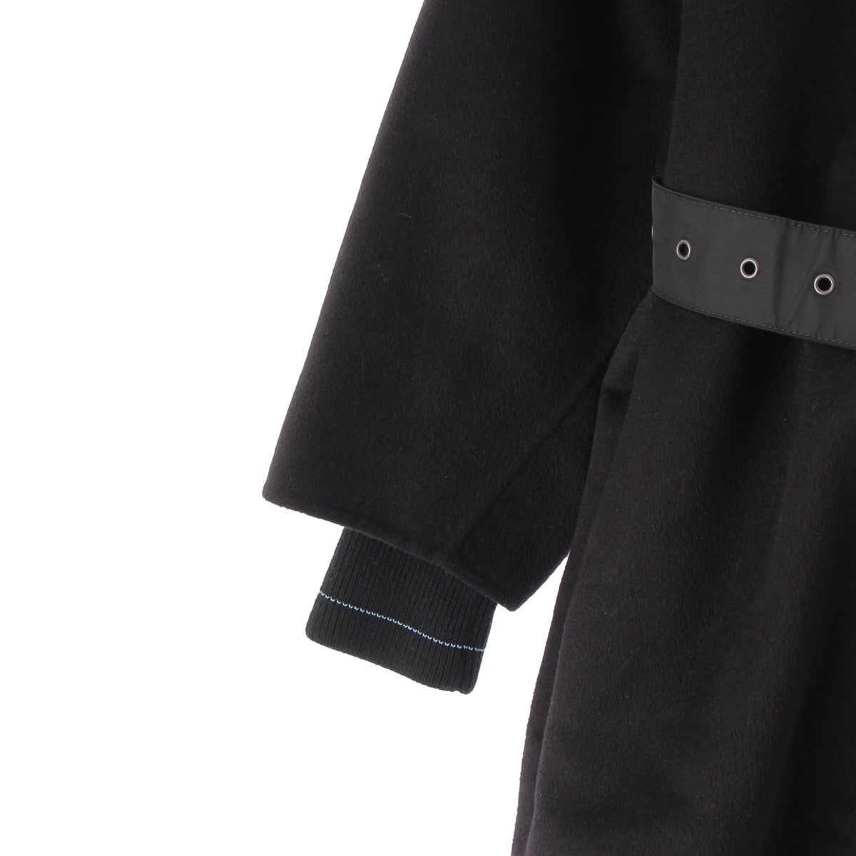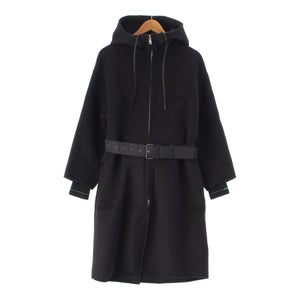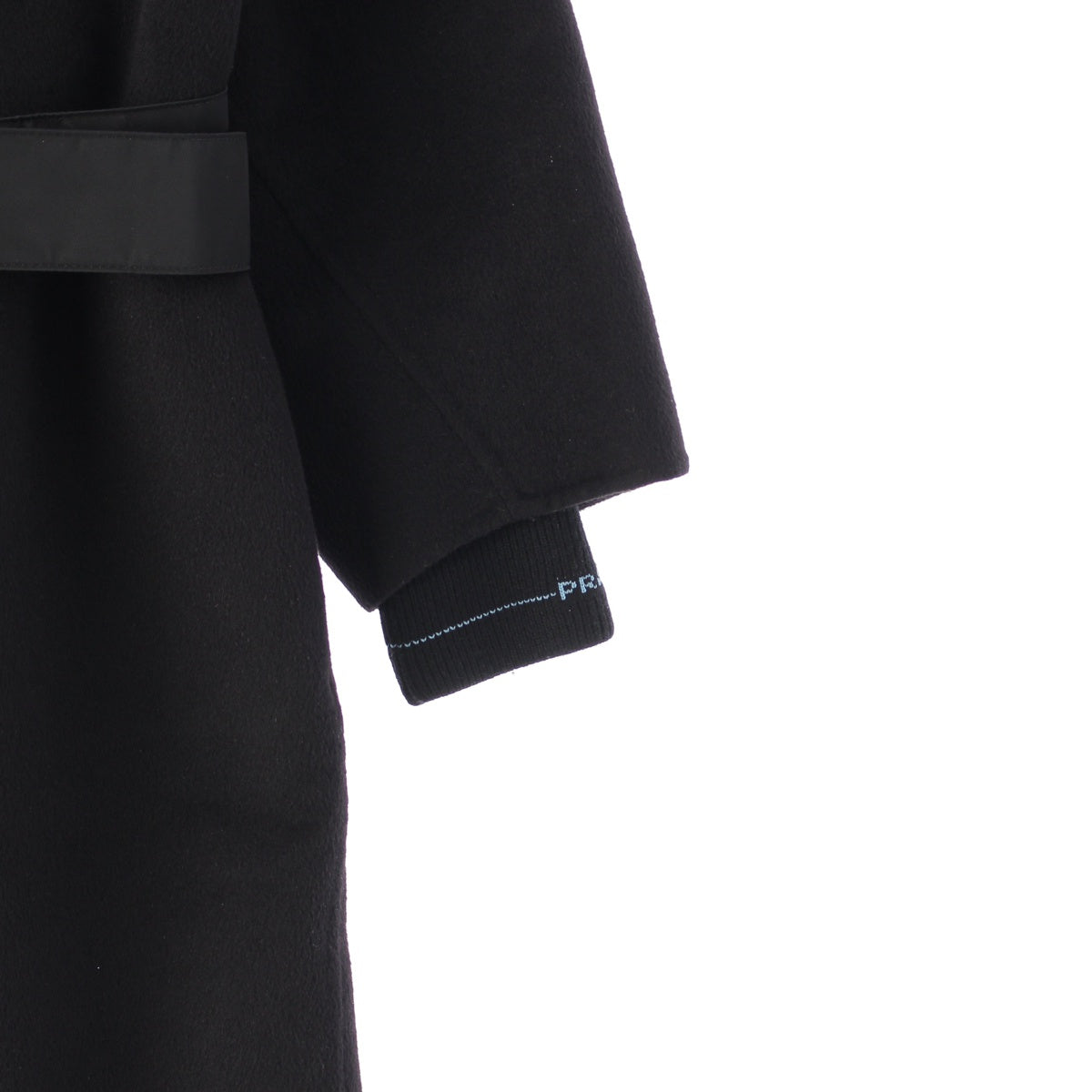 PRADA Virgin wool Angora Full zip Belted Hood Drawstring Long coat Hoodies Outerwear P691HH black 36