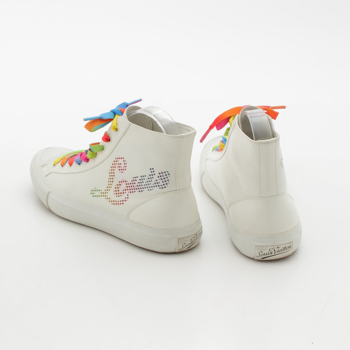 LOUIS VUITTON 18Stainless Steel Tattoo line leather High cut sneakers MS1127 White multicolor 5