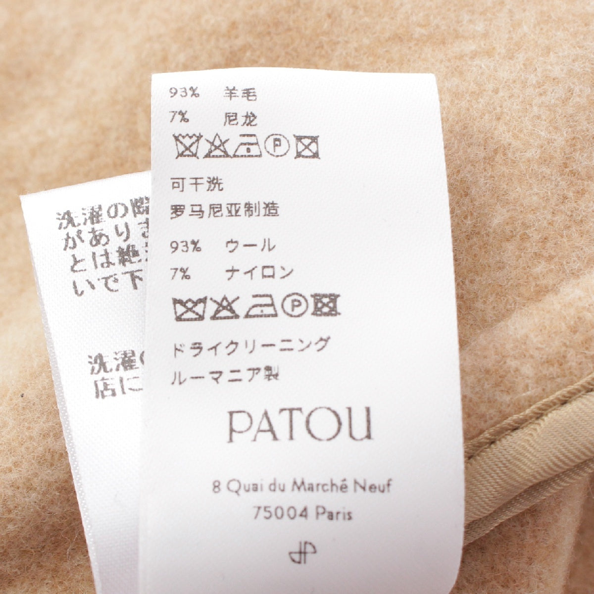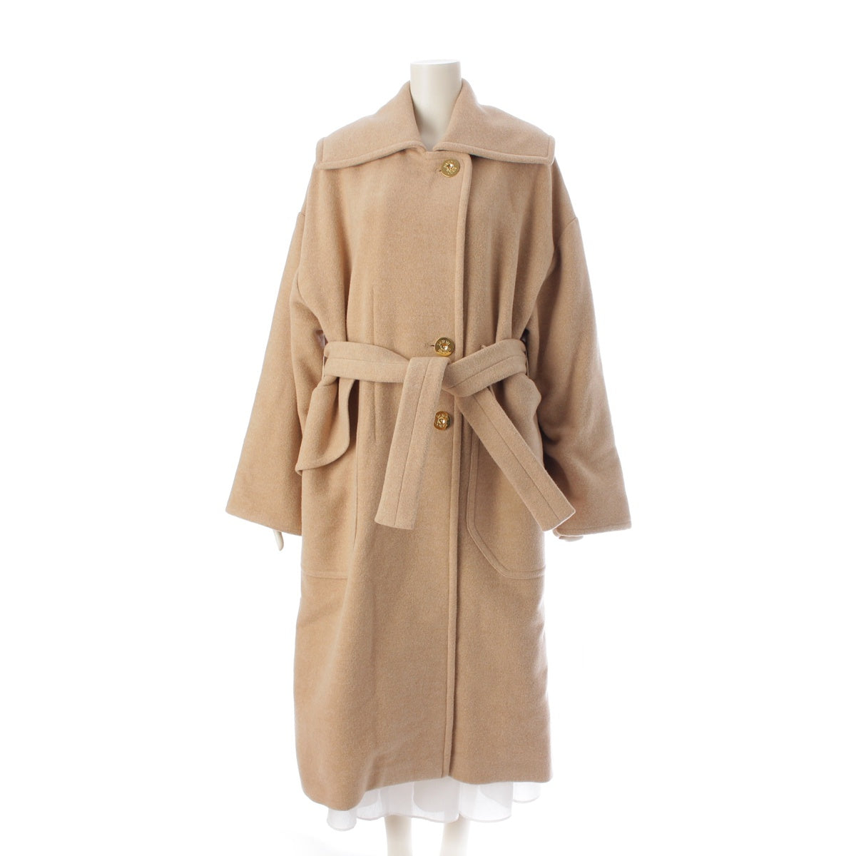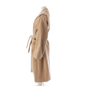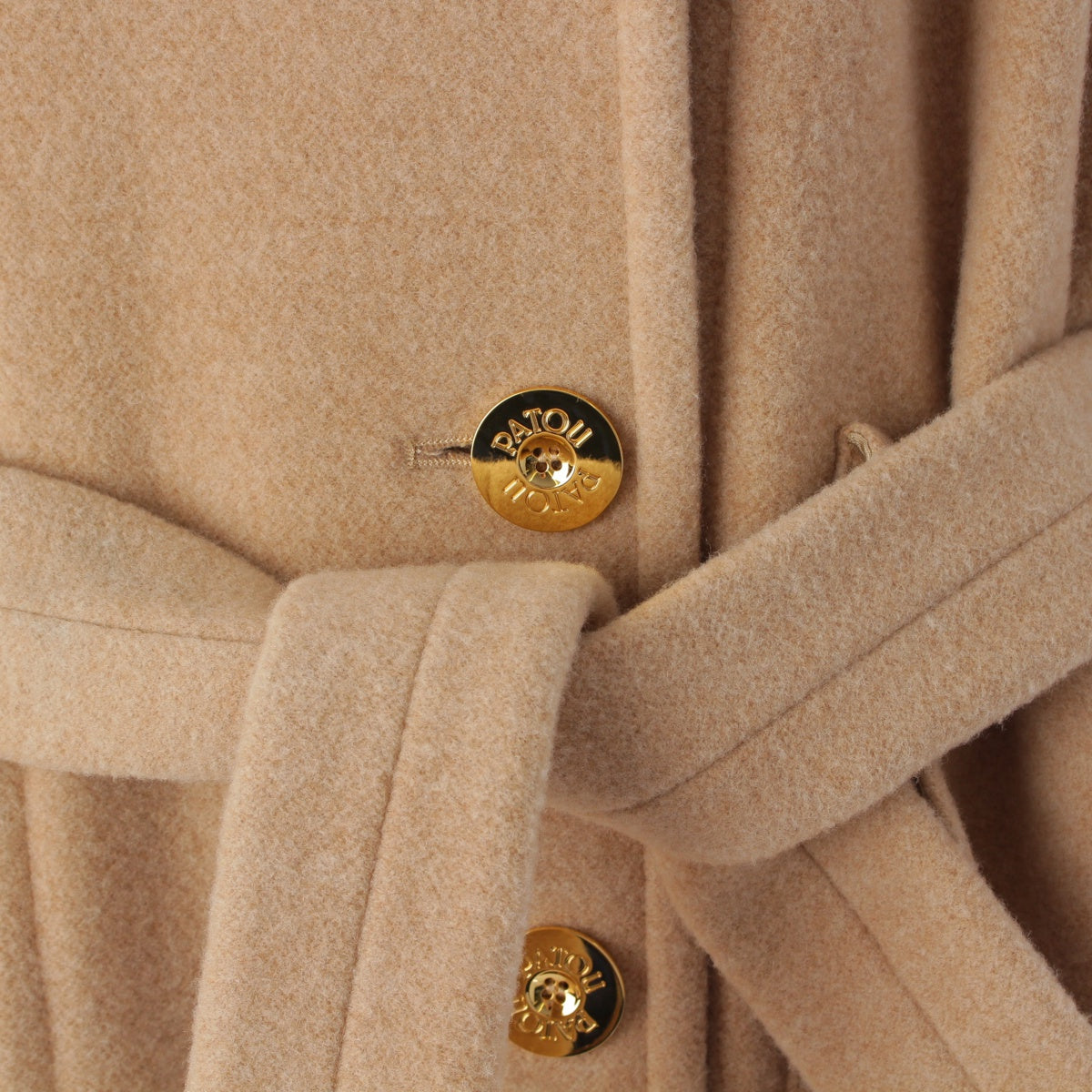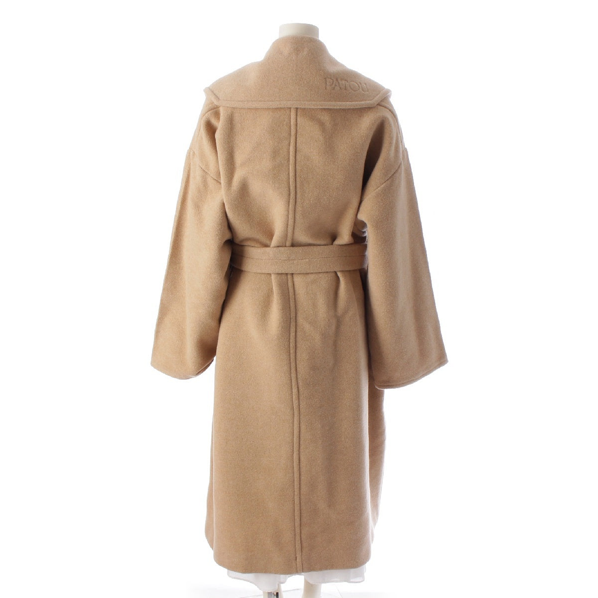 Patou wool Logo embroidered double-faced gold metal belt coat 22A-C0013-0121 beige 36