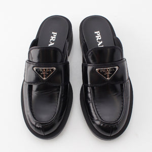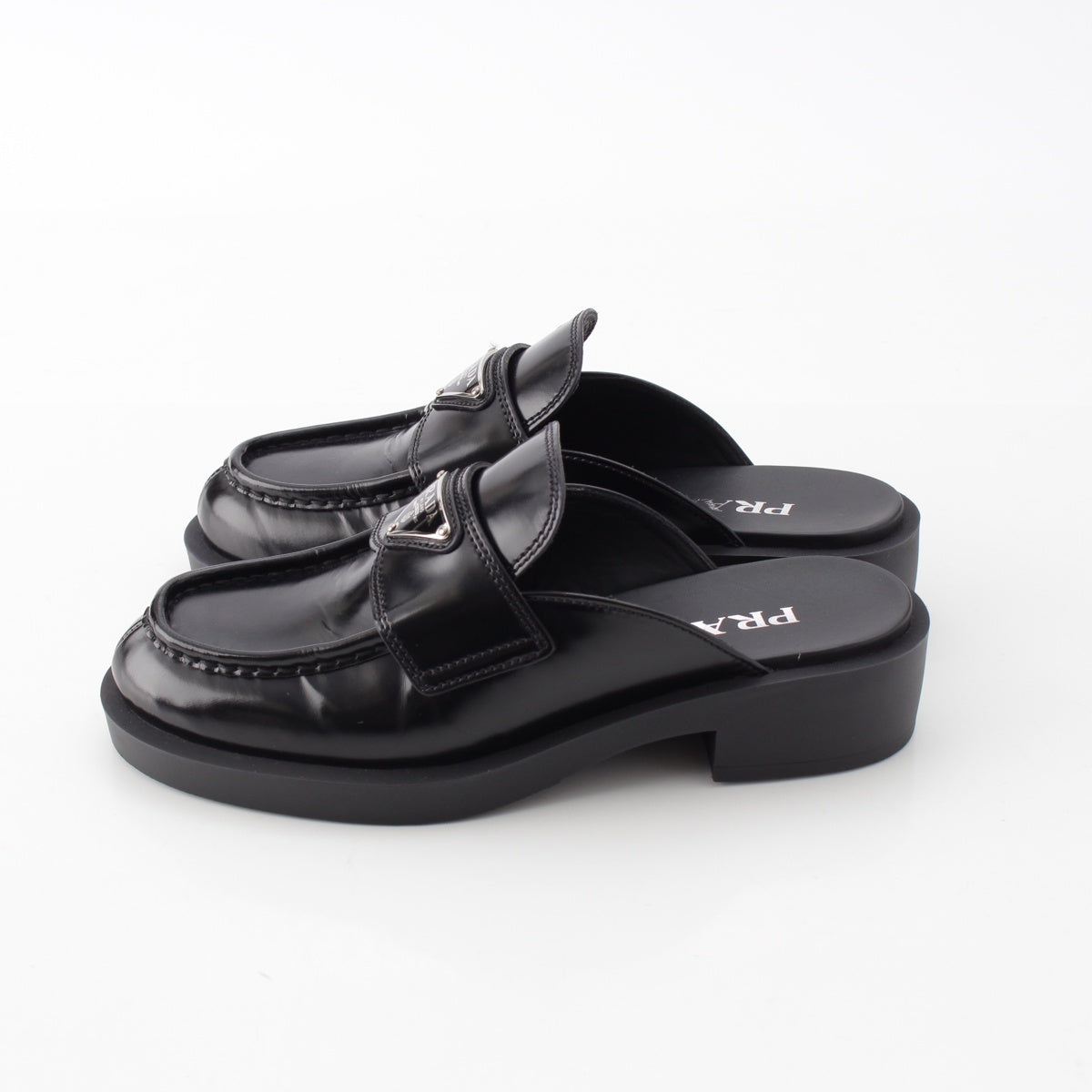 PRADA Brushed leather Triangle logo Mule 2S2963 black 34 2/1