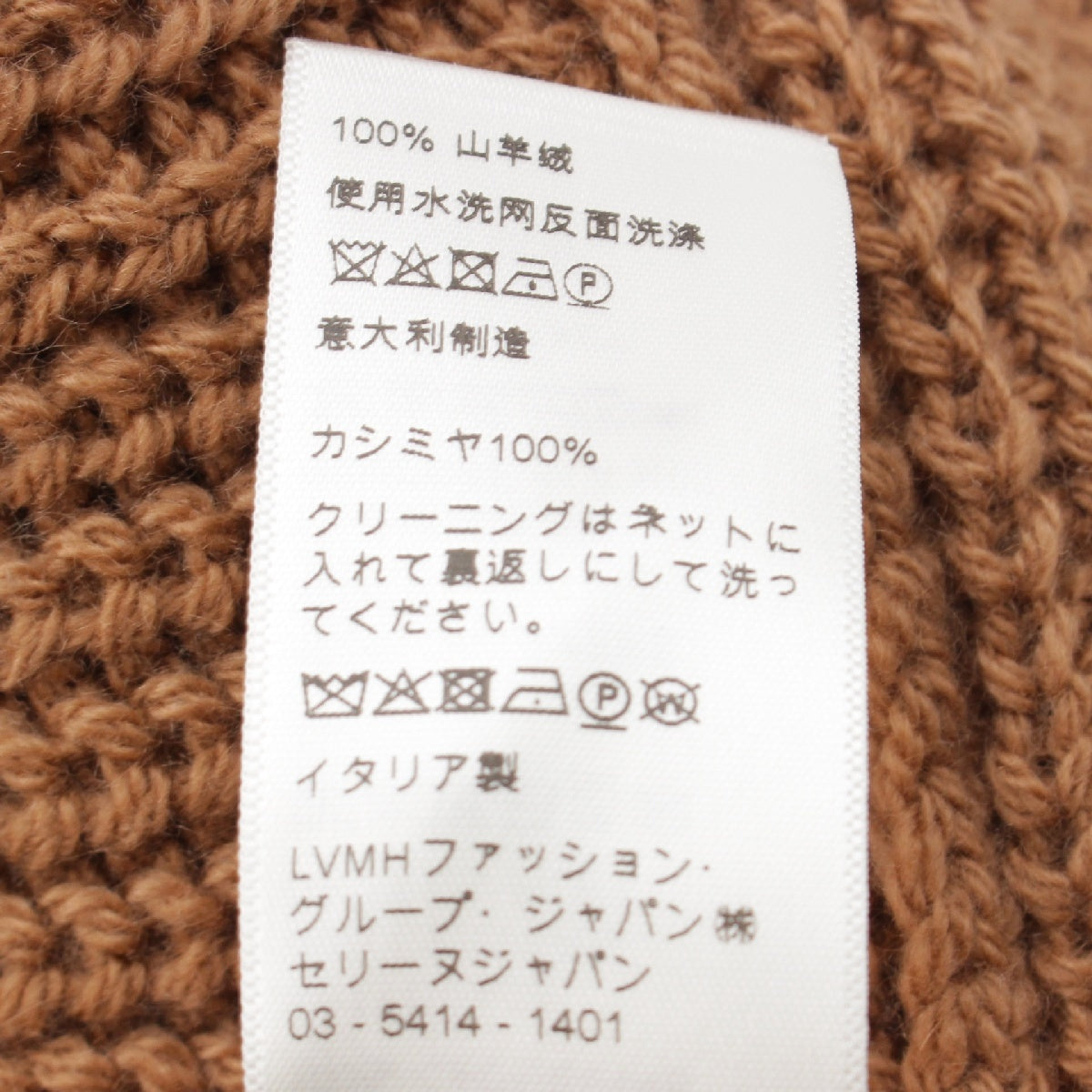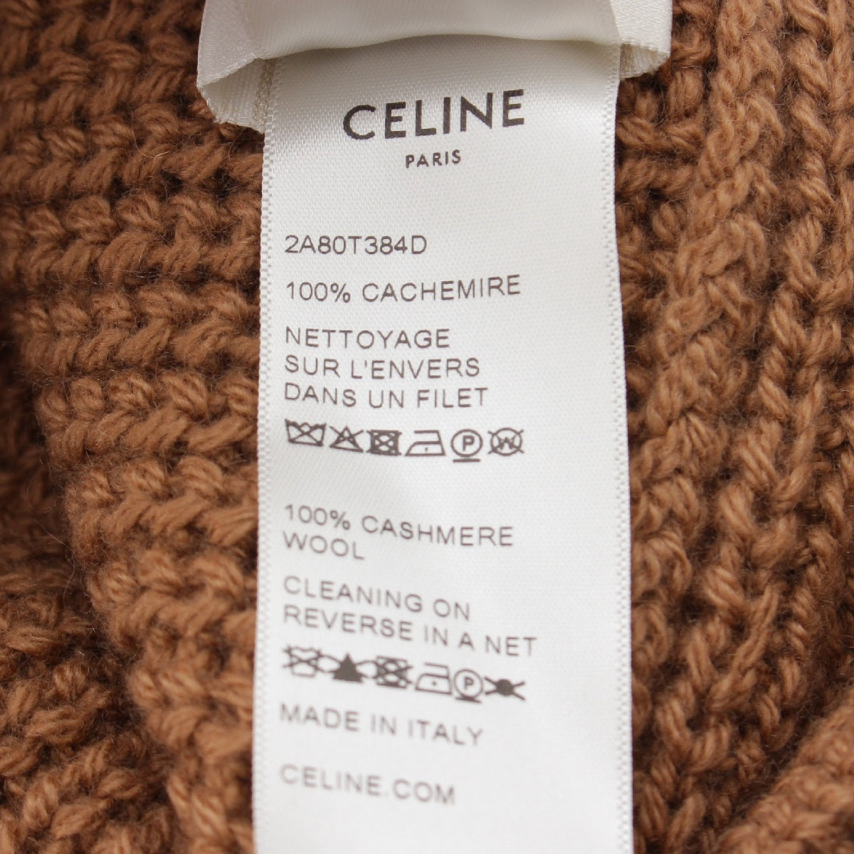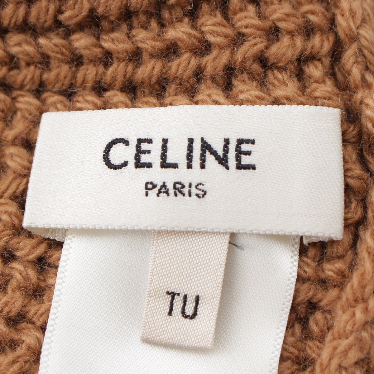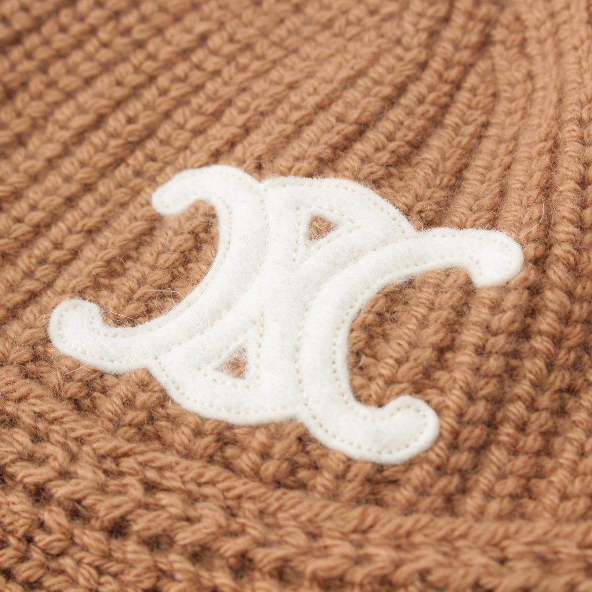 CELINE Edith Reman cashmere Triomphe Crochet Logo Beanie Knit cap hat 2A80T384D Brown