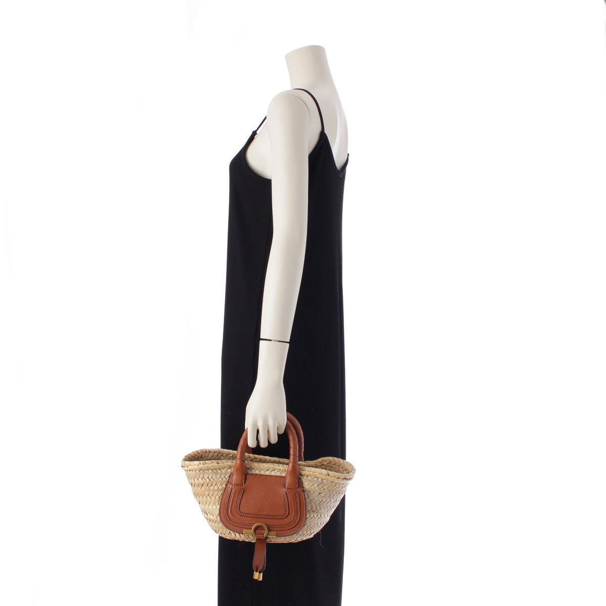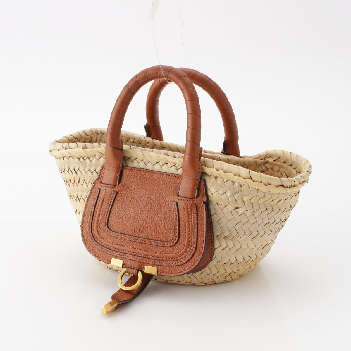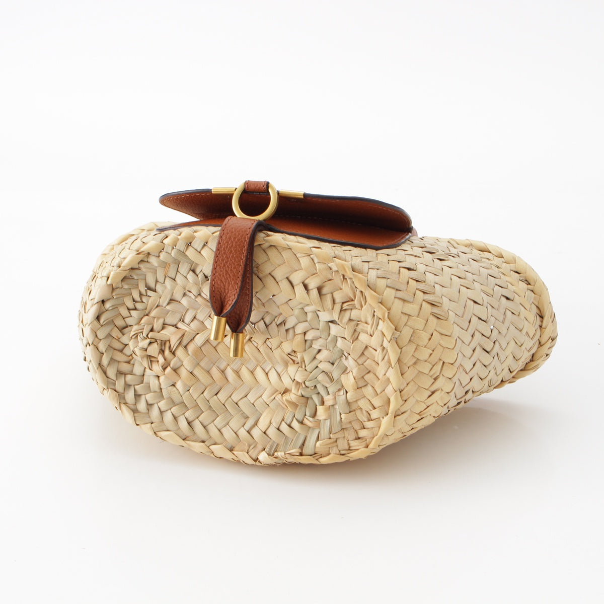 Chloe Mercy Raffia leather Straw Bucket Handbag Basket bag Tan Natural Brown Gold Metal