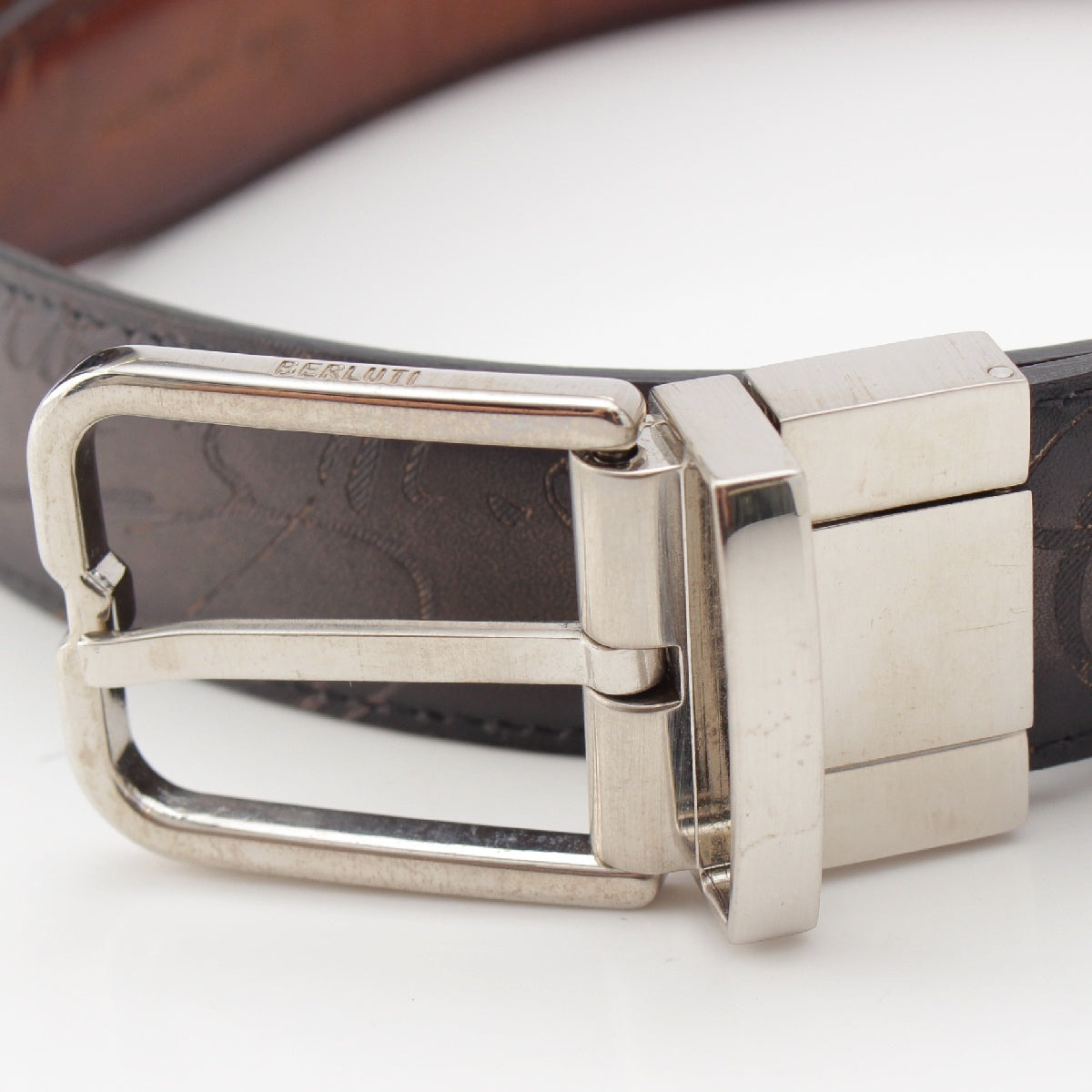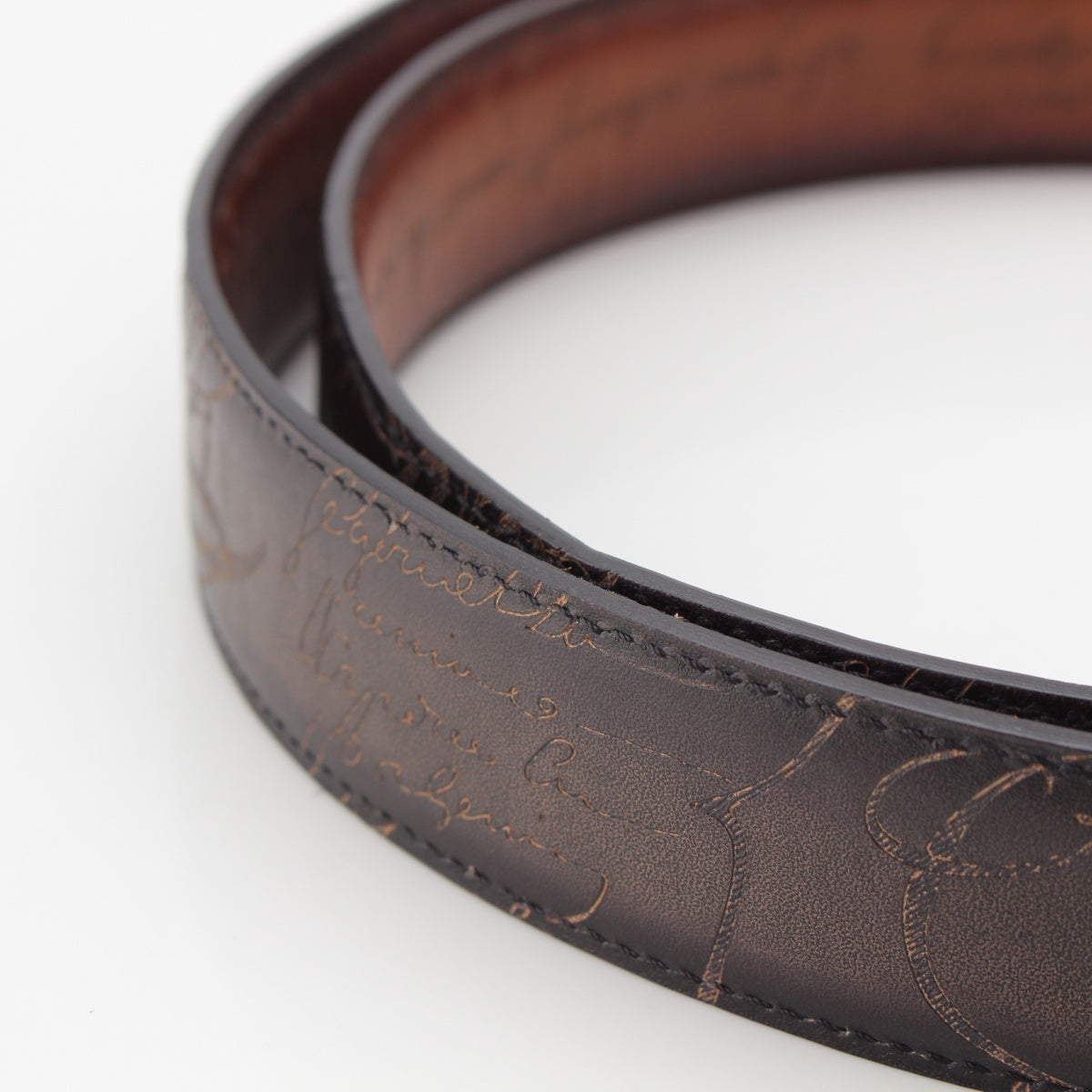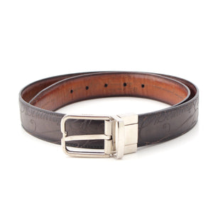 Berluti Essence Scritto Calligraphy leather reversible belt C0055 Black brown