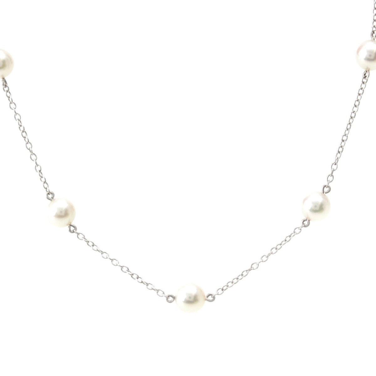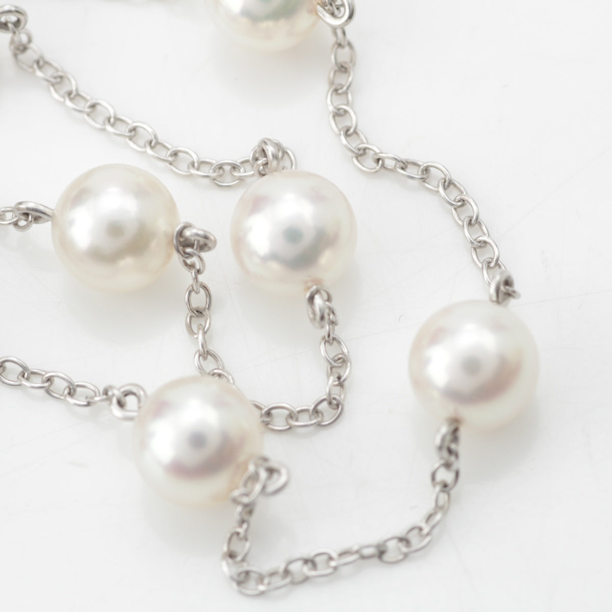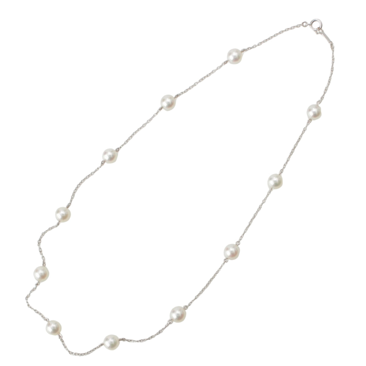 MIKIMOTO station 11P Pearl Chain Necklace Pendant Jewelry 0.2" K18 750WG White gold 5.6g