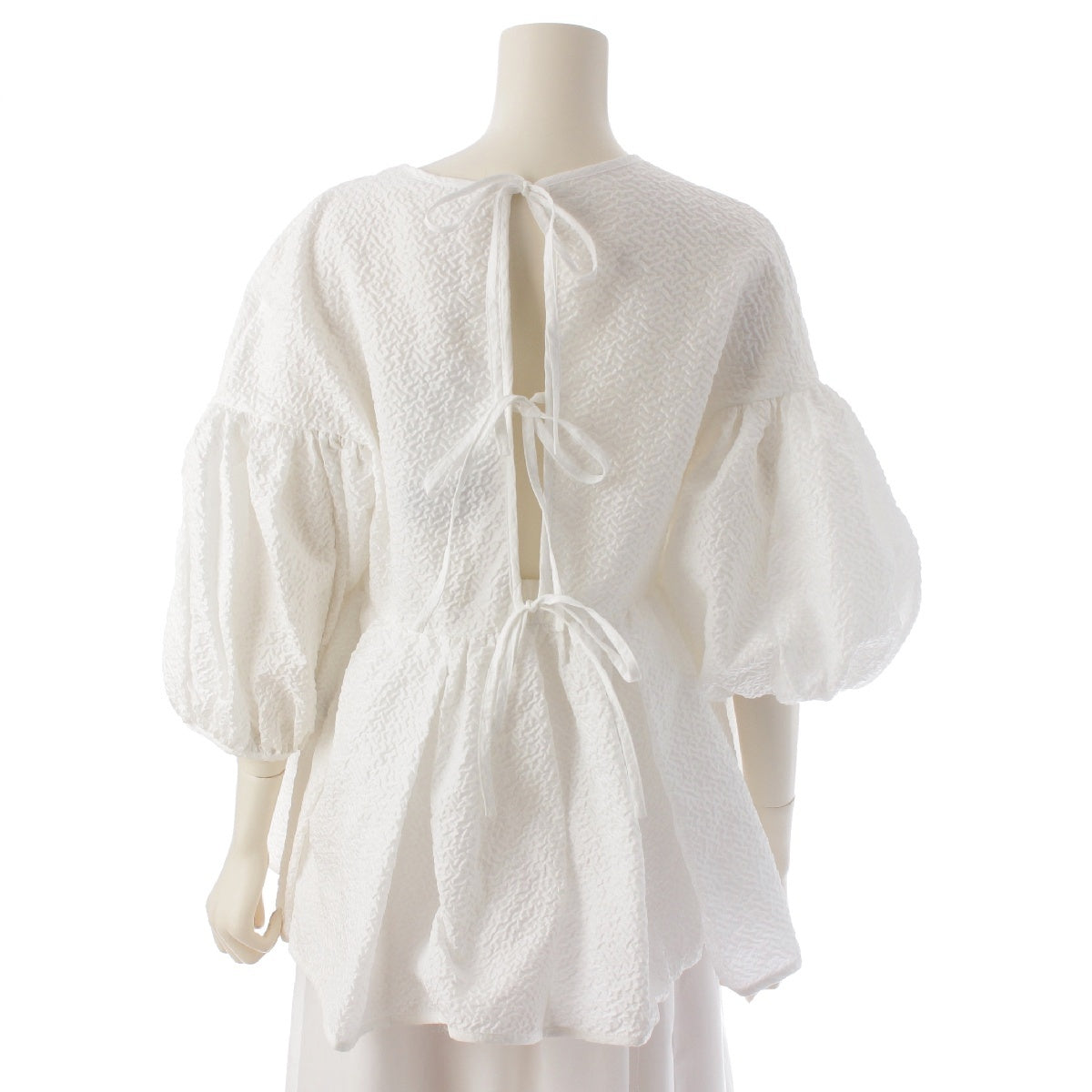Cecilie Bahnsen JERRY TOP Peplum Back Ribbon Short Sleeve blouse tops white UK12 US8