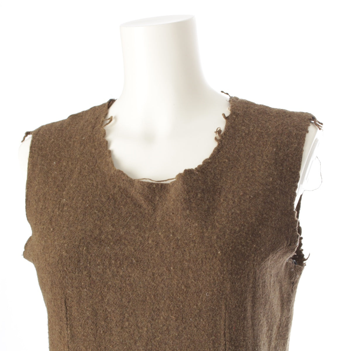 COMME des GARCONS AD1994 wool Vintage, shrunken, rag-look, sleeveless, long one piece dress GO-04007S Khaki Brown S