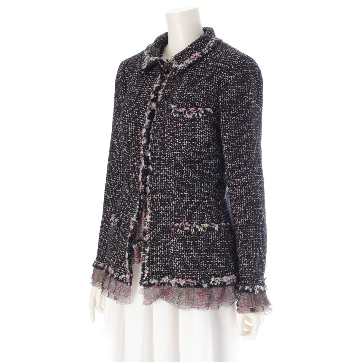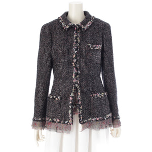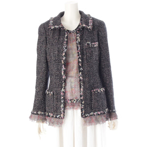 CHANEL Silk Wool Cotton Tweed Jackets Tops ensemble setup P25300 Pink x Black 40