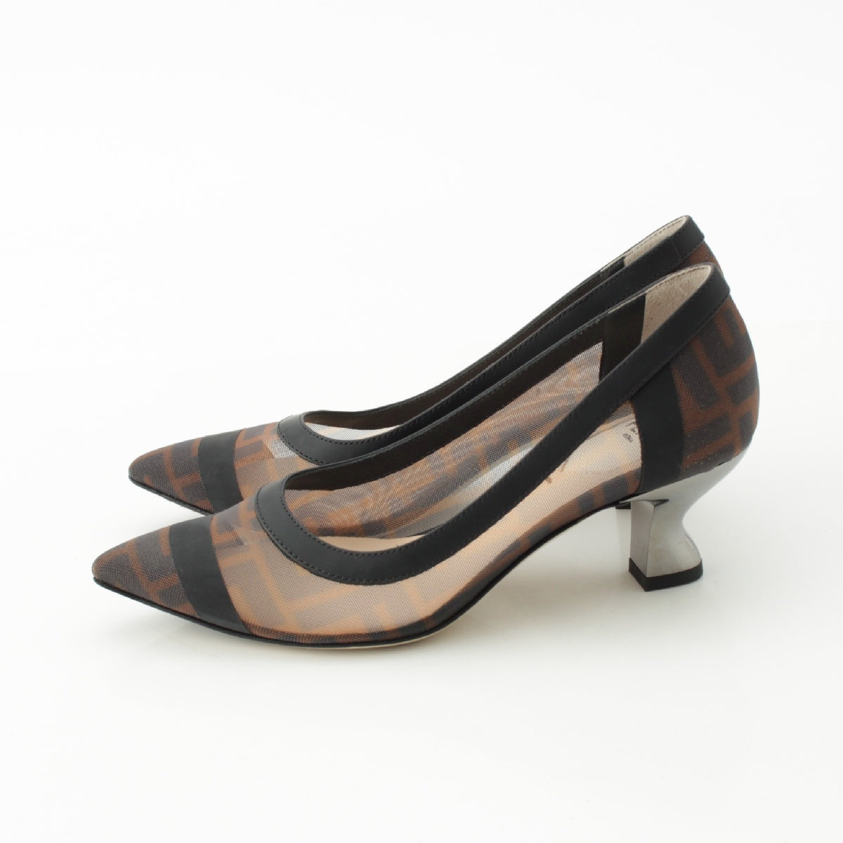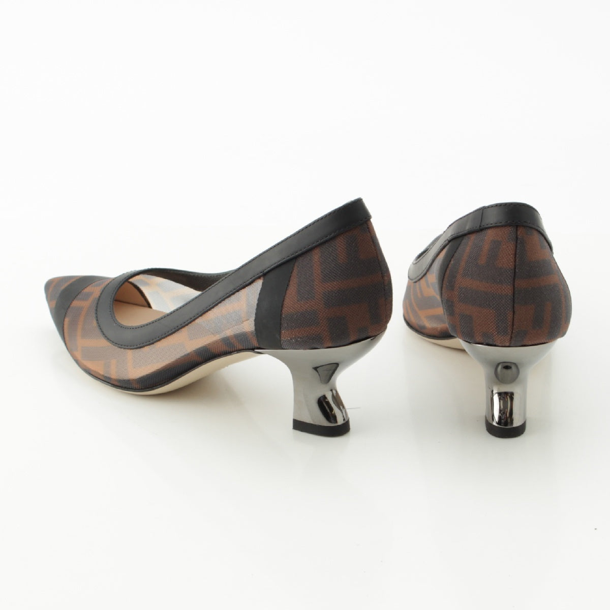 FENDI mesh FF pattern Zucca mesh heels pumps 816805AK11F0VAV Brown 34D