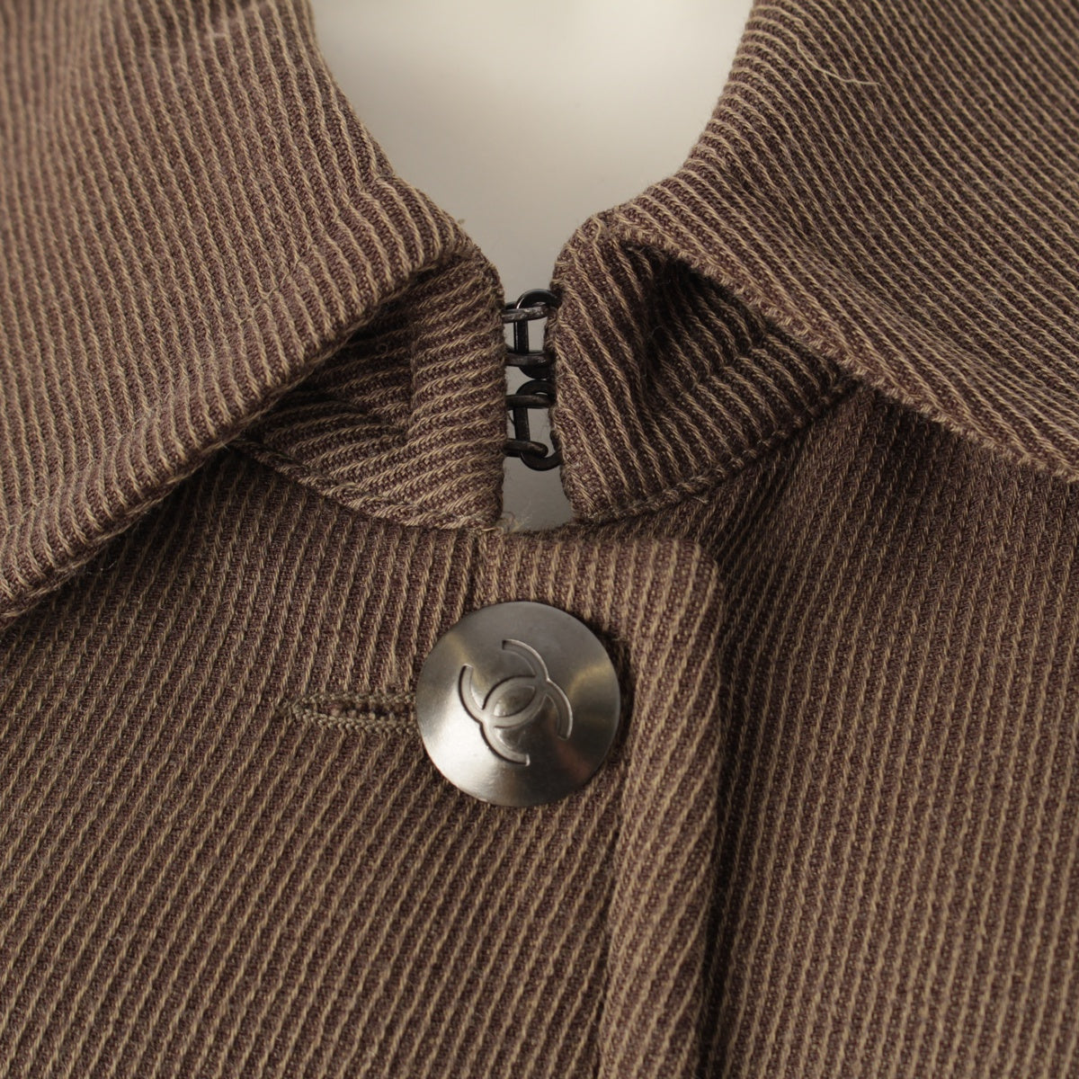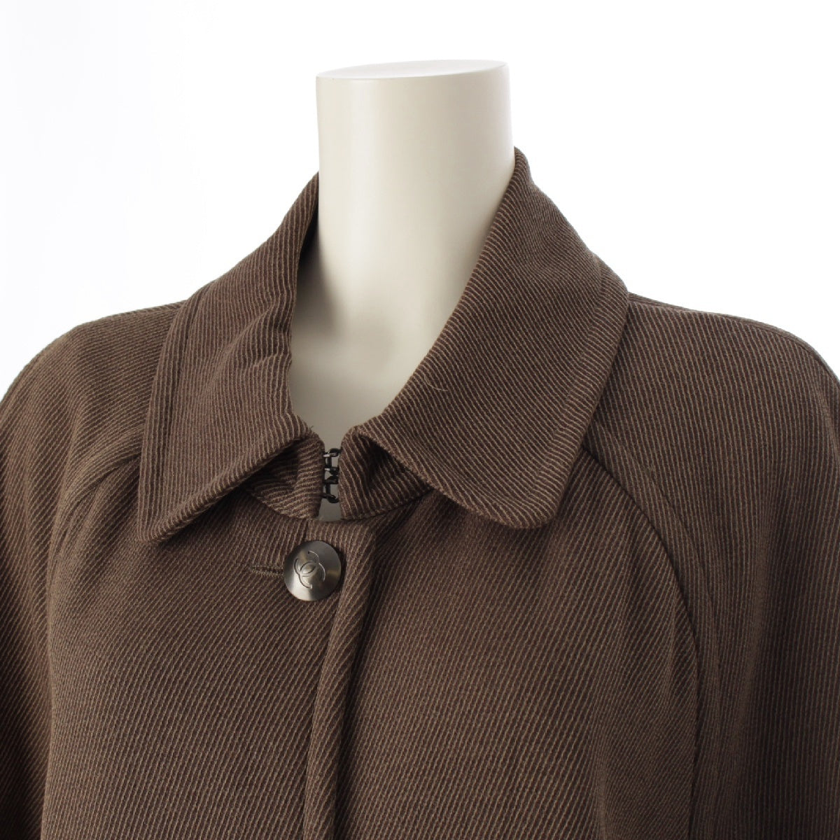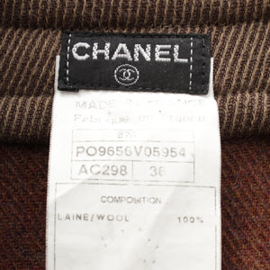 CHANEL 97A wool Vintage COCO Button Stainless collar coat outer PO9656 Brown 36