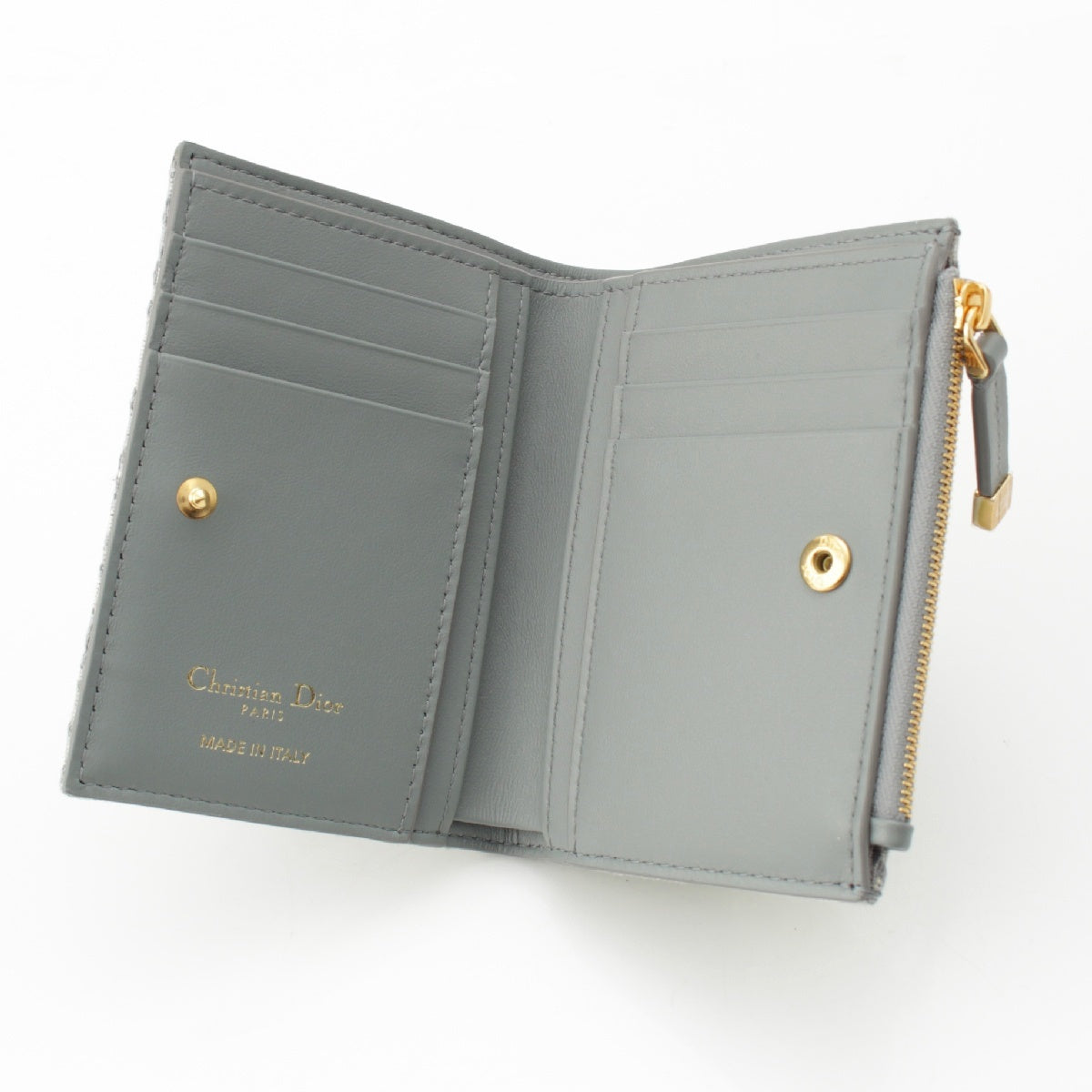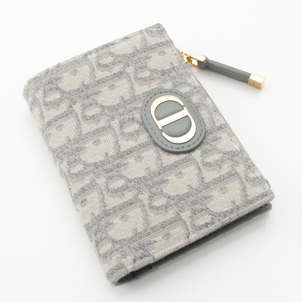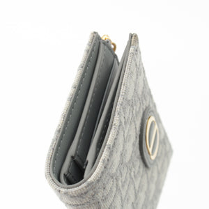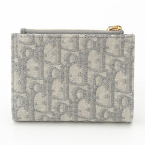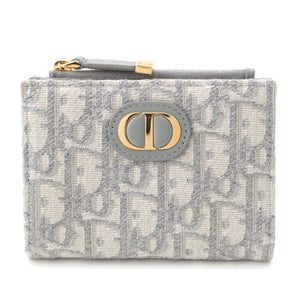 Dior Montaigne 30 Dahlia Jacquard leather Oblique Trotter CD logo Bifold Wallet Compact wallet Blue gray