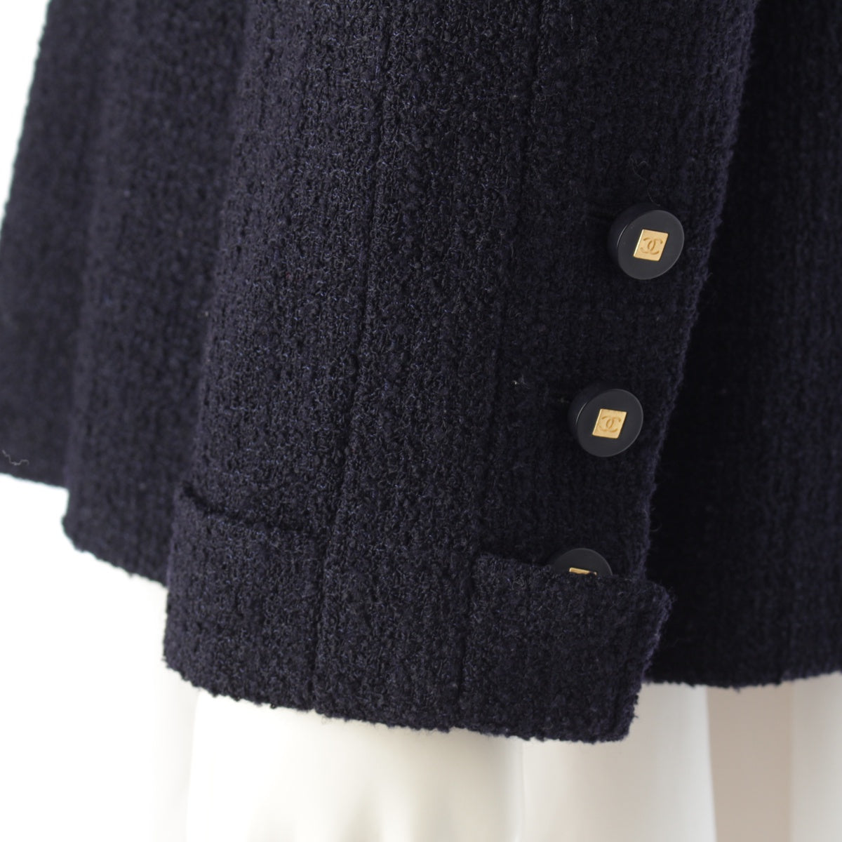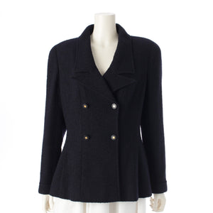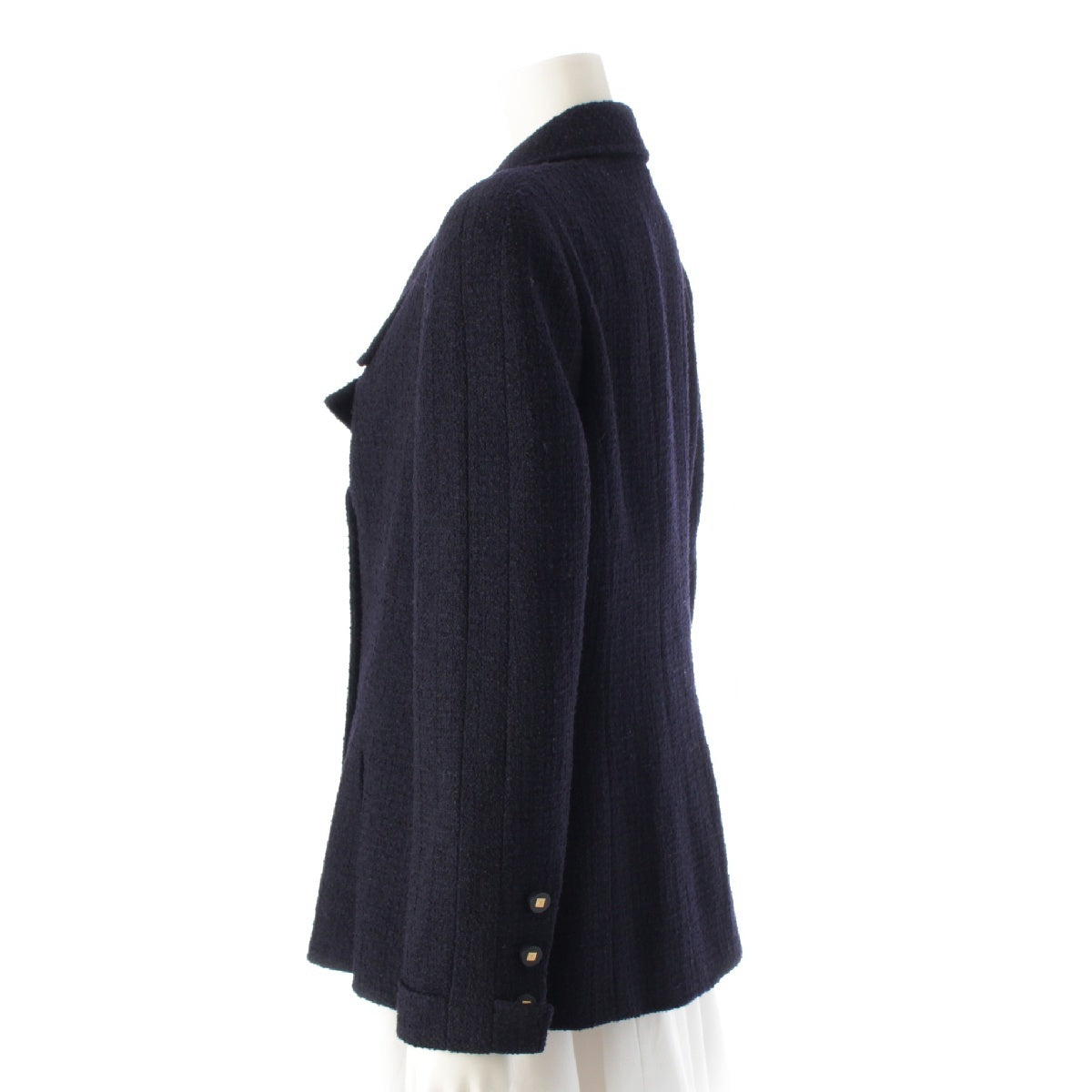 CHANEL 96A Wool x nylon COCO Button Double tailored jacket P08237 Navy 46