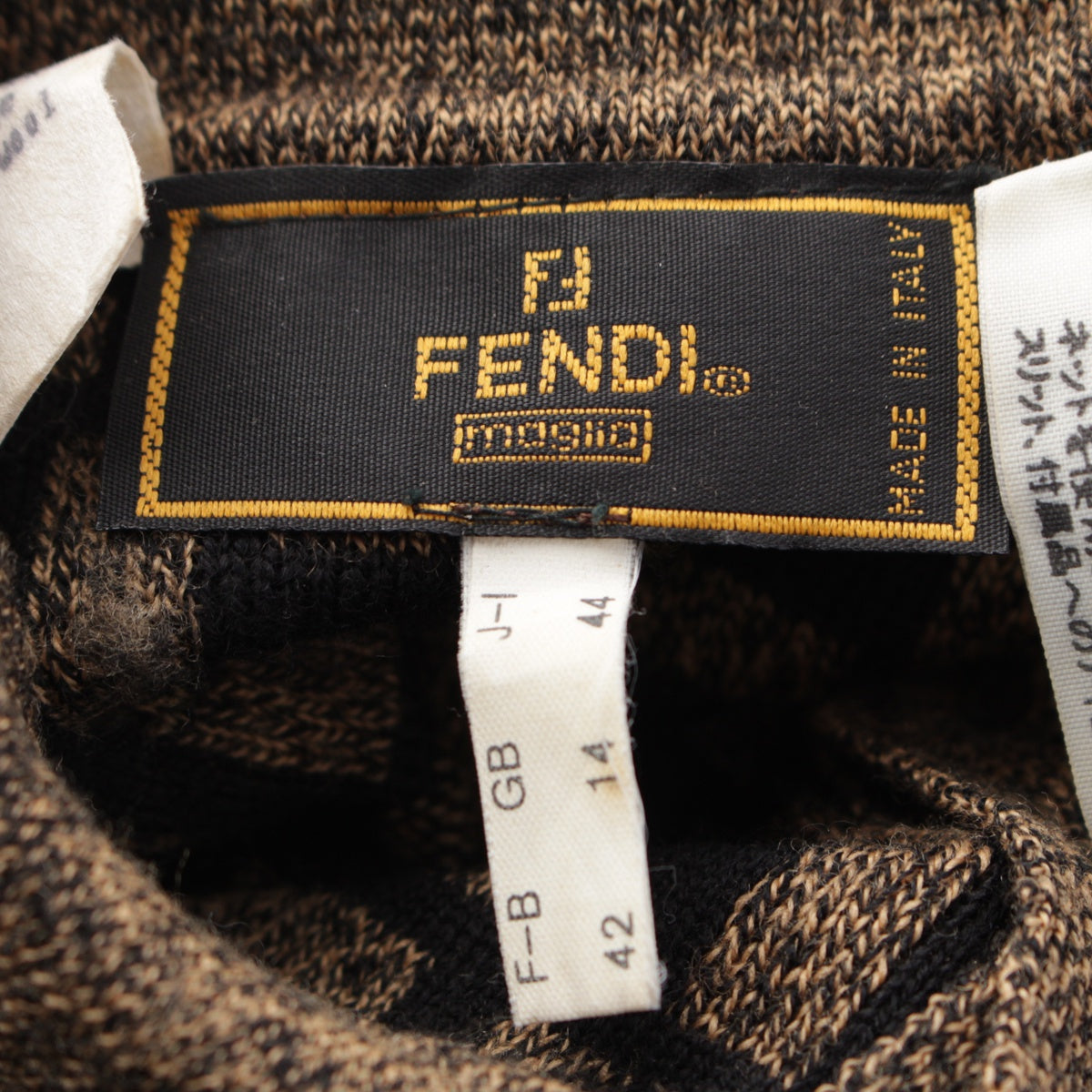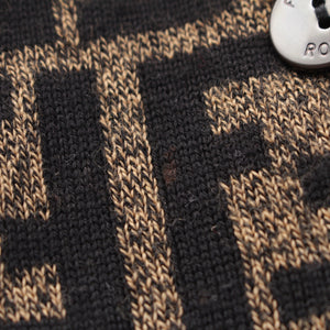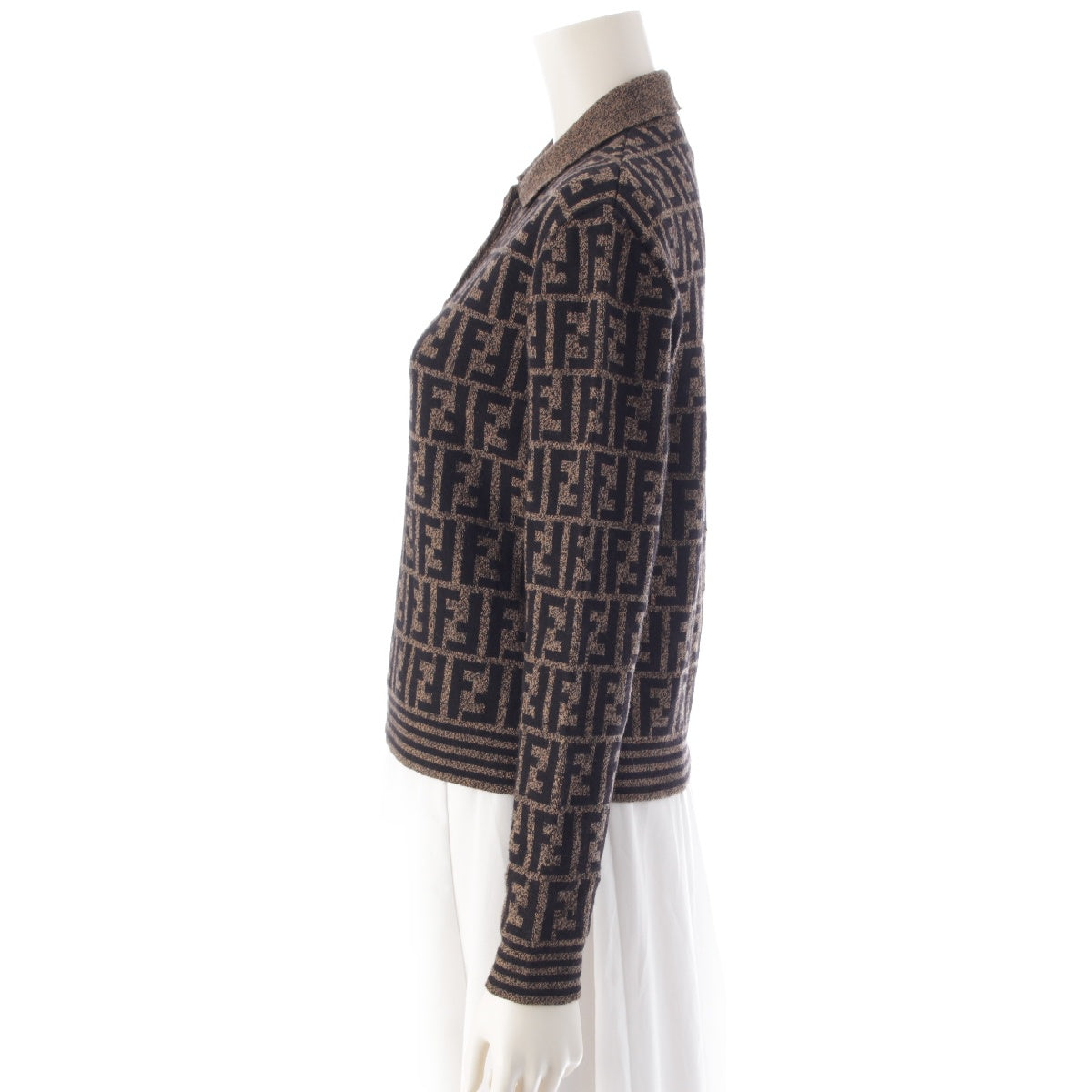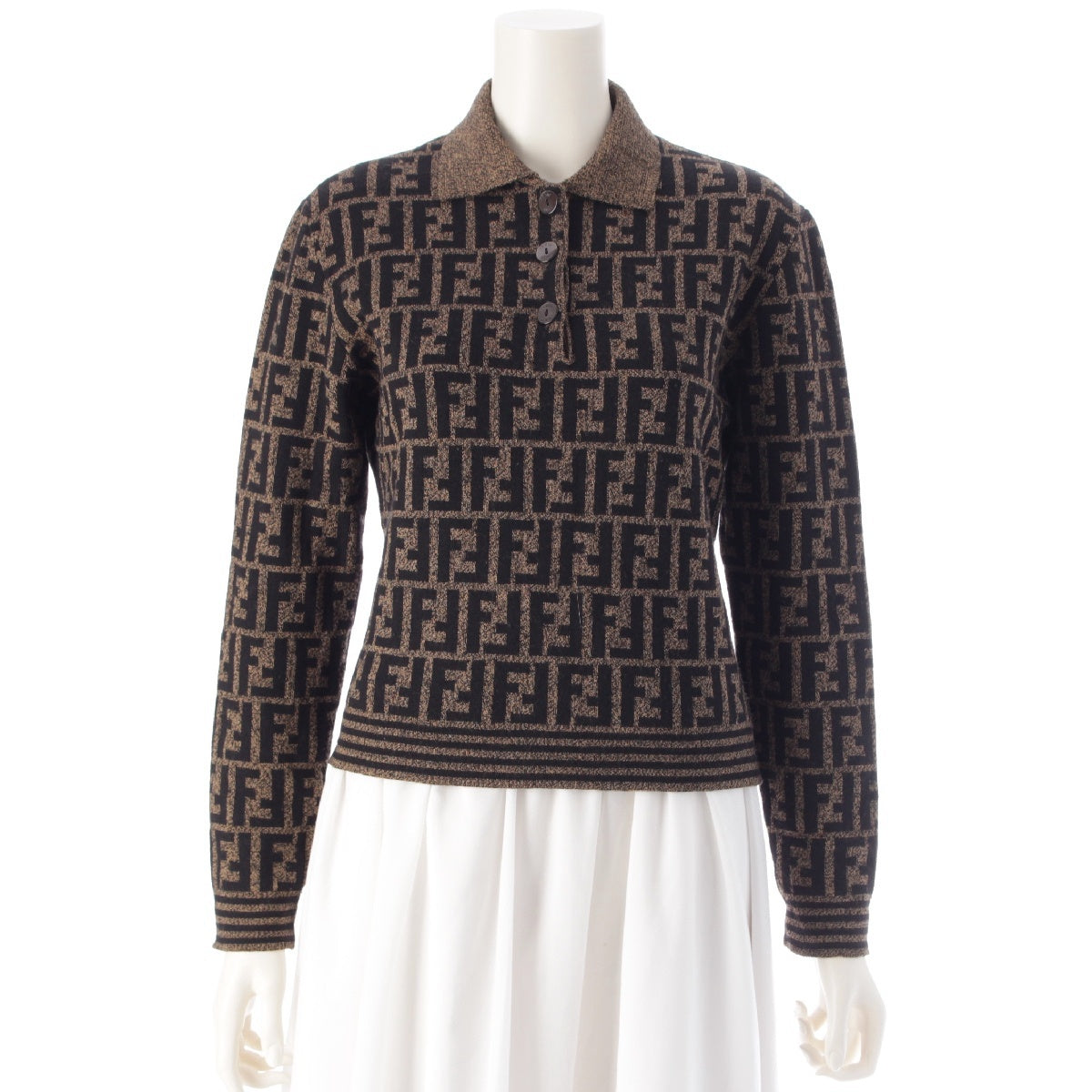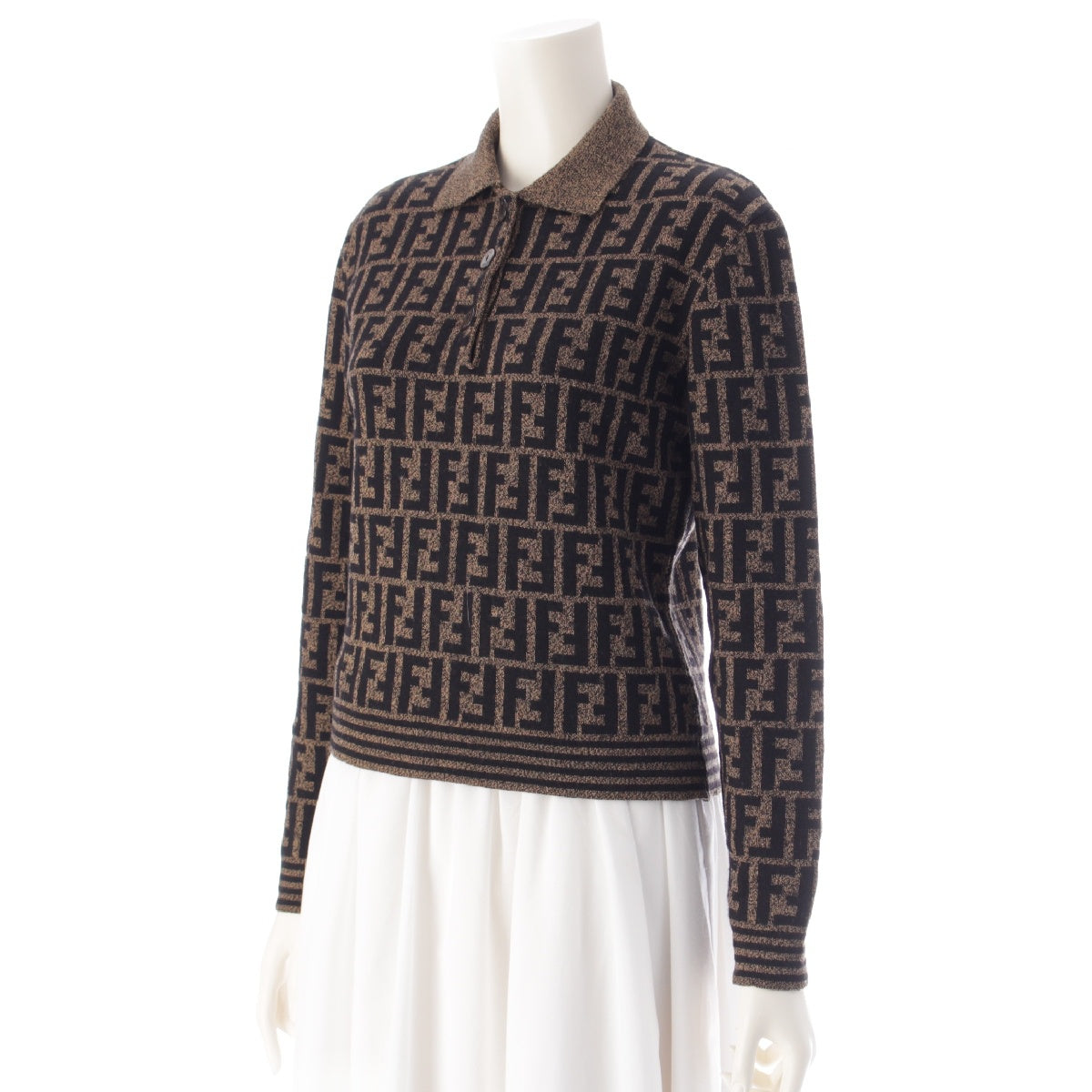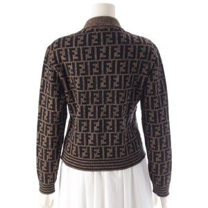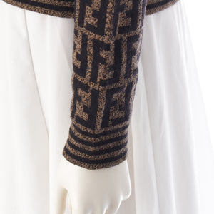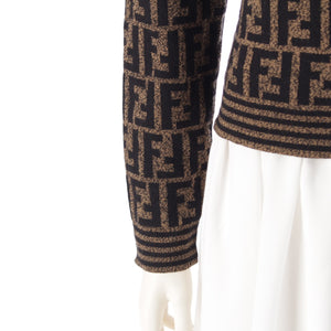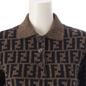 FENDI Merino wool Zucca print long sleeve cropped knit Polo shirt Brown black 42