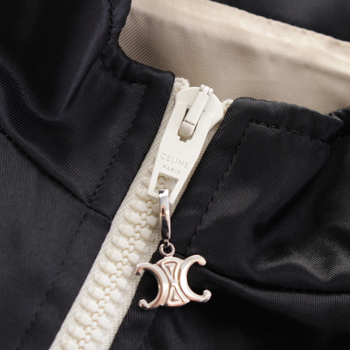 CELINE Satin Midosuji Store Exclusive Logo Triomphe Charm Zip Truck Jacket 2W98A048S black 40