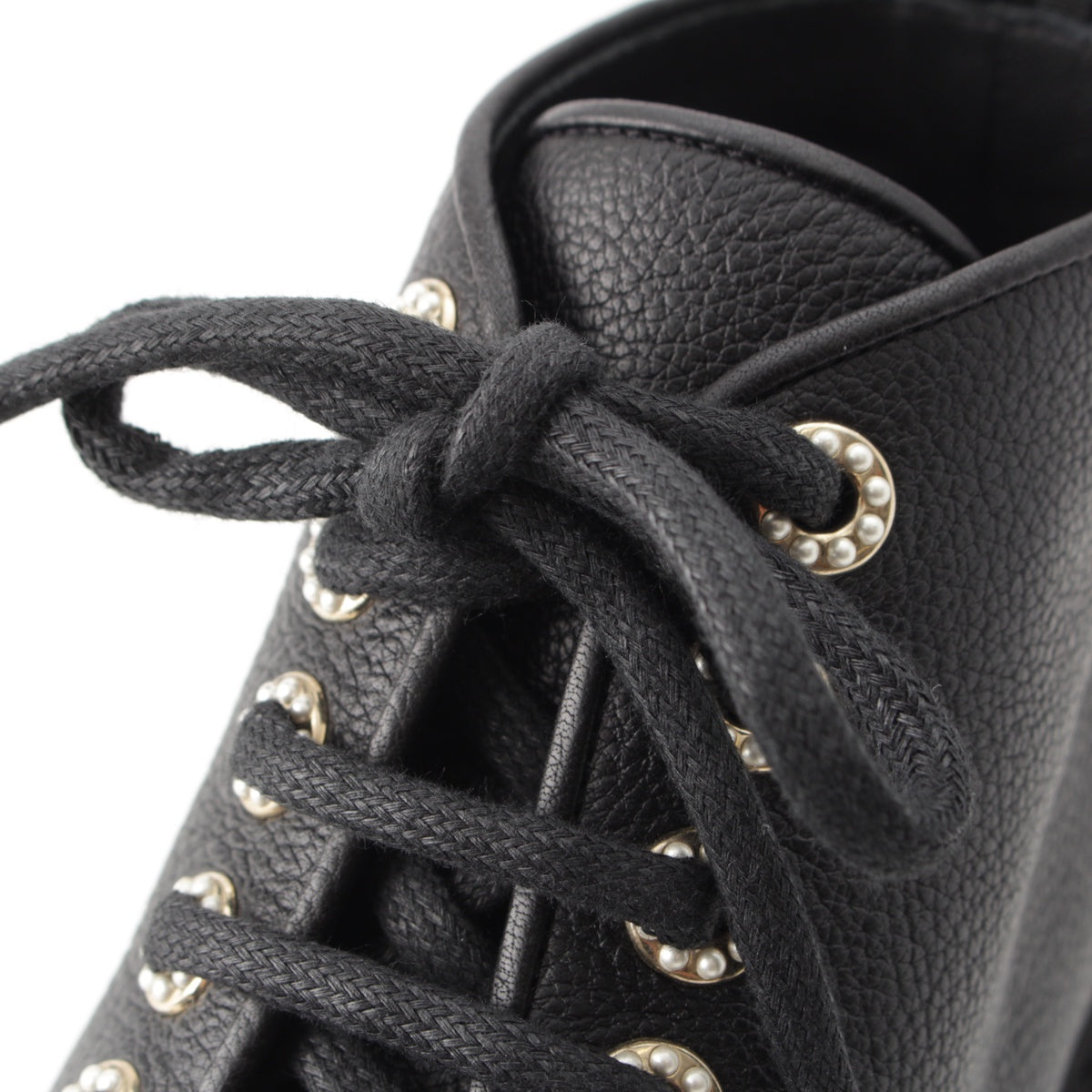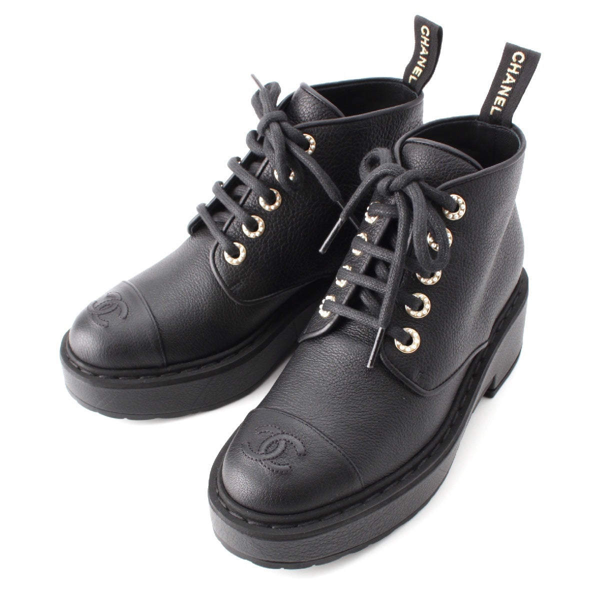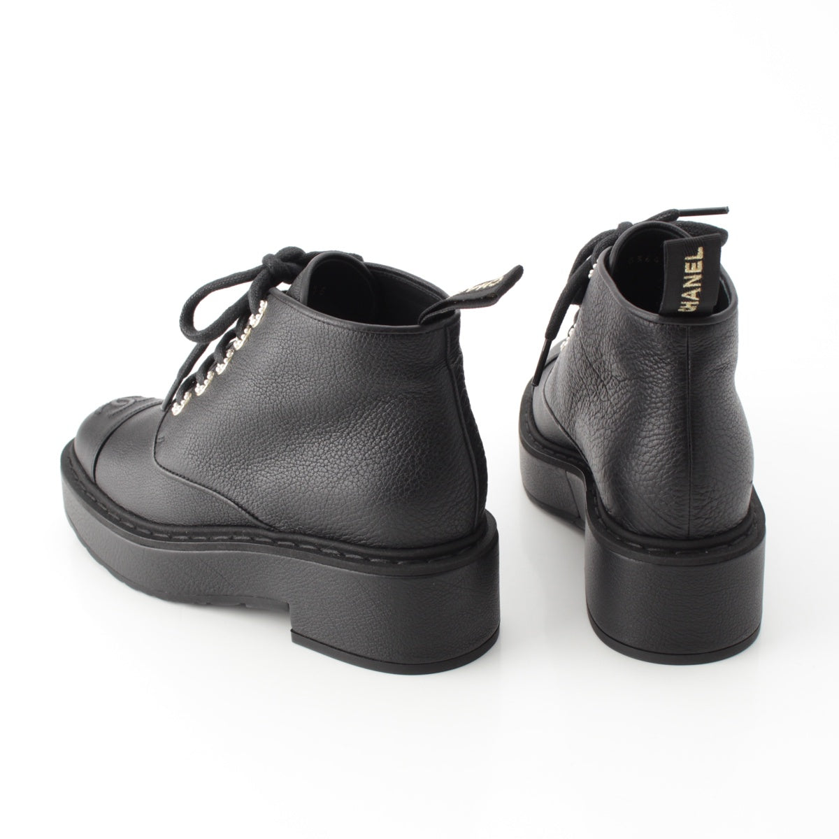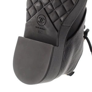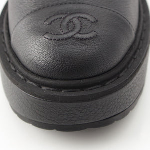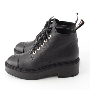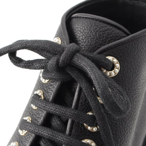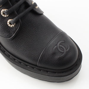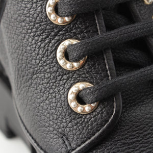 CHANEL leather COCO Mark Logo Pearl Lace-up boots shoes G36416 black 36