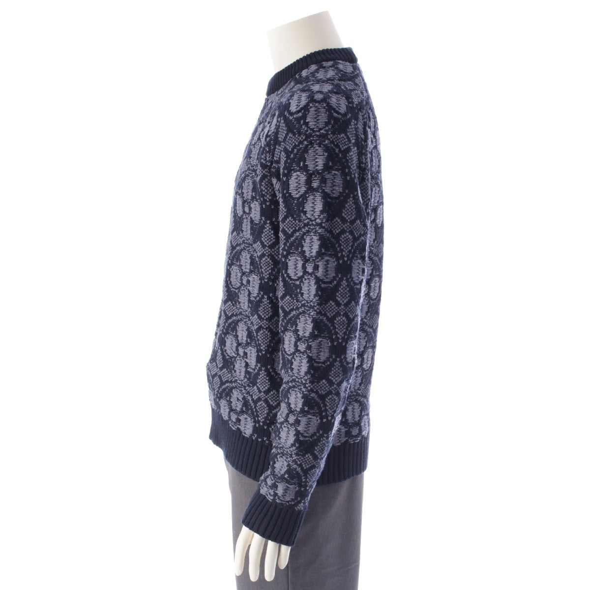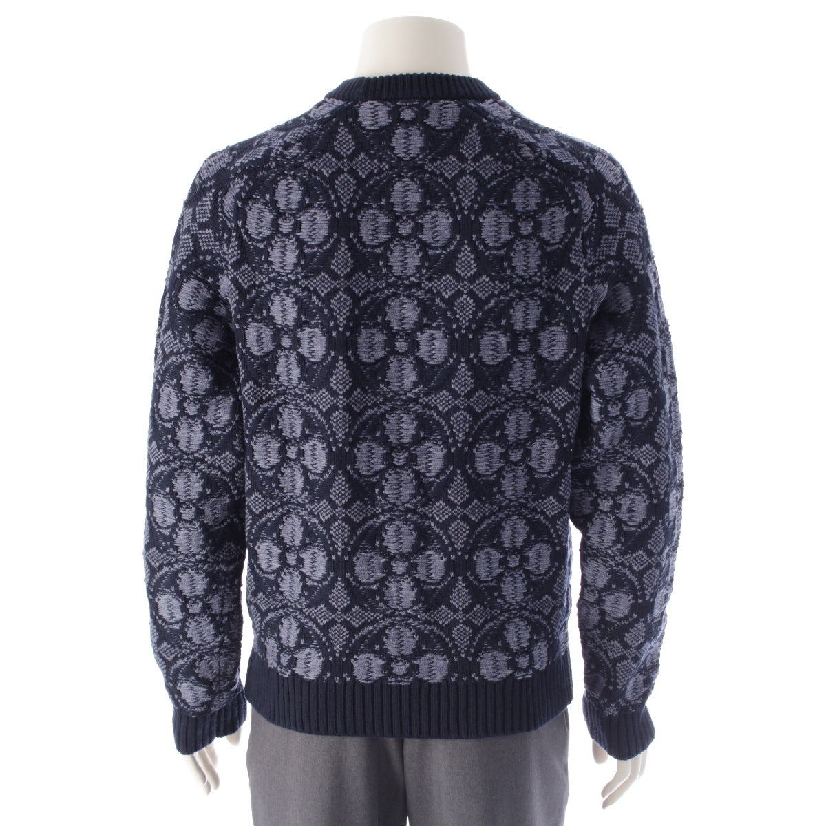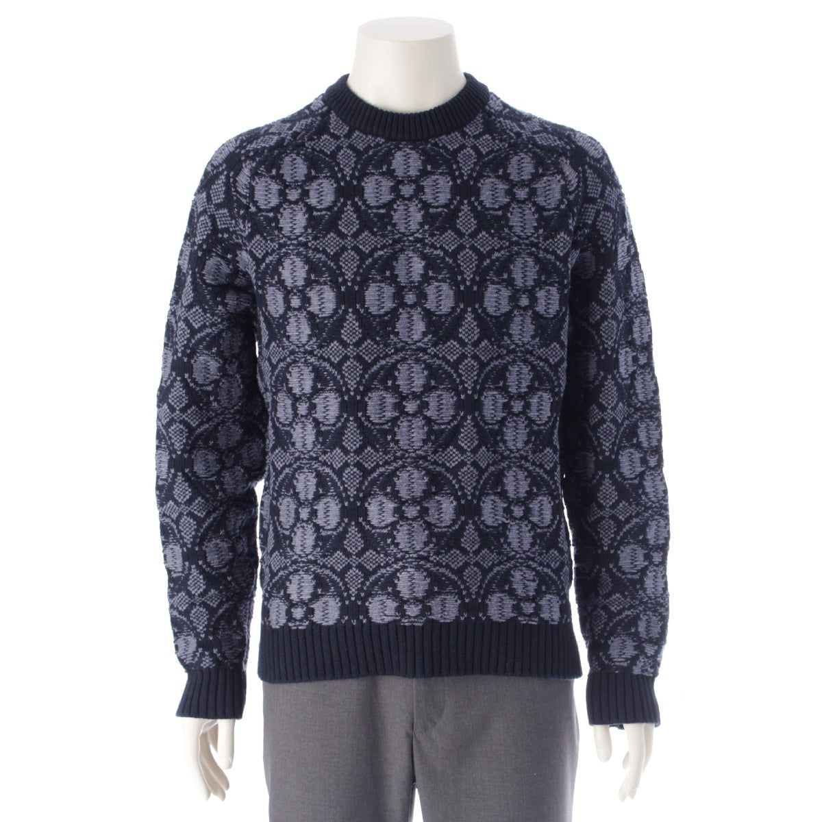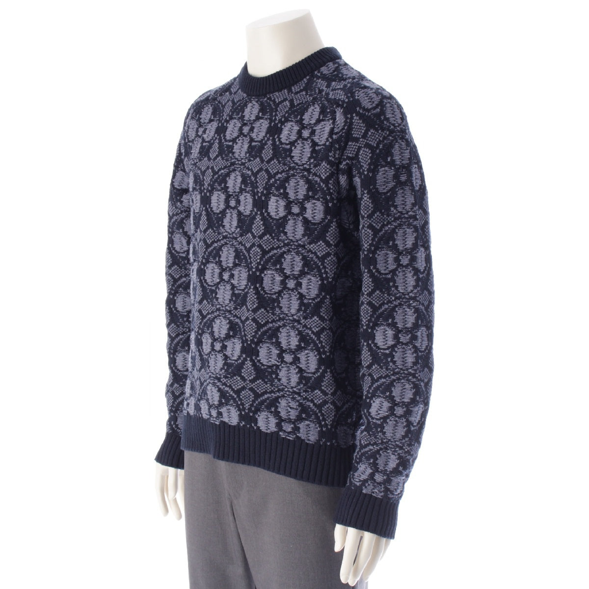 LOUIS VUITTON 20AW Nylon wool blend Monogram Flower All-over Print Thick Knit sweater Crew neck tops RM202 YGF HJN77W Navy S