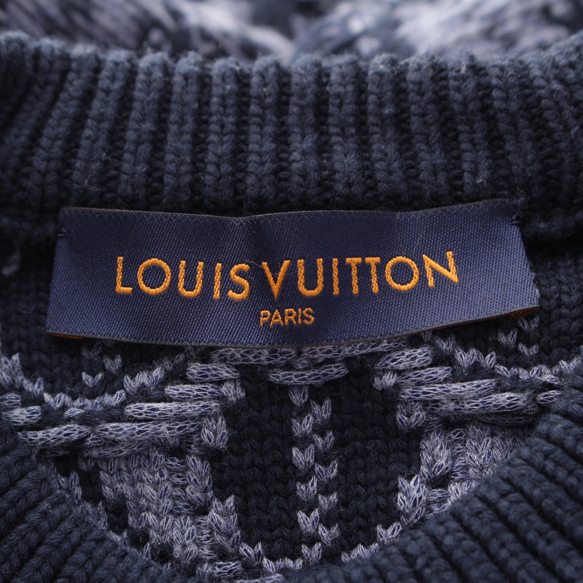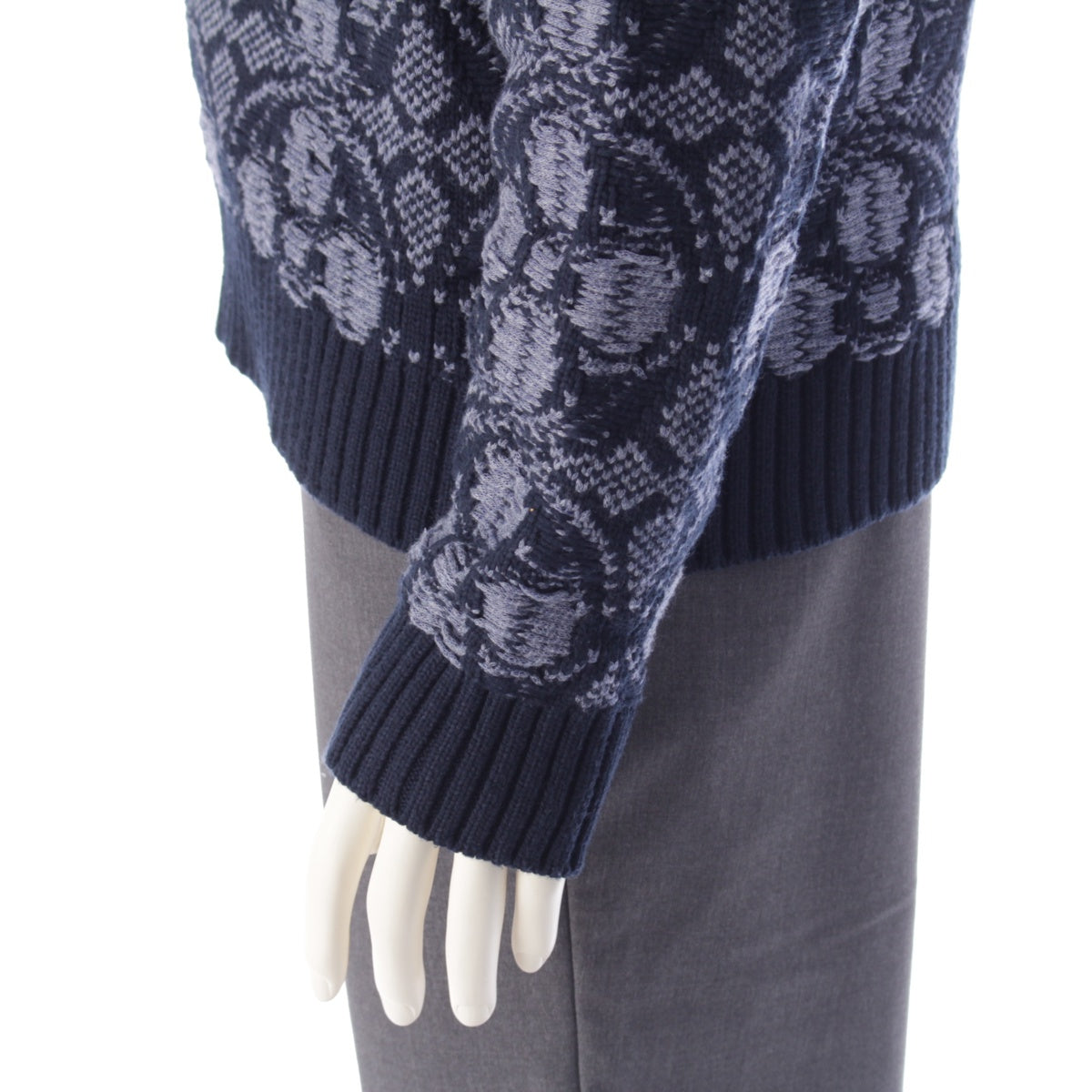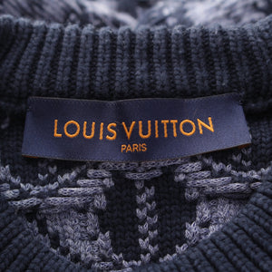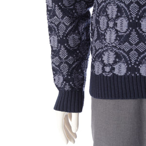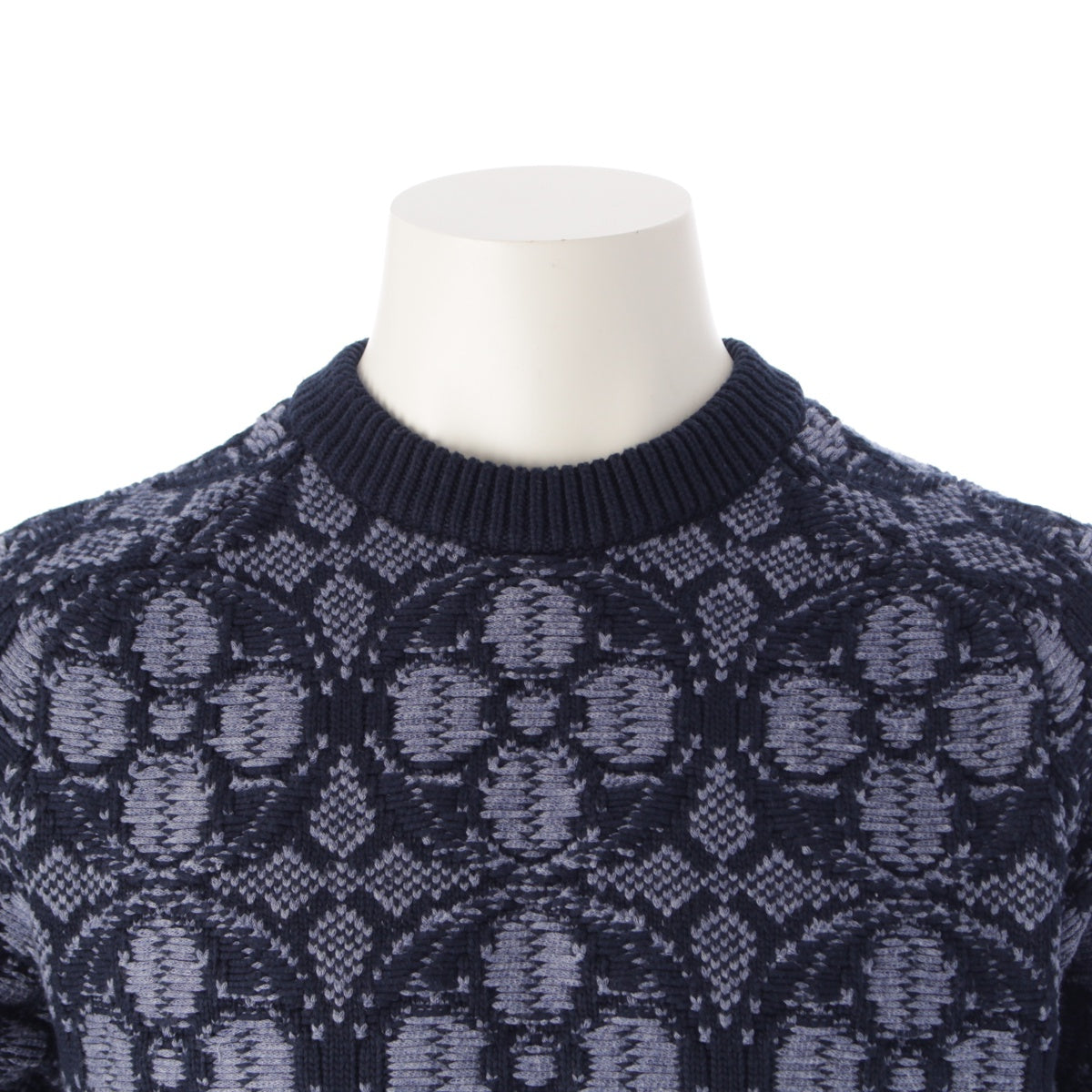 LOUIS VUITTON 20AW Nylon wool blend Monogram Flower All-over Print Thick Knit sweater Crew neck tops RM202 YGF HJN77W Navy S