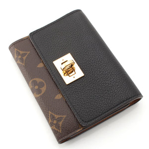 LOUIS VUITTON Monogram Portefeuille Victorine Canvas Leather Calf Leather Turn lock Tri-fold wallet Compact wallet M82640 Brown Black Gold Metal