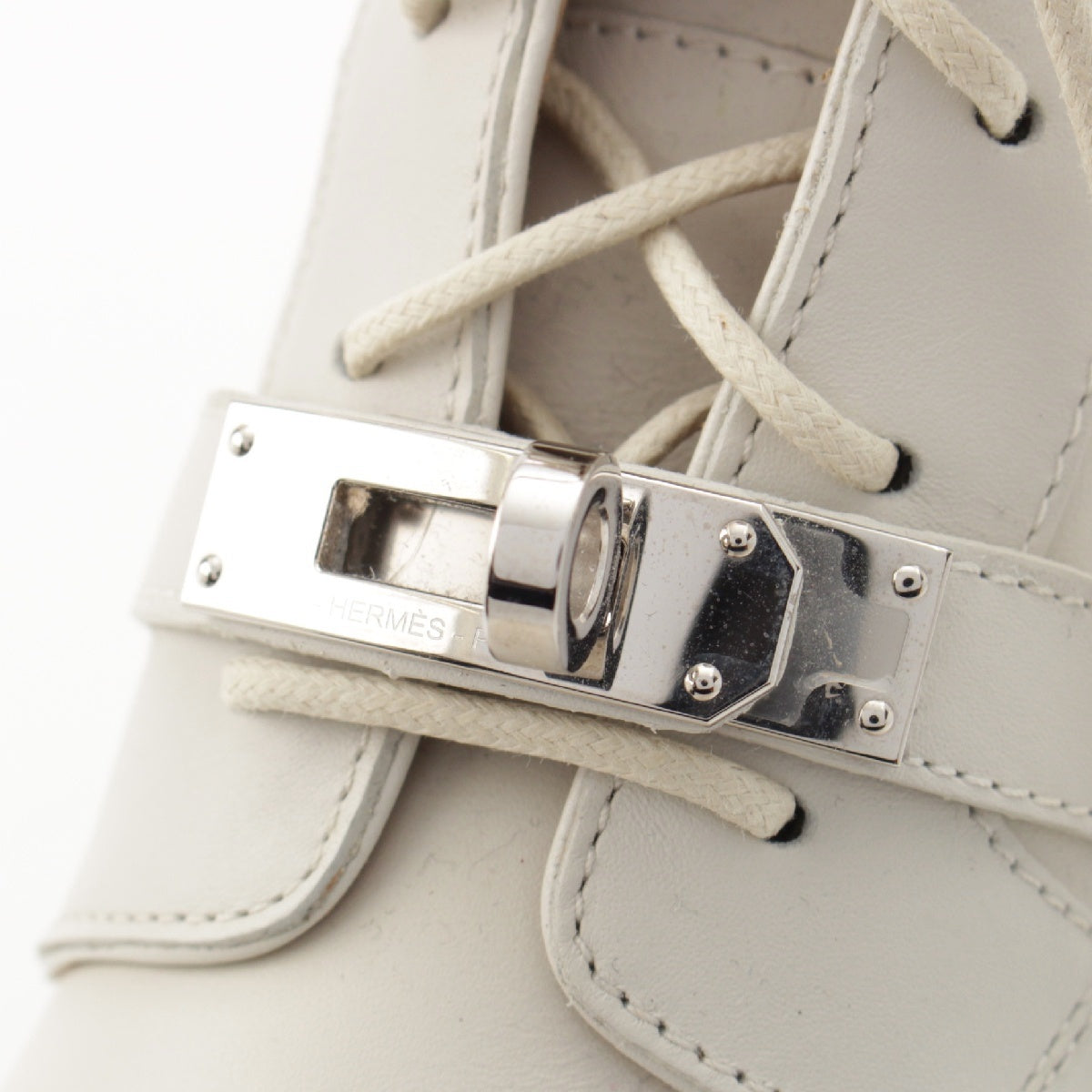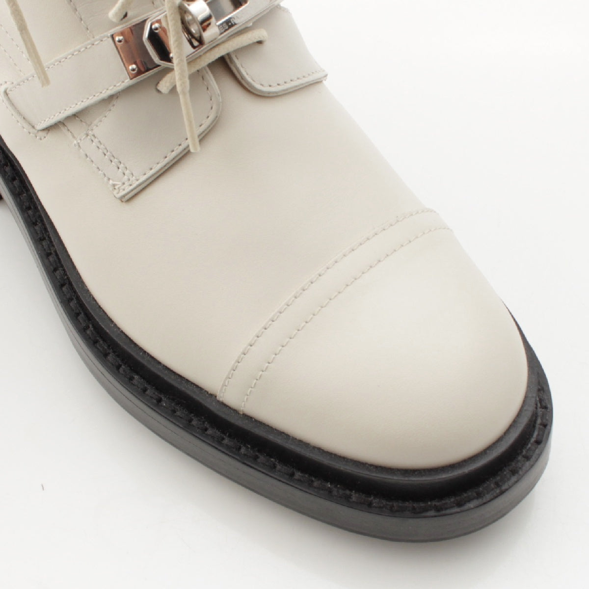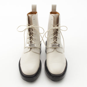 HERMES leather Funk Ankle Kelly Metal Lace-up boots shoes WS222069Z white 35 1/2