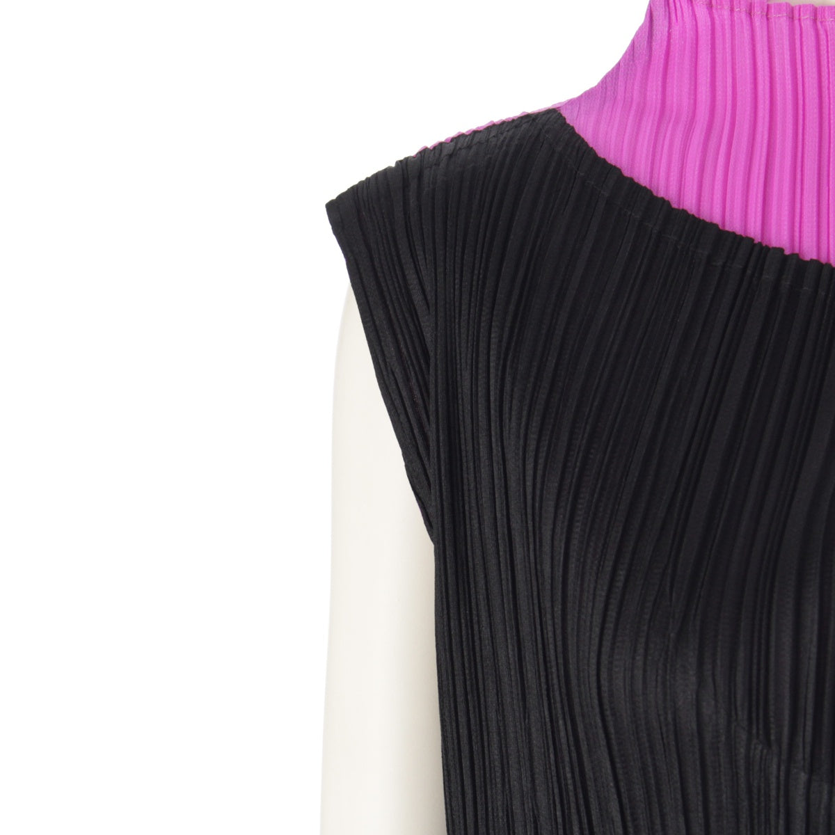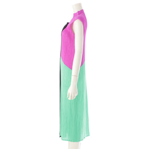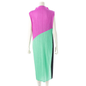 PLEATS PLEASE Sleeveless Bottleneck Block one piece dress PP11-JH153 Green Purple Black 3