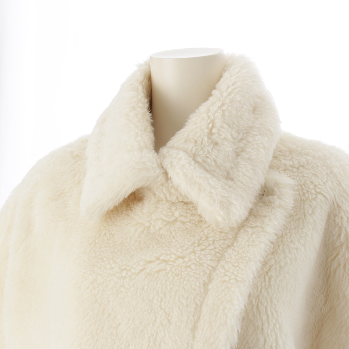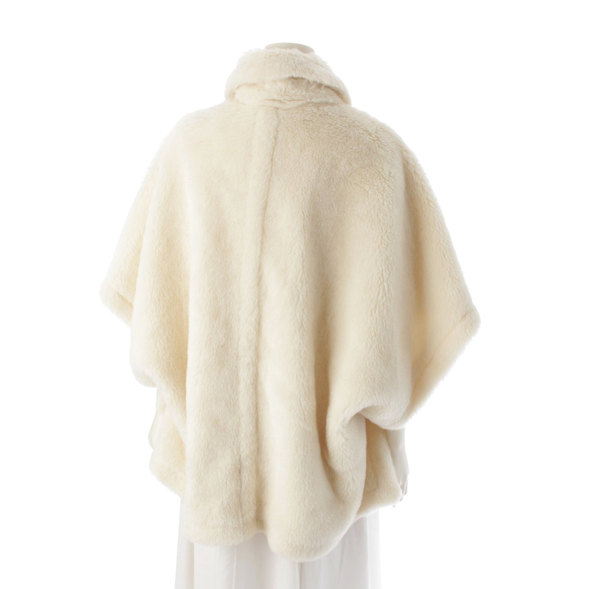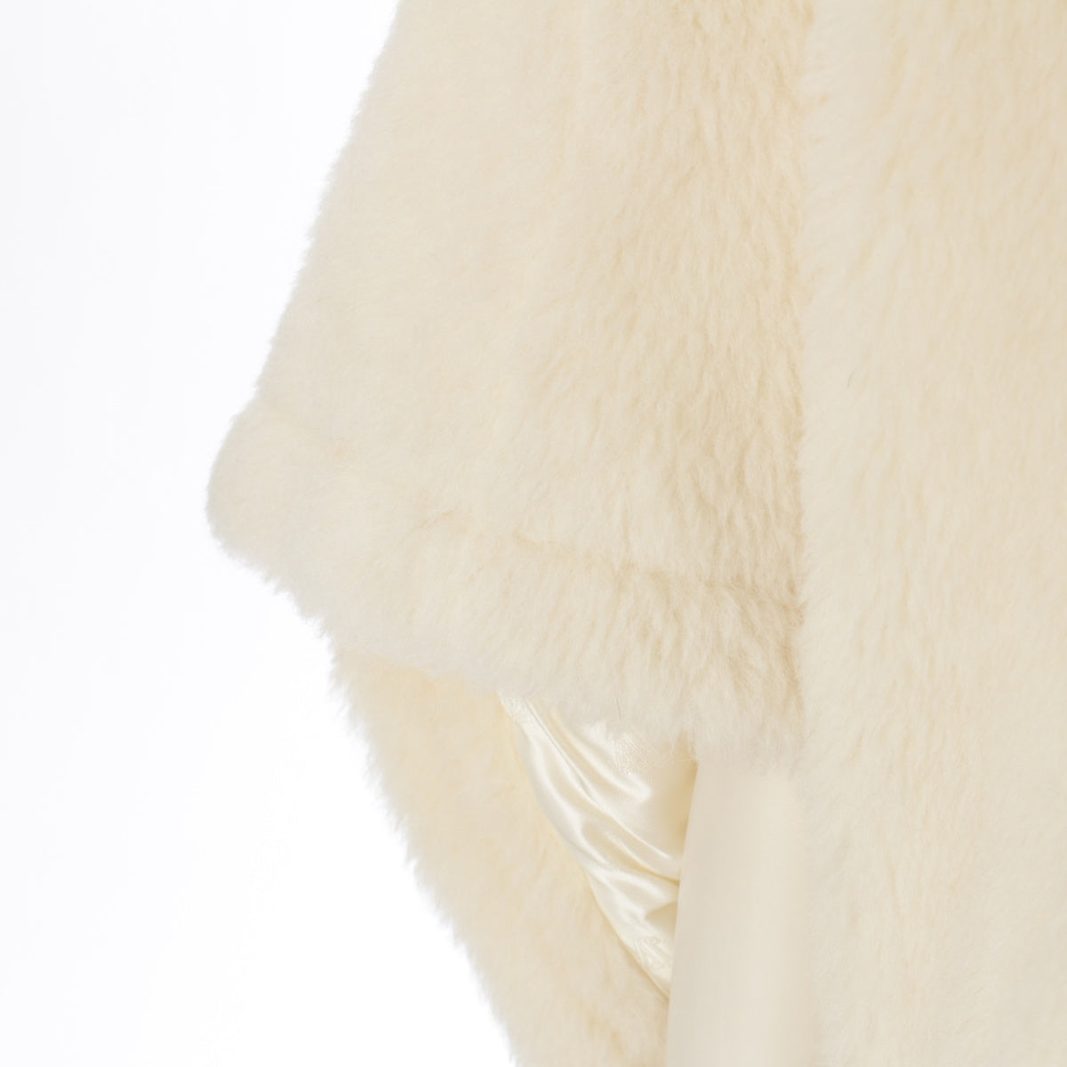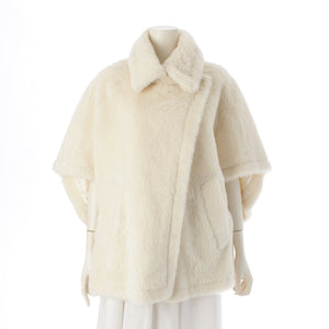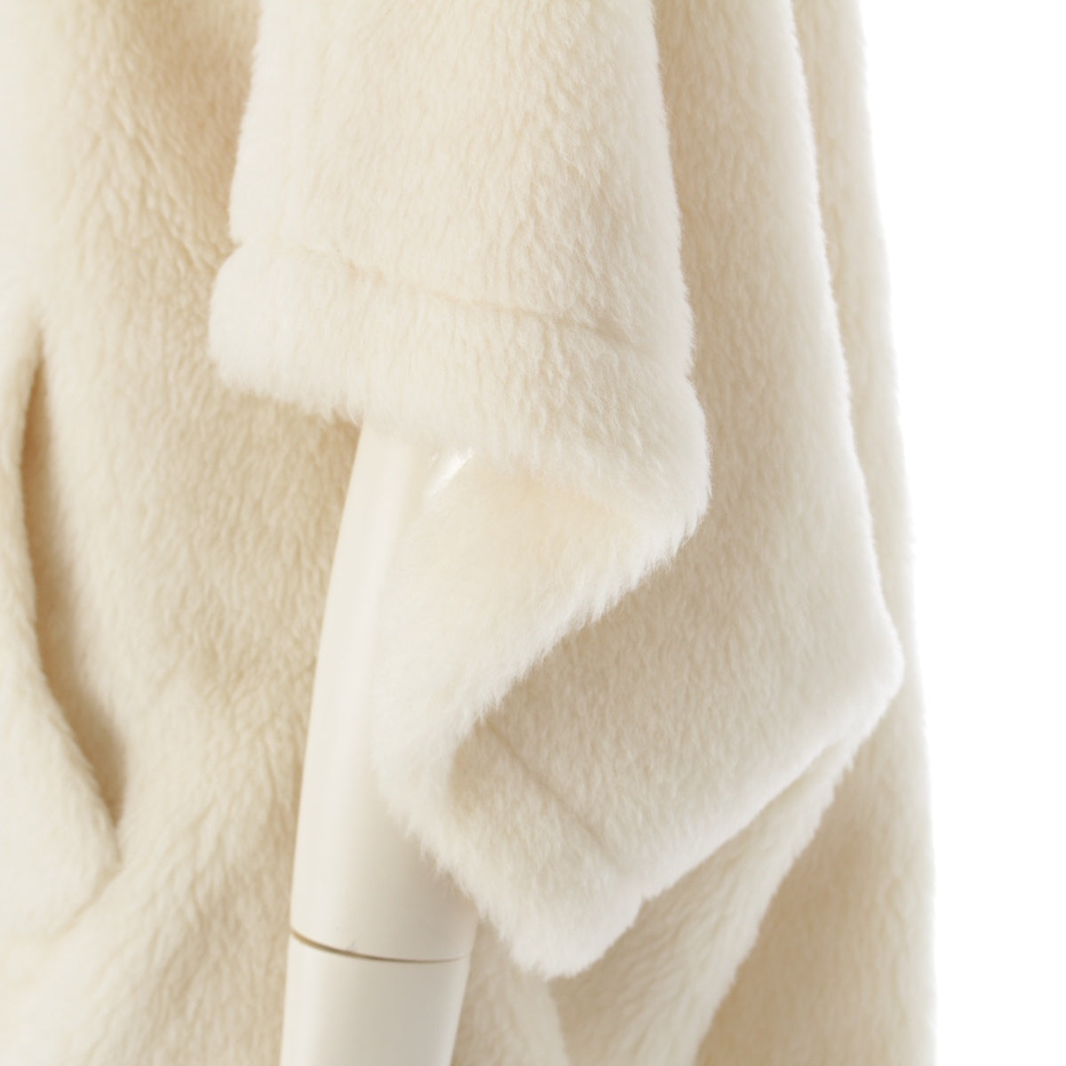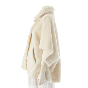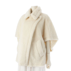 MAX MARA Teddy Bear Half Sleeve Alpaca Wool Silk Monogram M with Crystal Brooch poncho Short coat white
