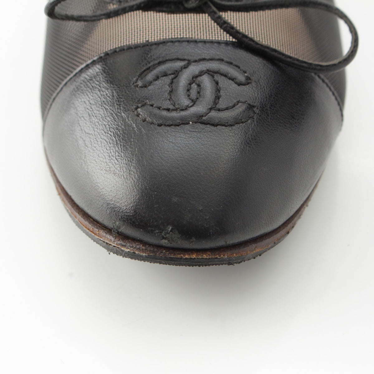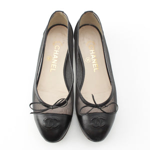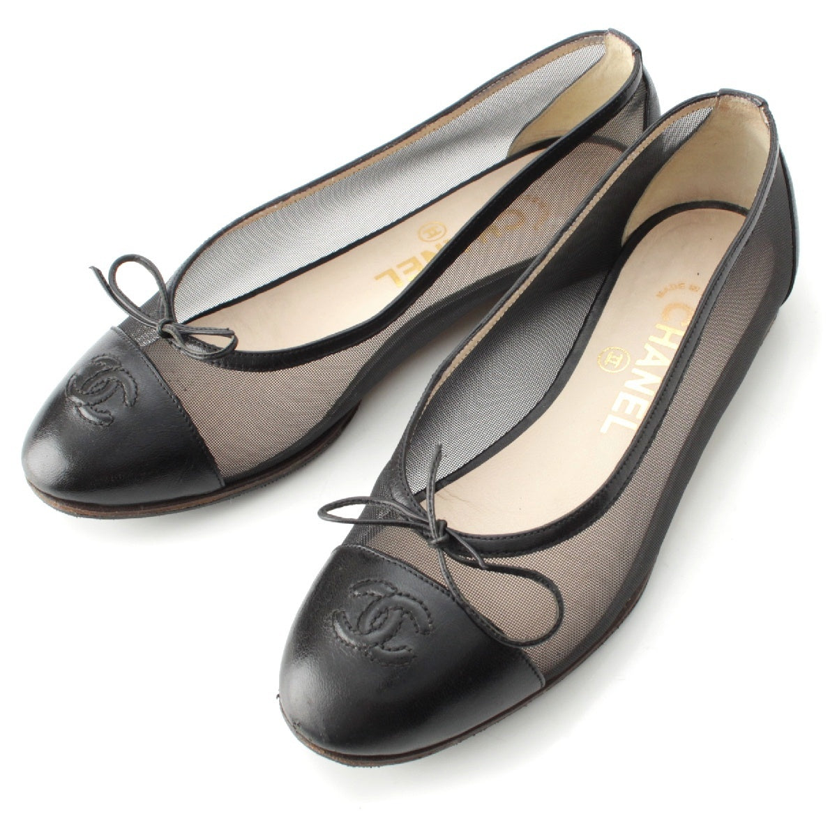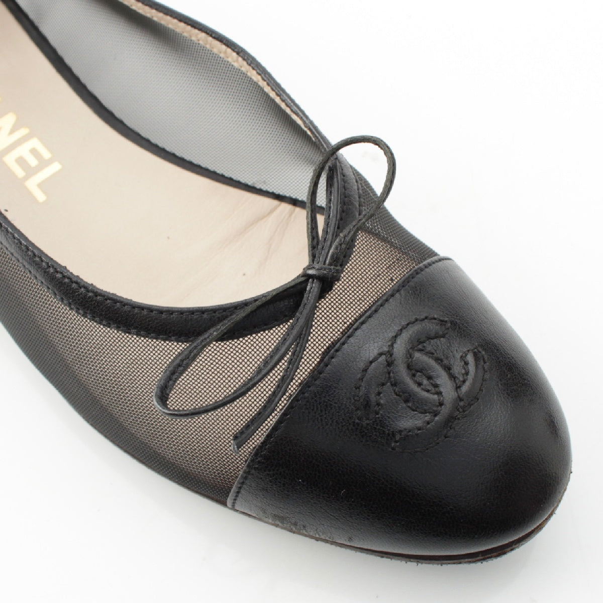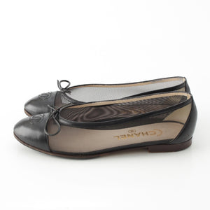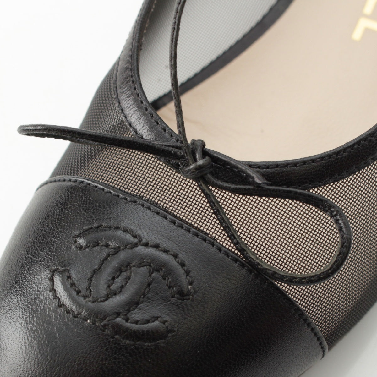 CHANEL ballerina leather COCO Mark Mesh Flats pumps shoes G02819 black 36 1/2