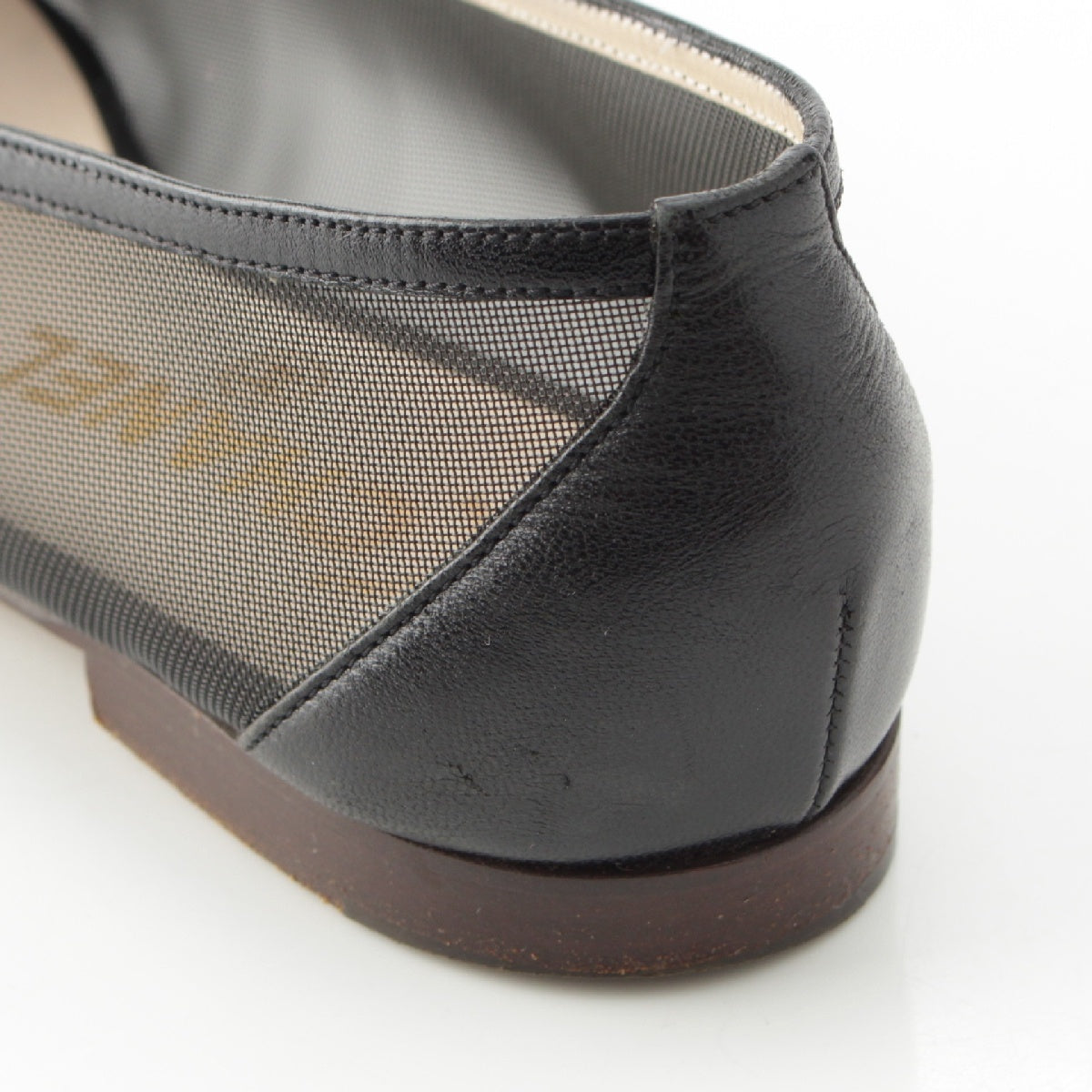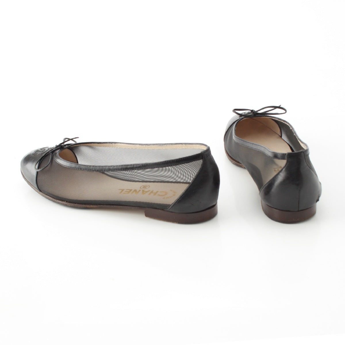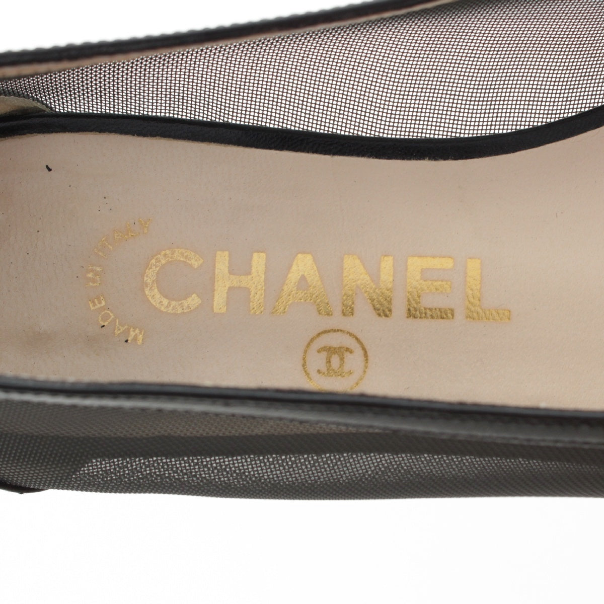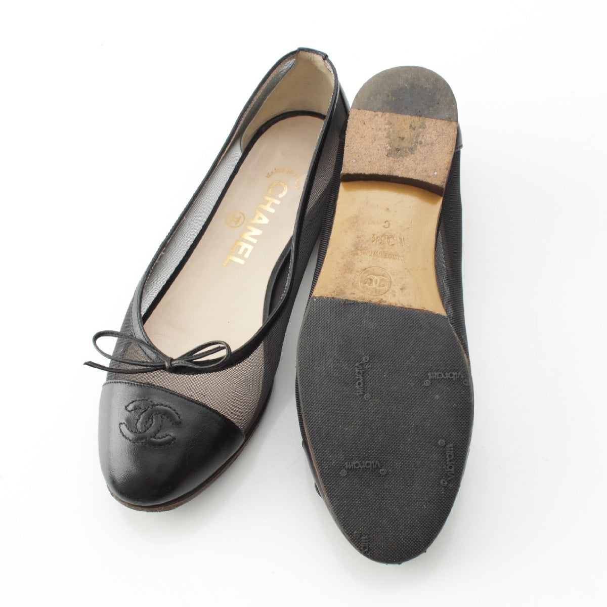 CHANEL ballerina leather COCO Mark Mesh Flats pumps shoes G02819 black 36 1/2