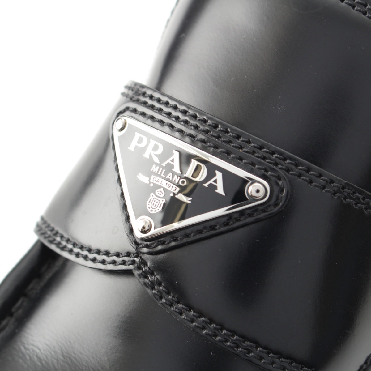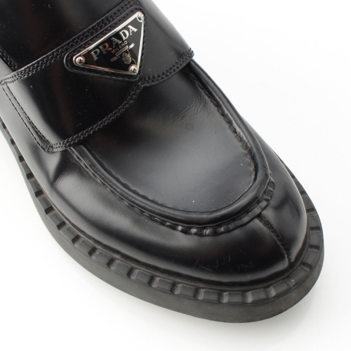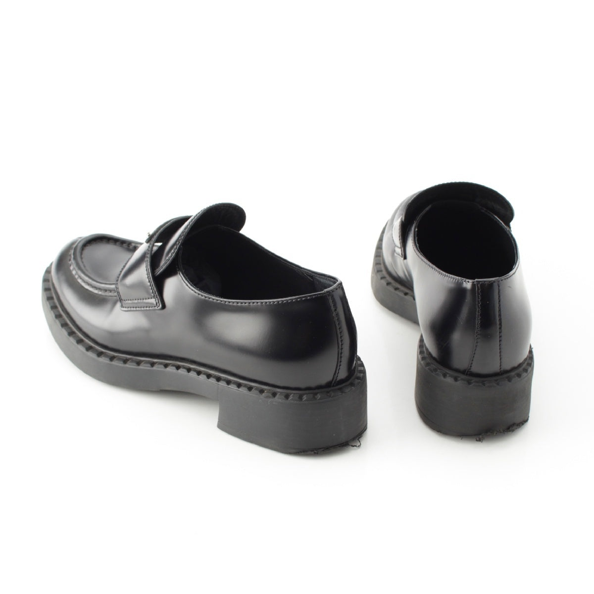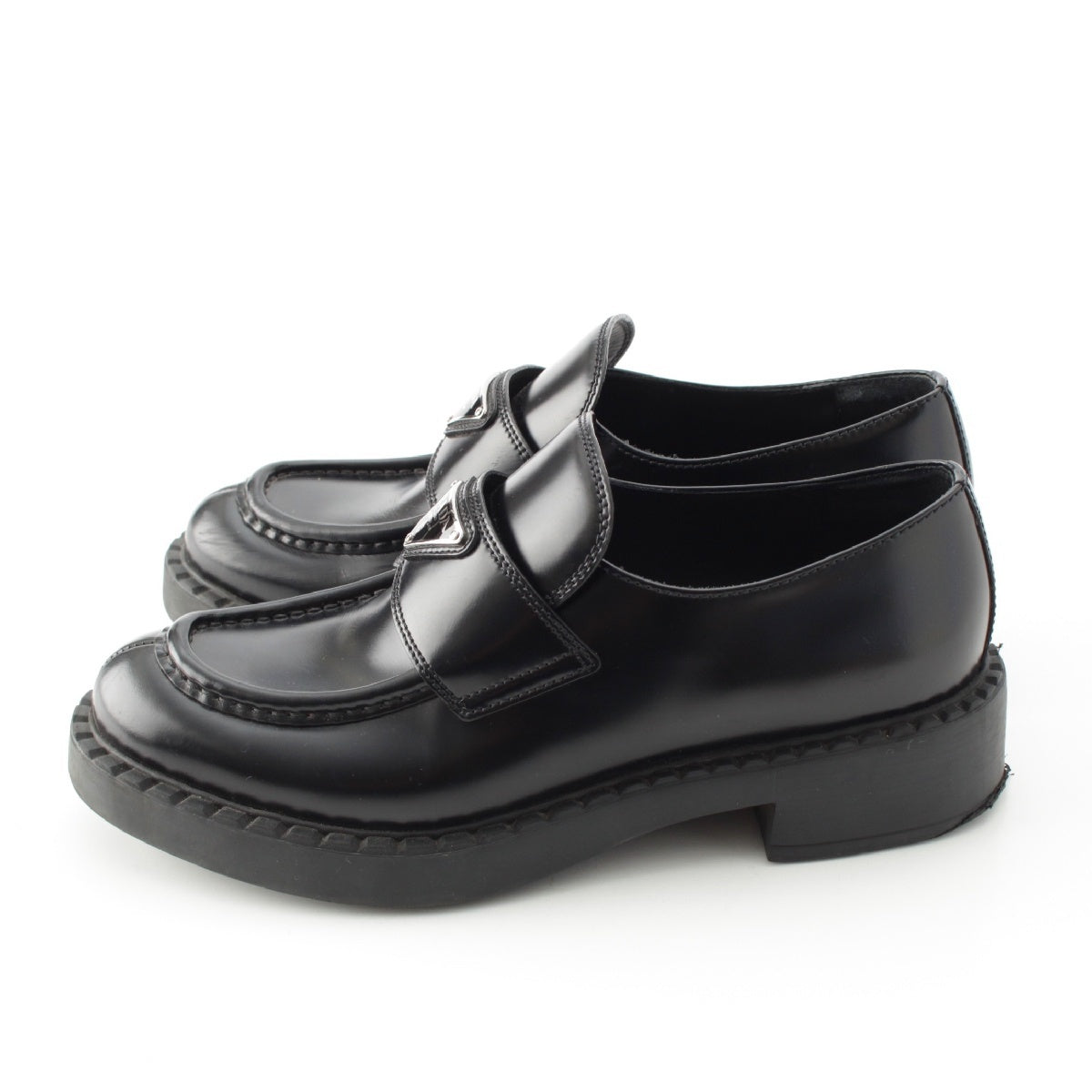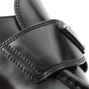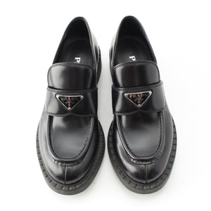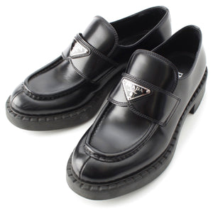 PRADA Brushed leather Chocolate triangle logo loafers Shoes shoes 2DE127 black 39