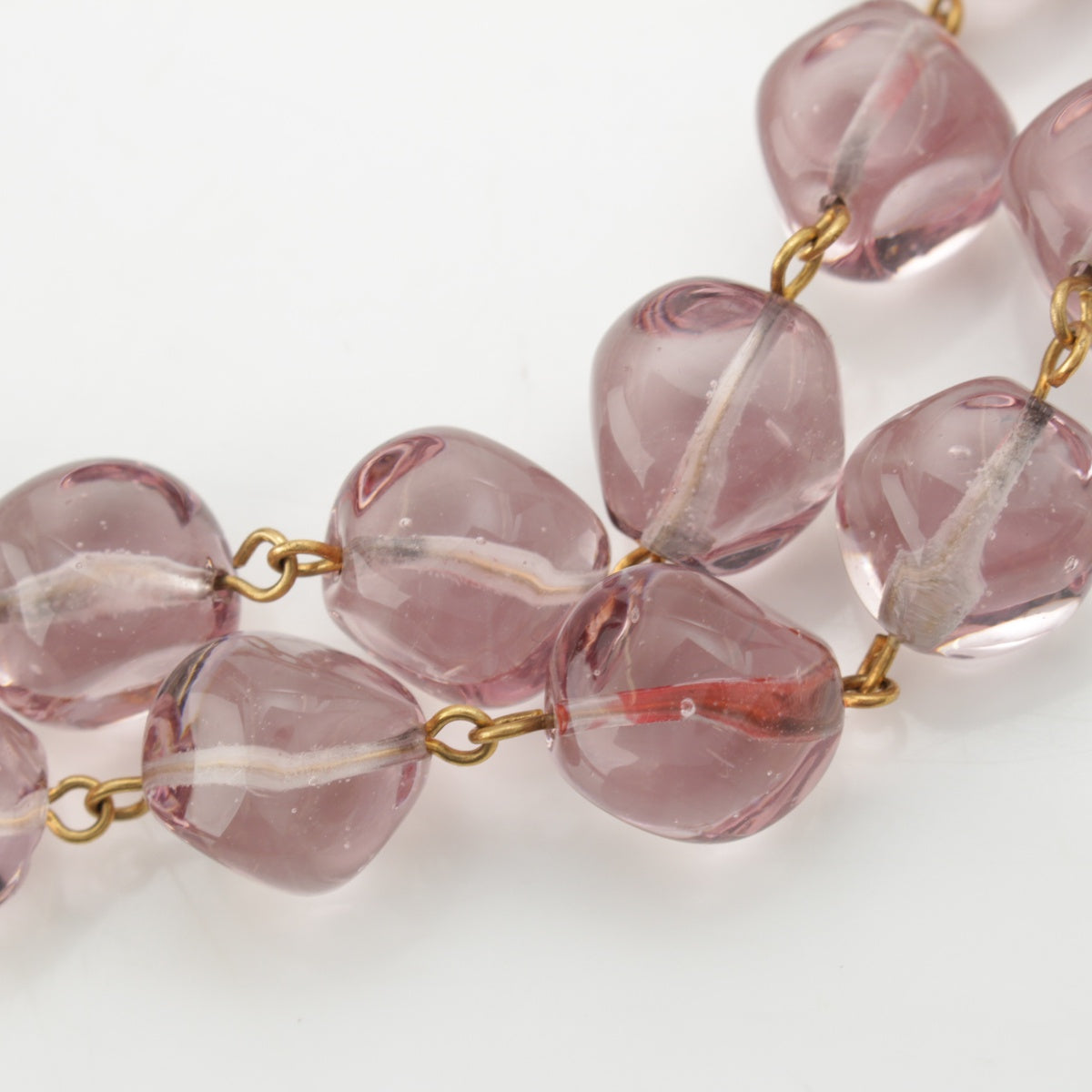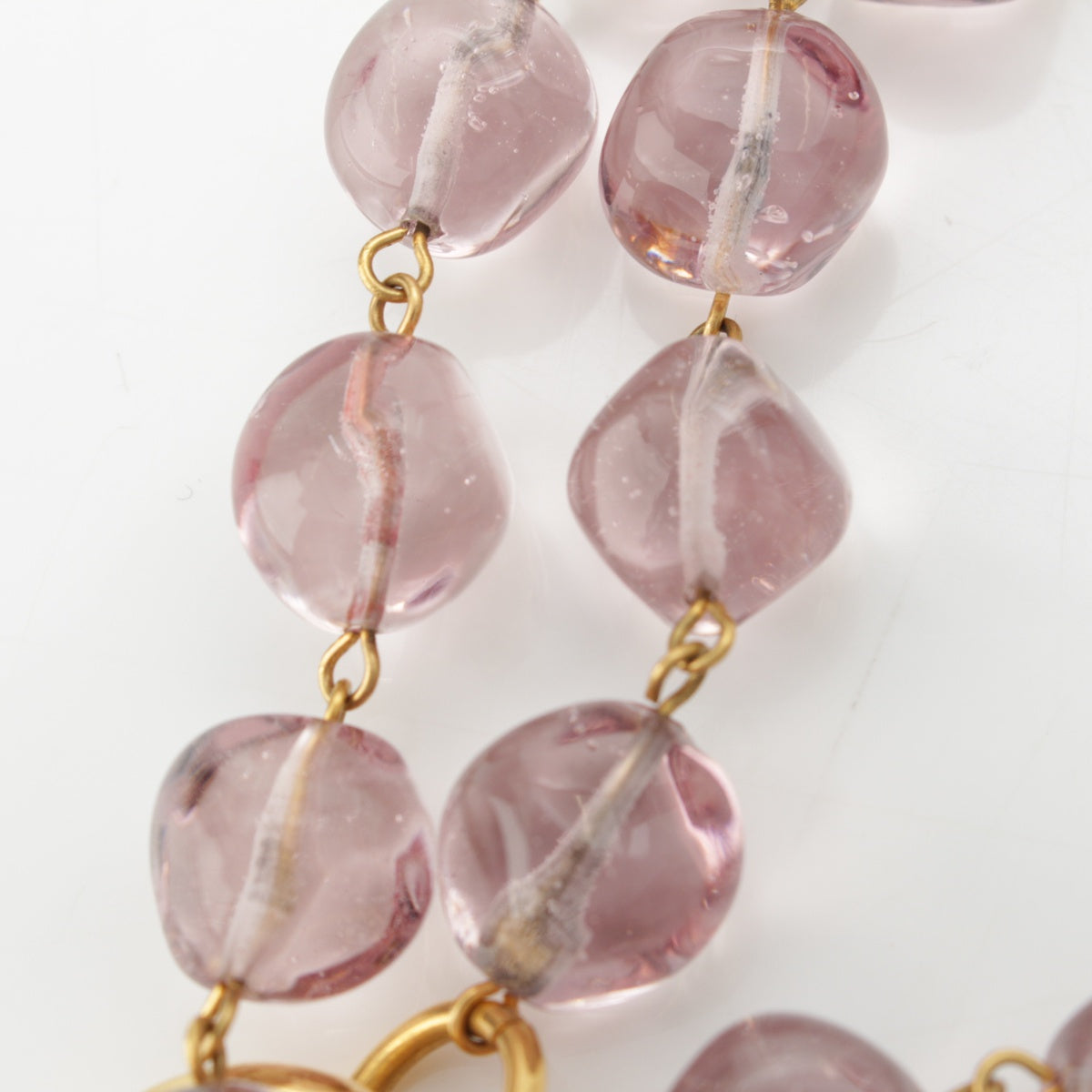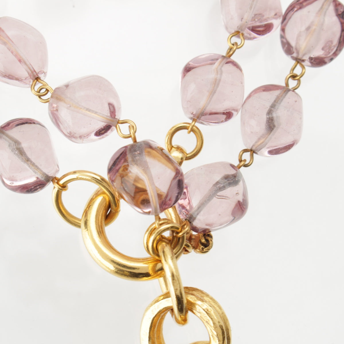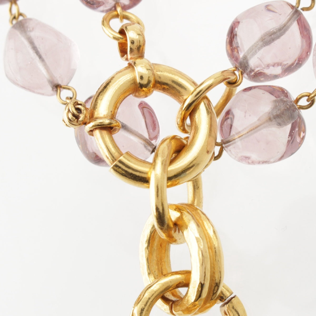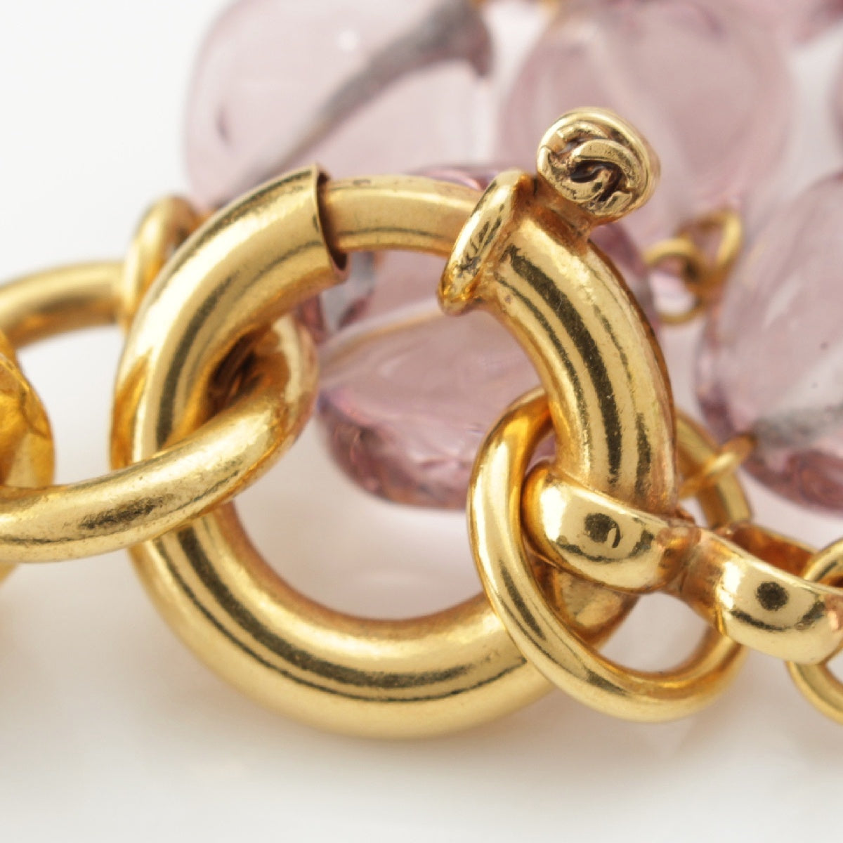 CHANEL 94P COCO Mark Cross Top Color Stone Color Ball Necklace Accessory Jewelry Gold purple